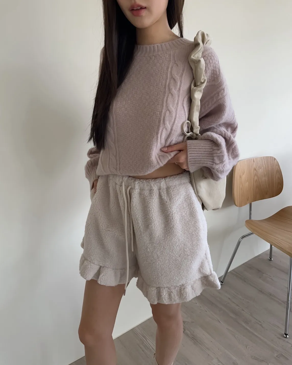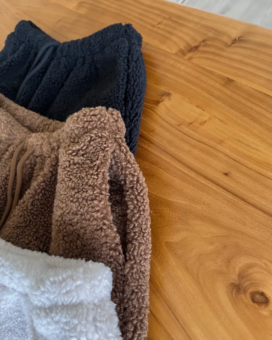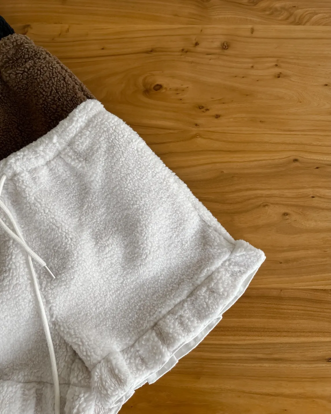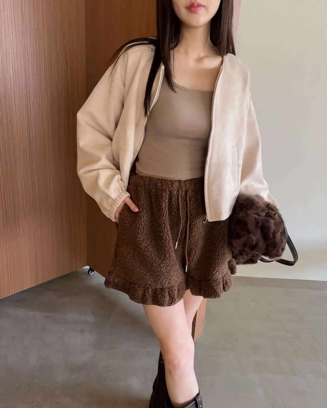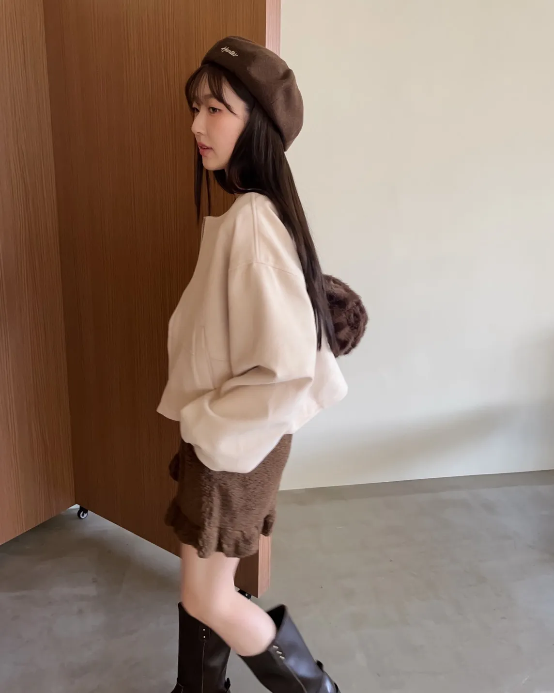 全鬆緊 建議尺寸S-L 兩側口袋 QQ毛絨絨布料 下擺荷葉捲邊