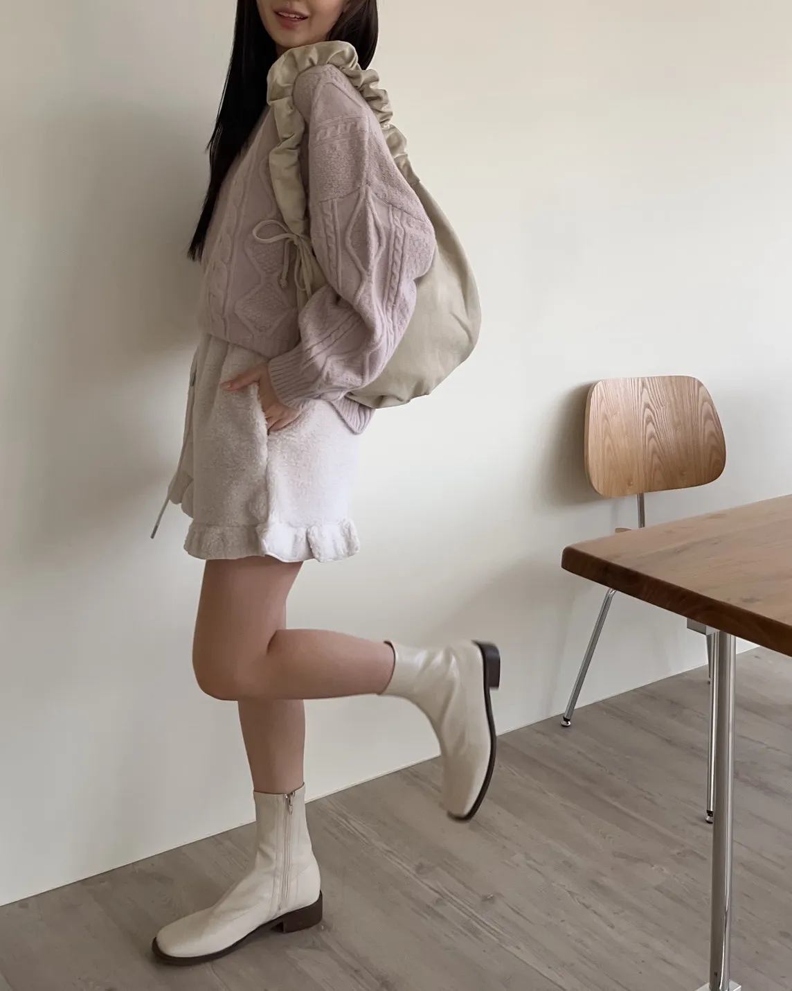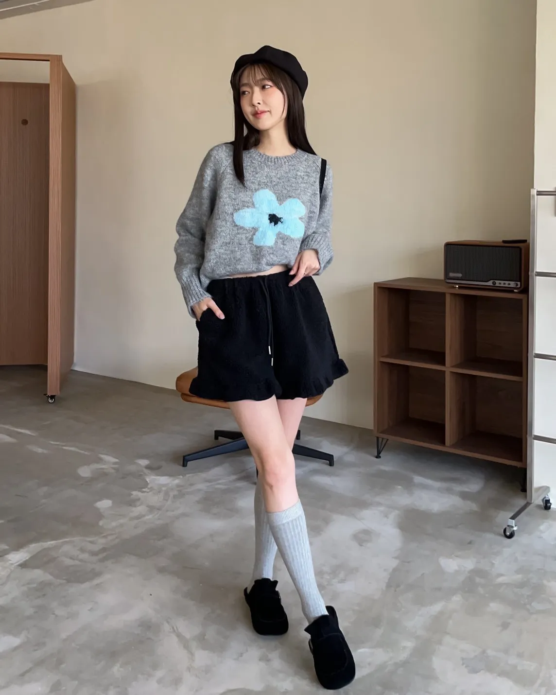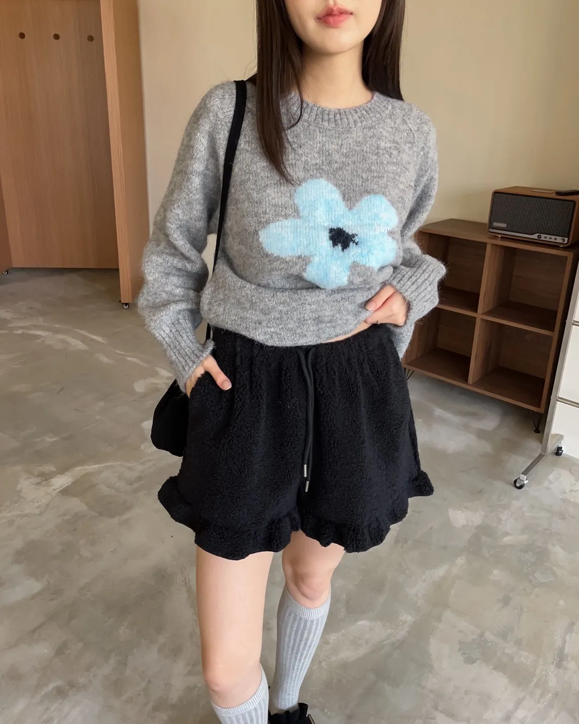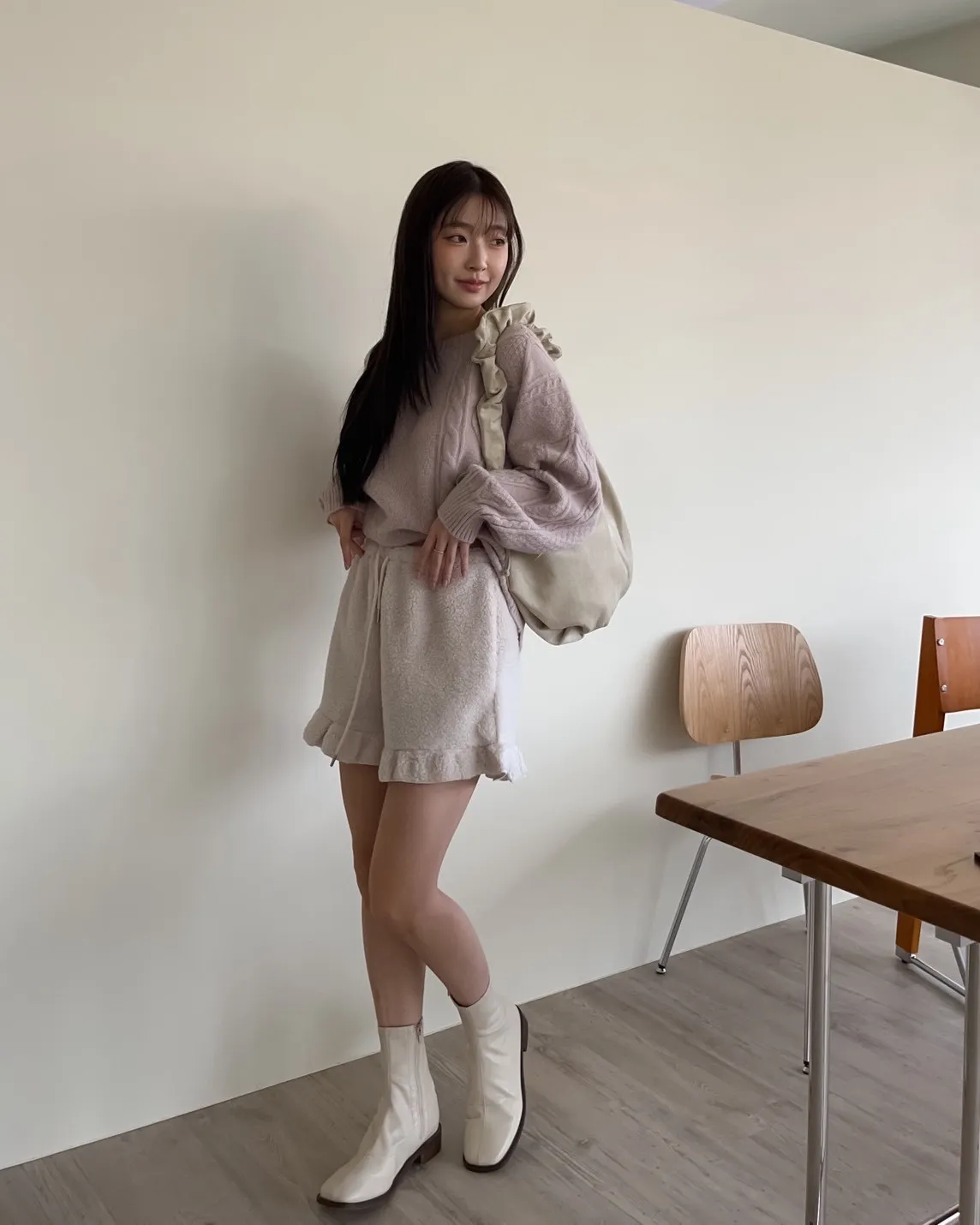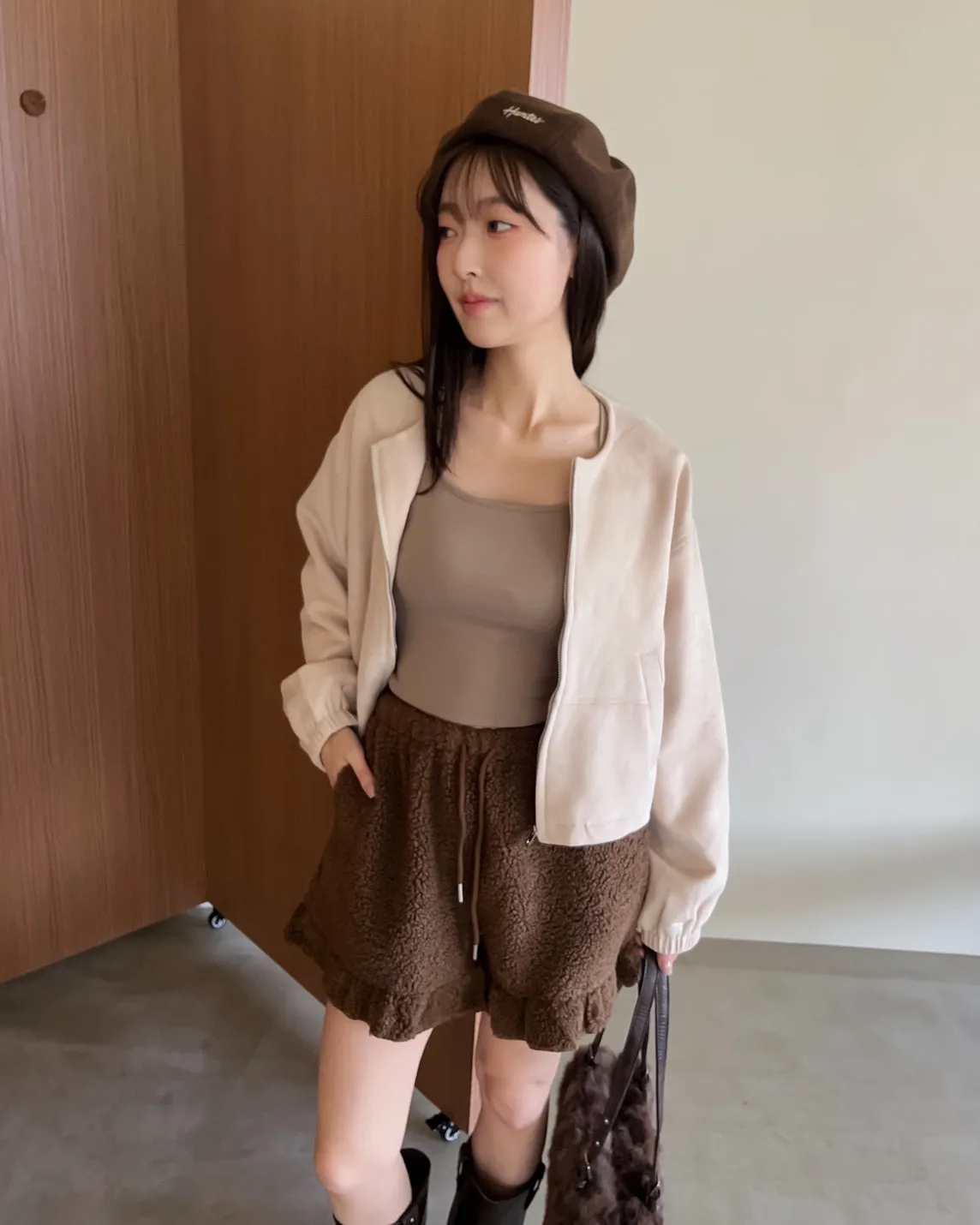 全鬆緊 建議尺寸S-L 兩側口袋 QQ毛絨絨布料 下擺荷葉捲邊