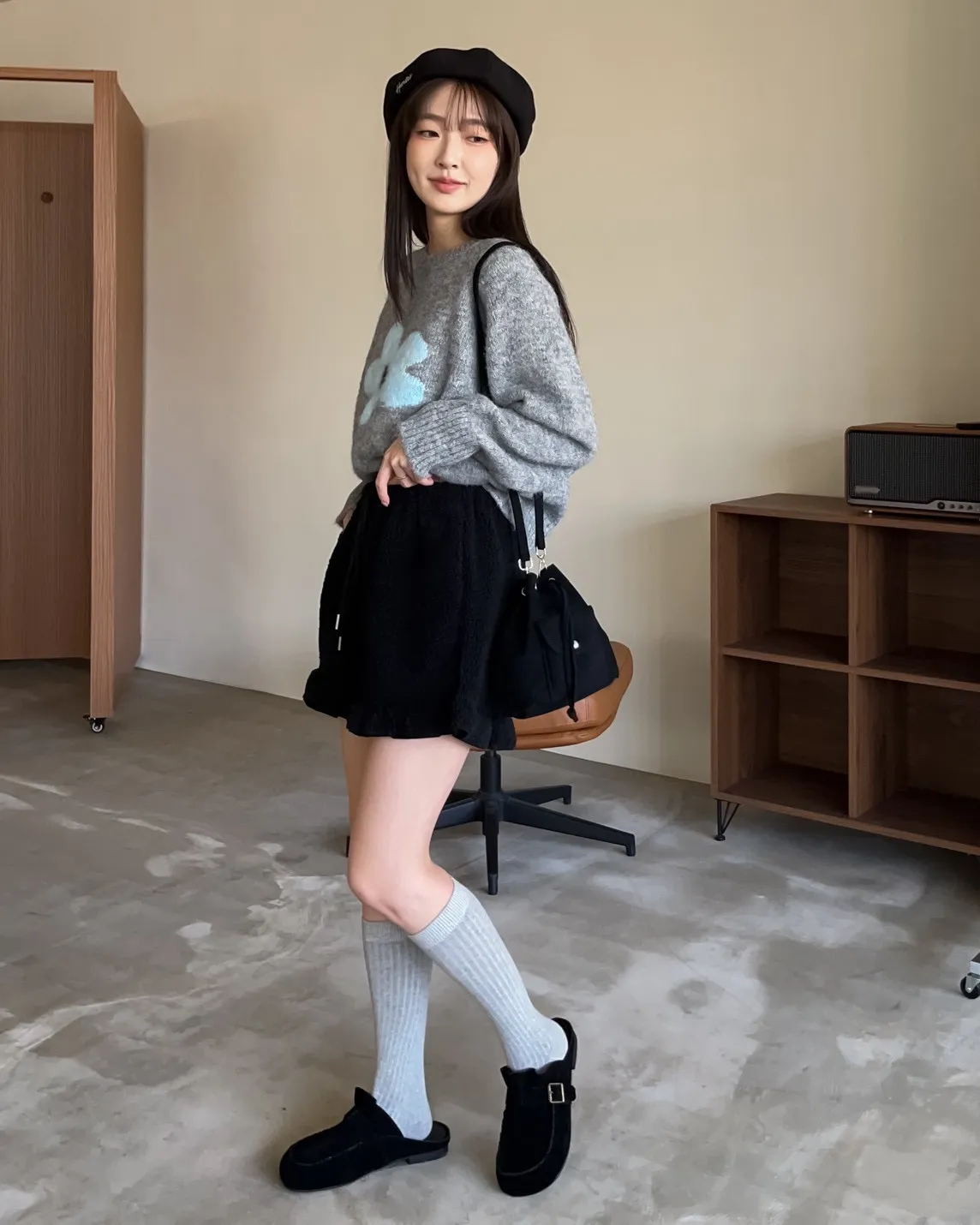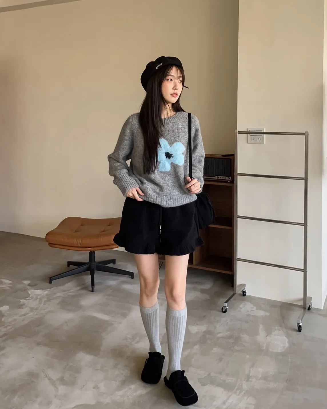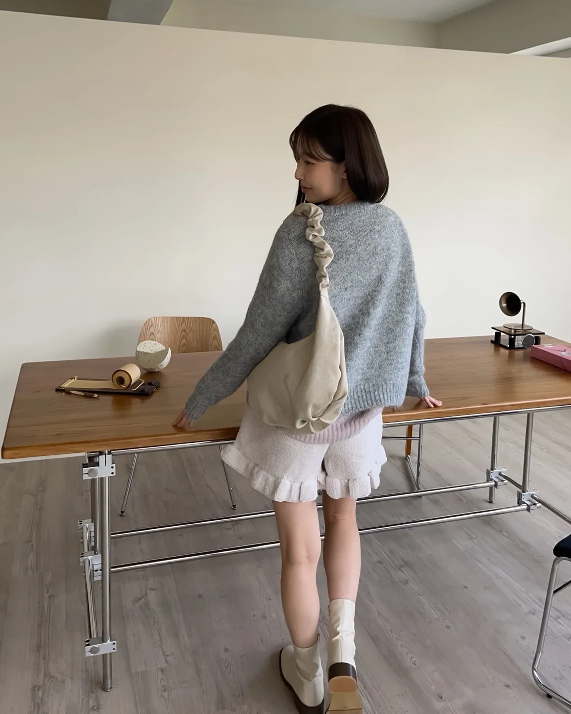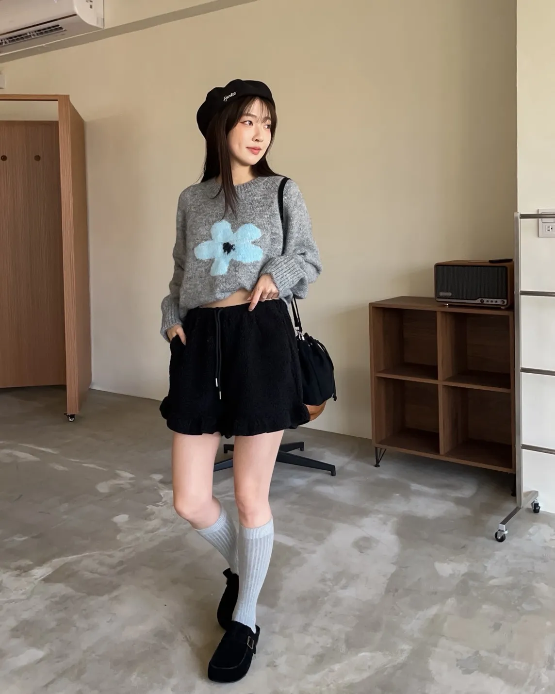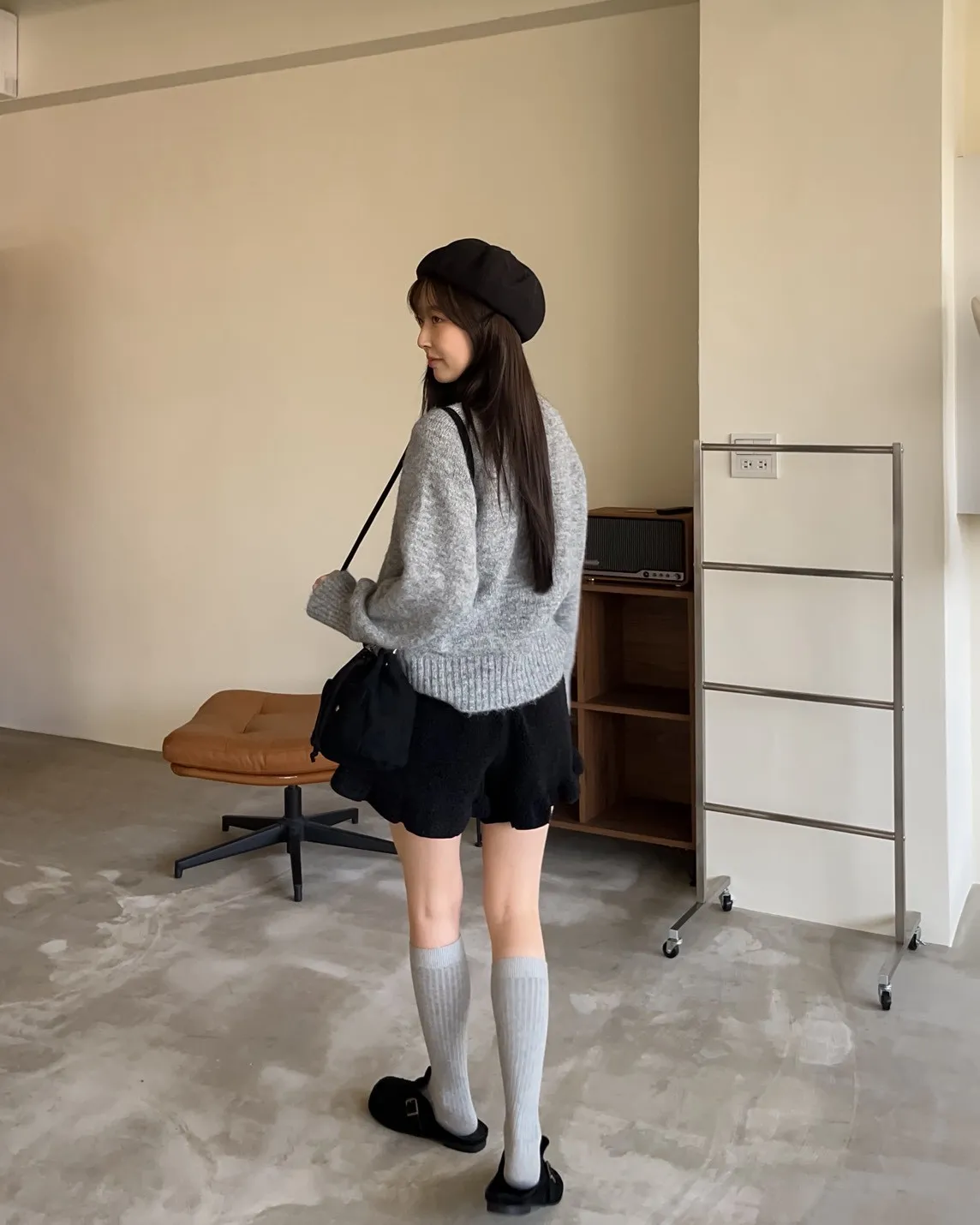 全鬆緊 建議尺寸S-L 兩側口袋 QQ毛絨絨布料 下擺荷葉捲邊