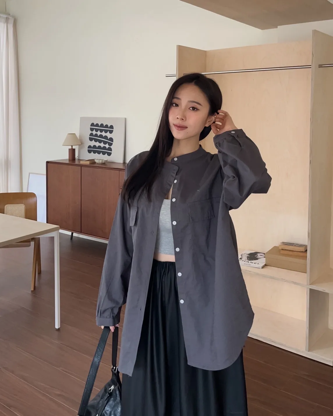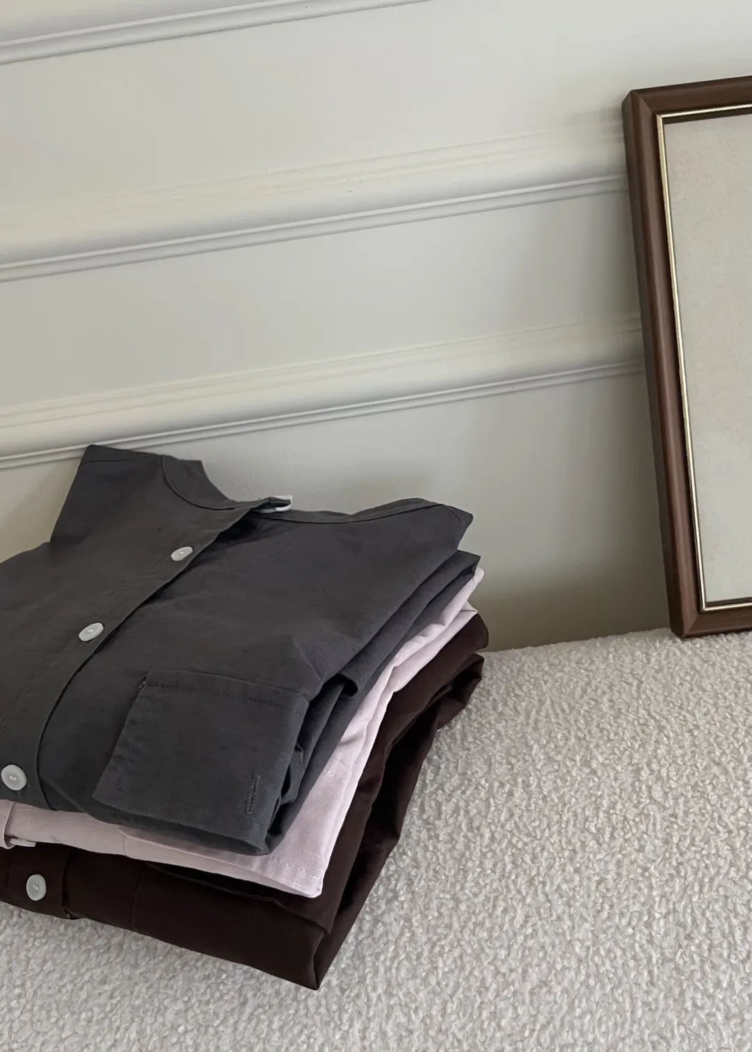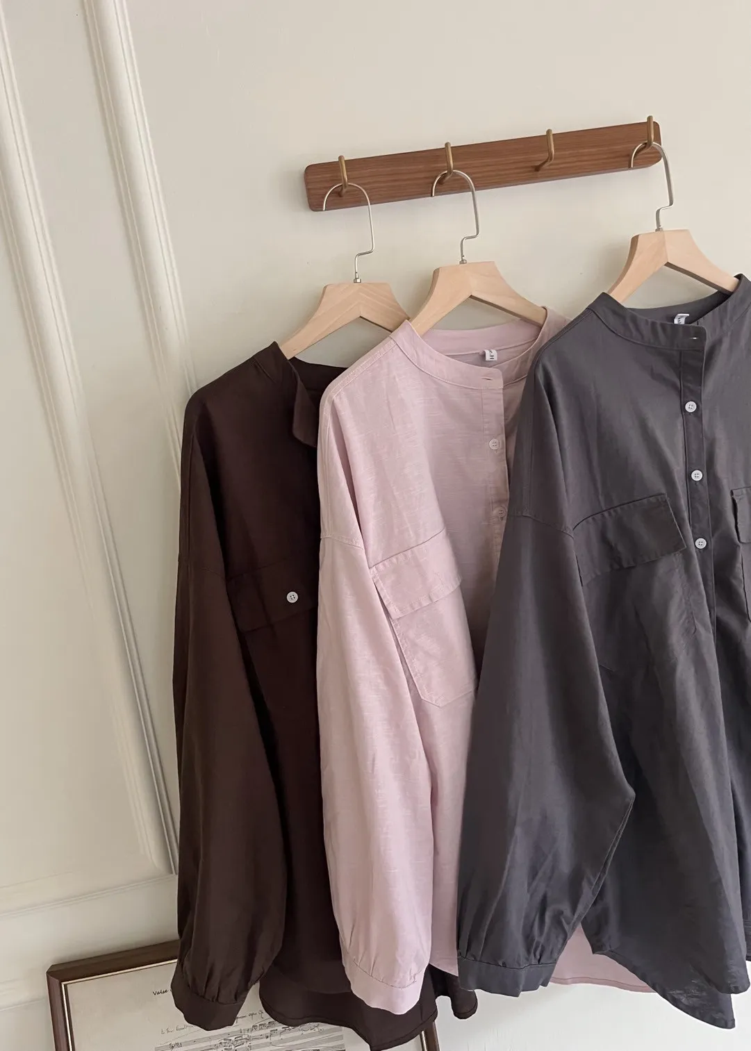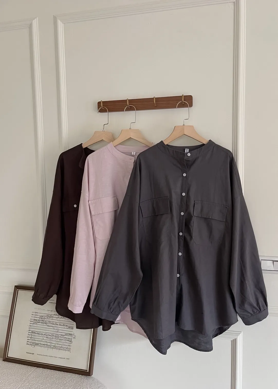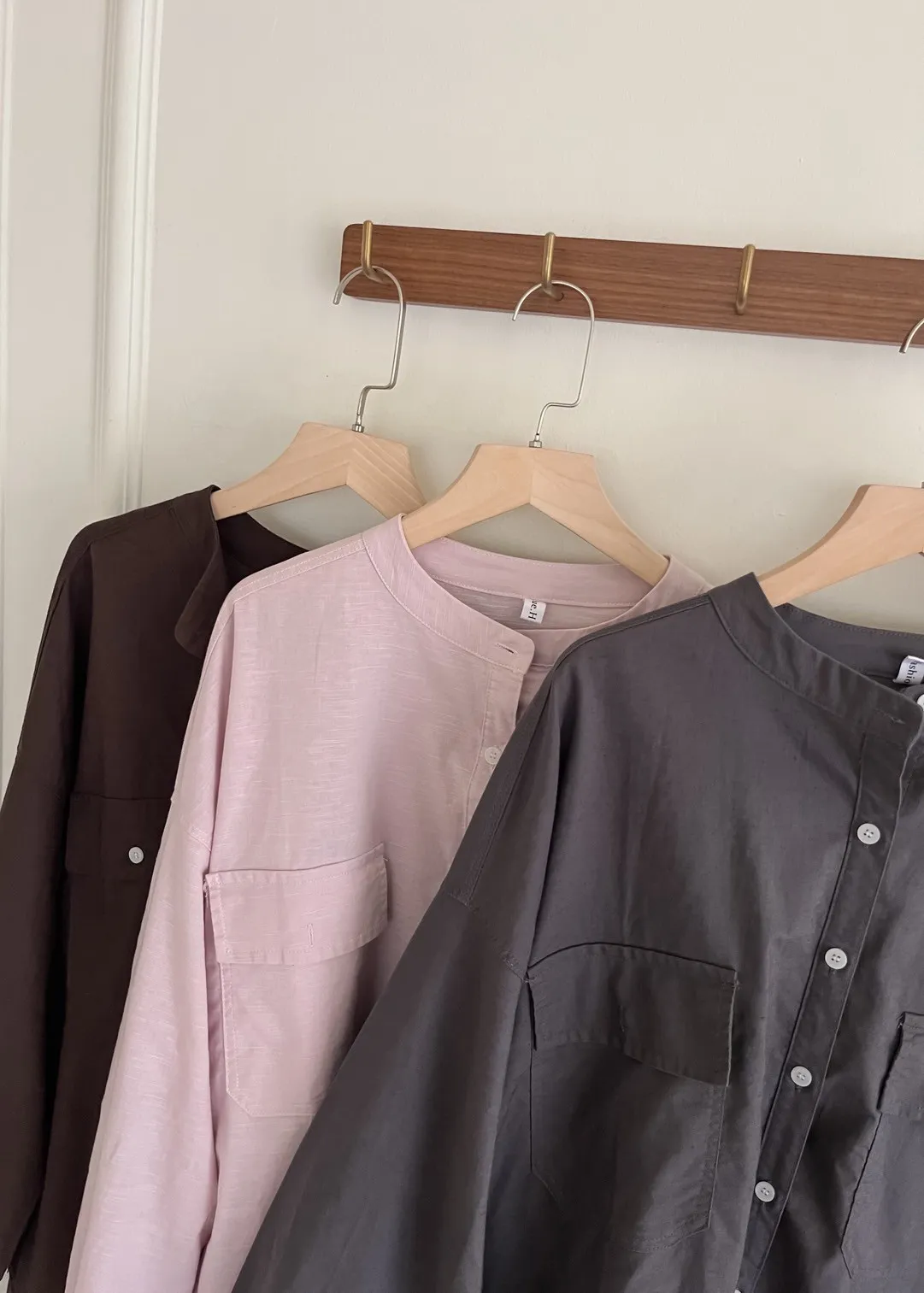 T0053中山領純色落肩襯衫(咖啡/粉紅/深藍/灰)(售完不補)
