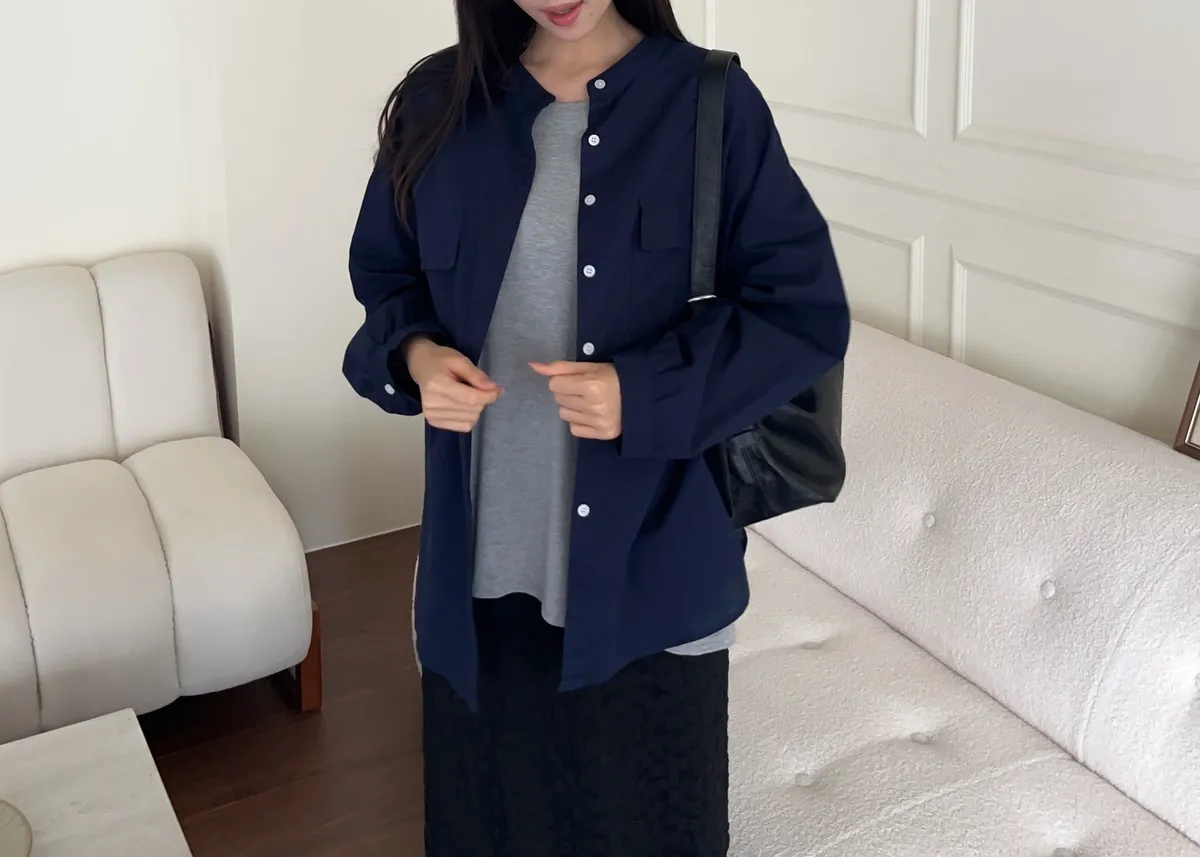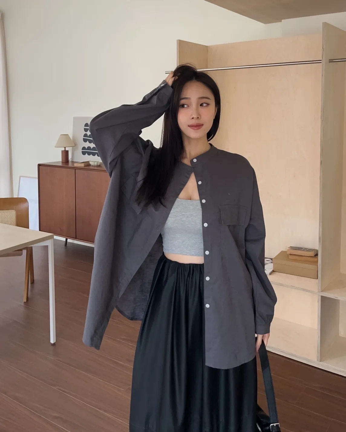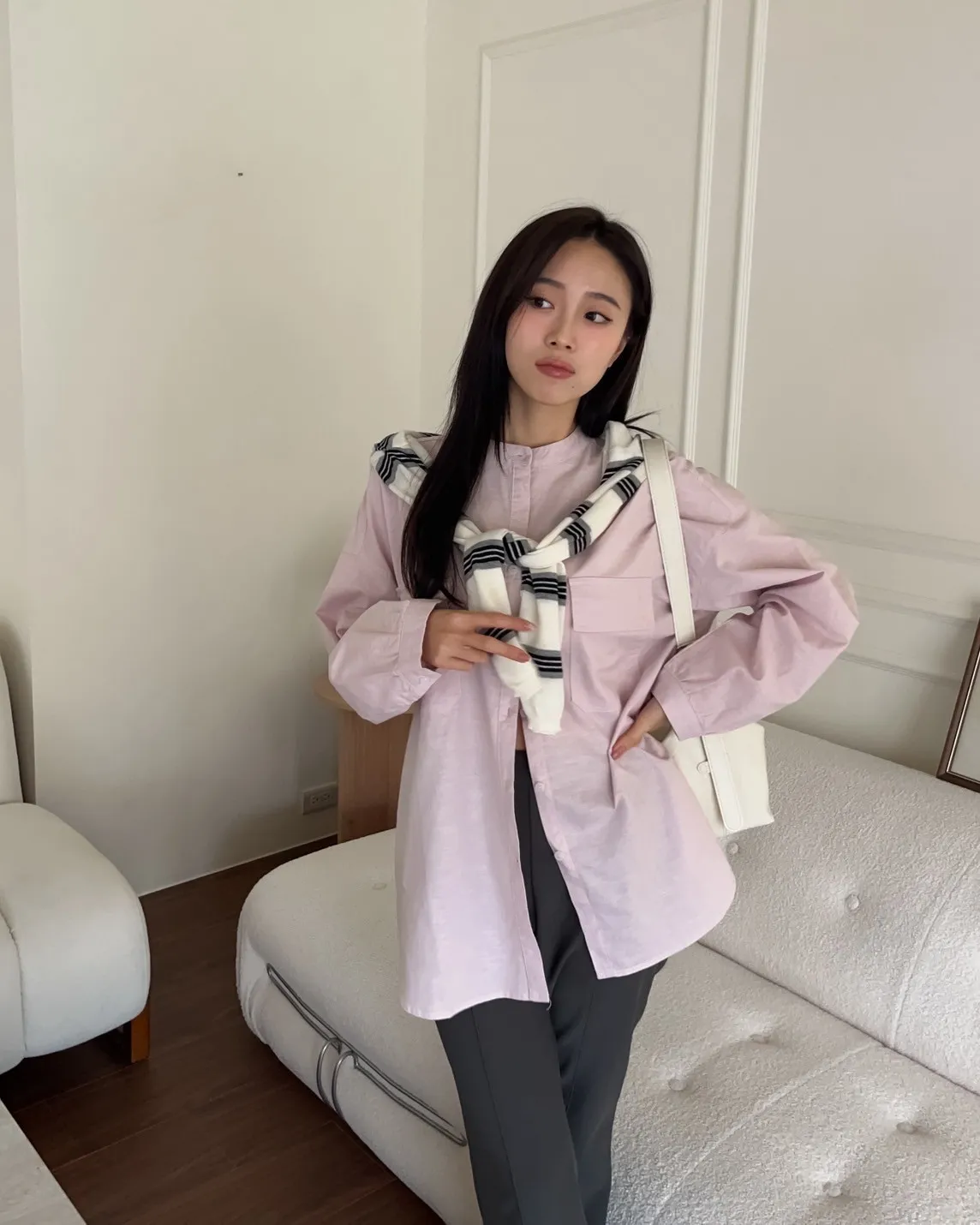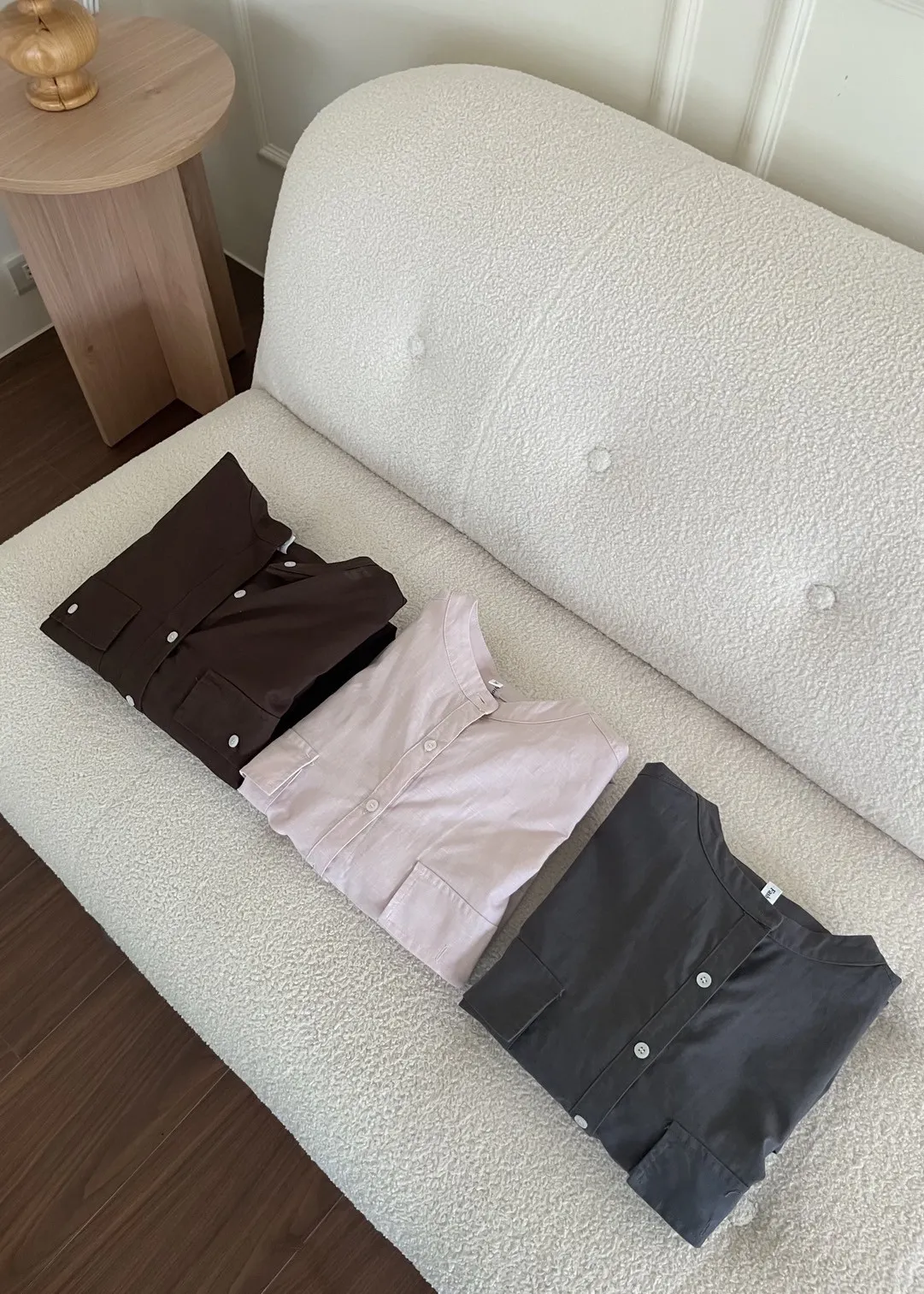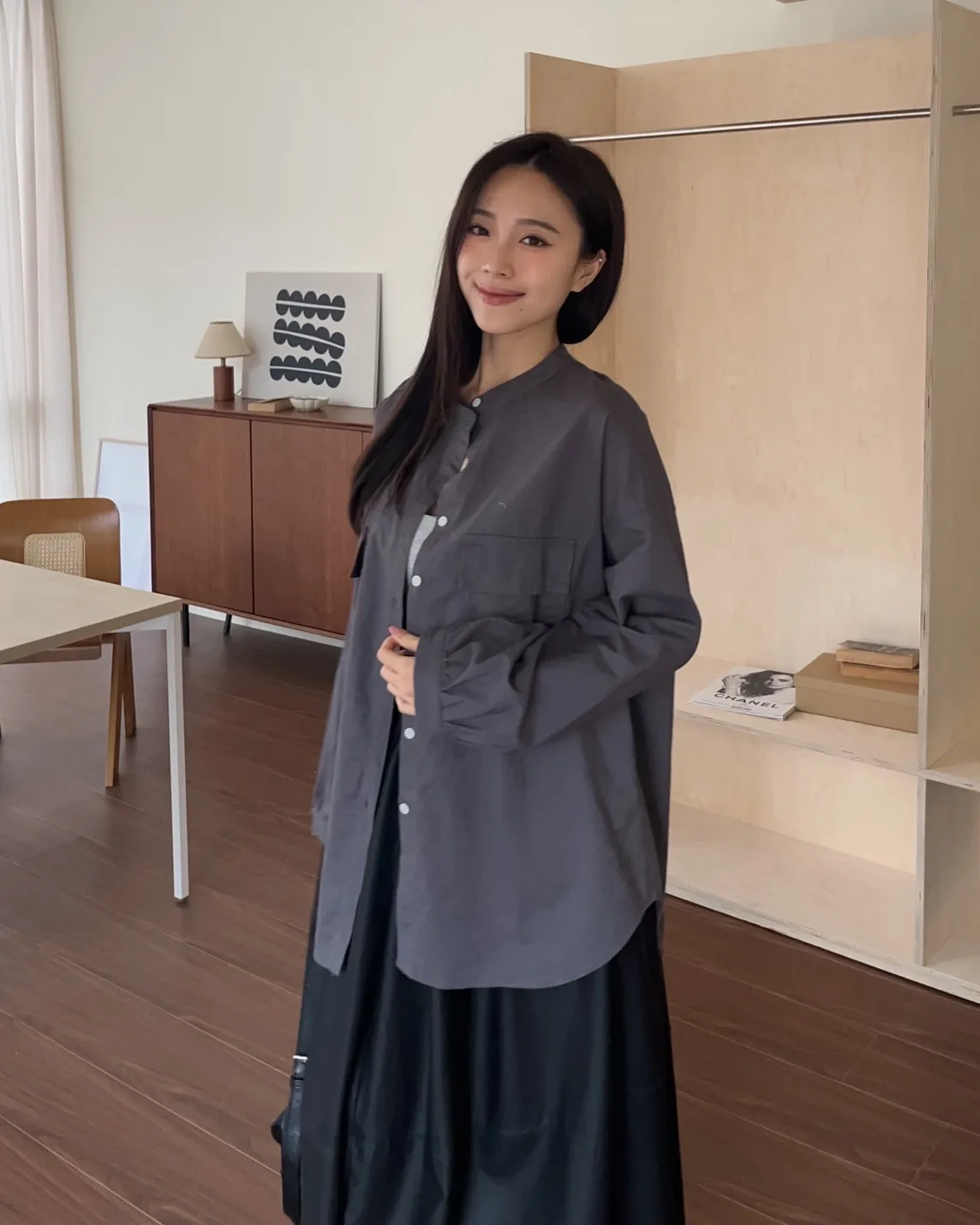 T0053中山領純色落肩襯衫(咖啡/粉紅/深藍/灰)(售完不補)
