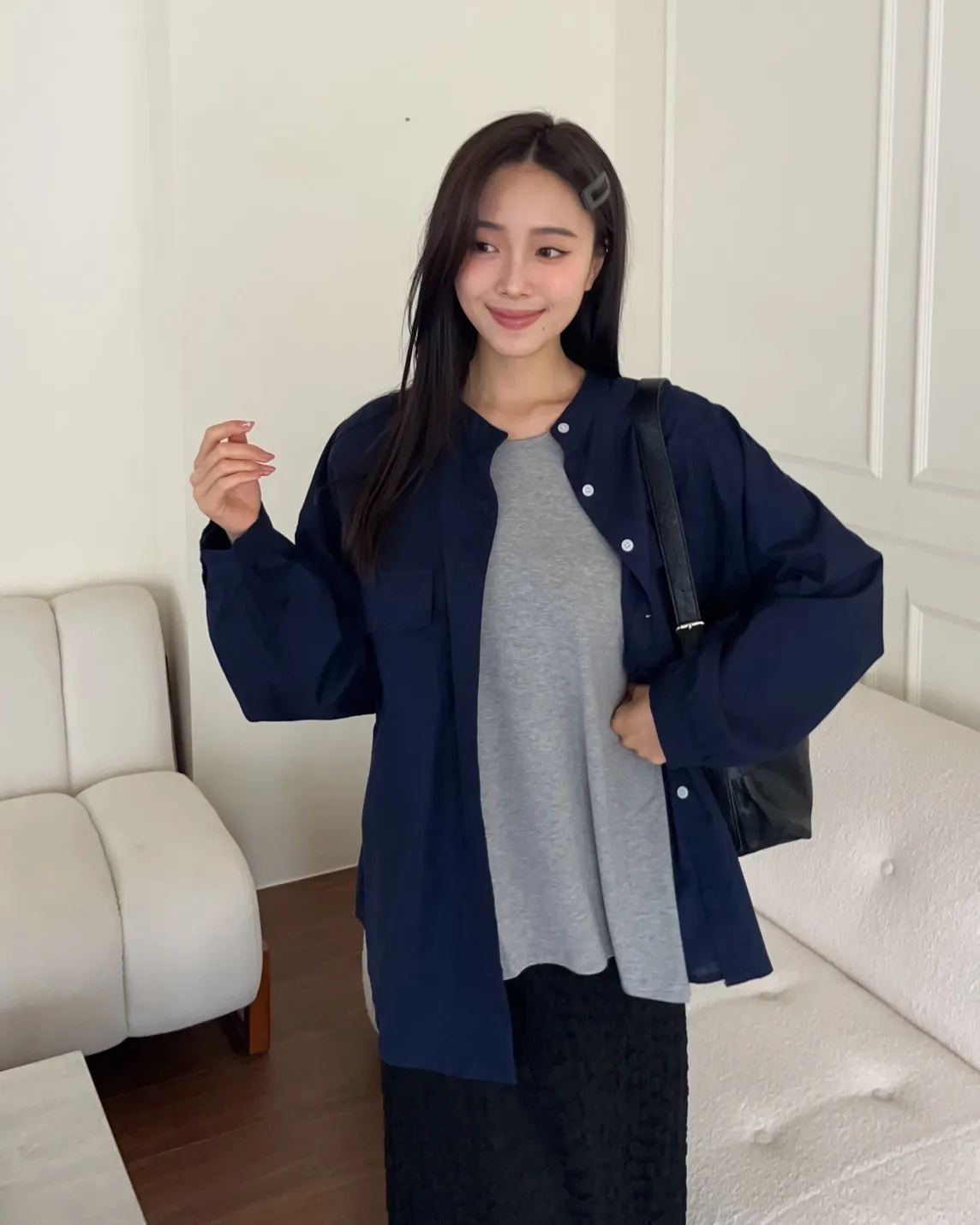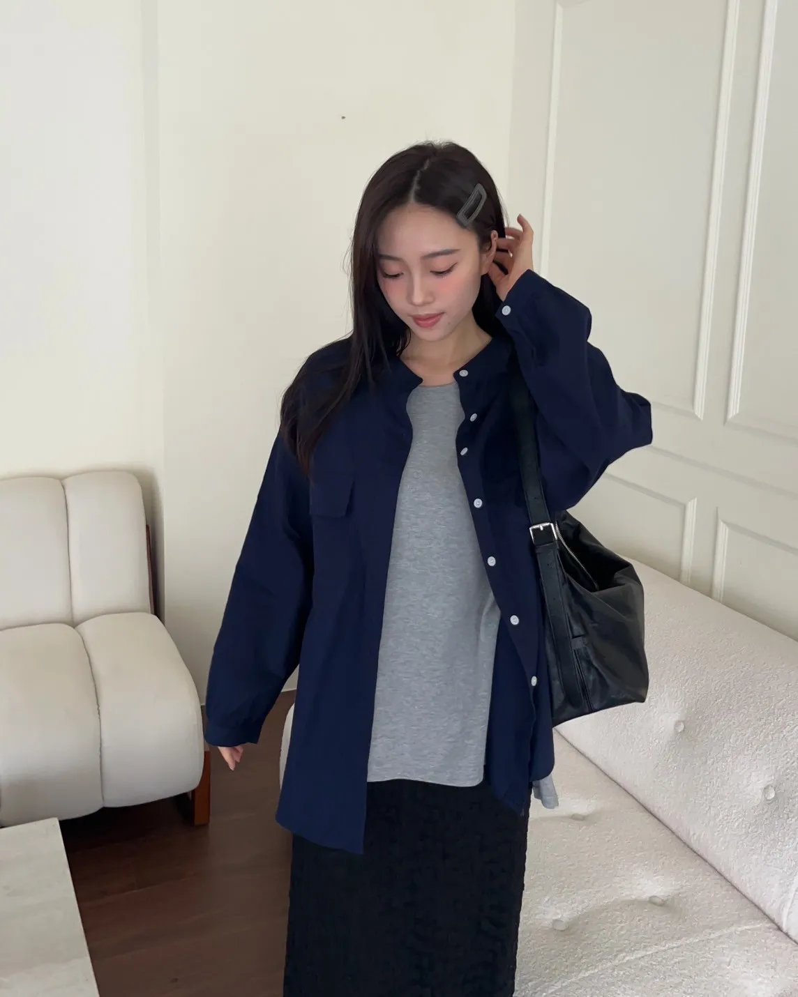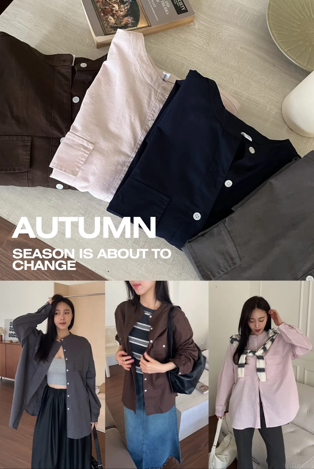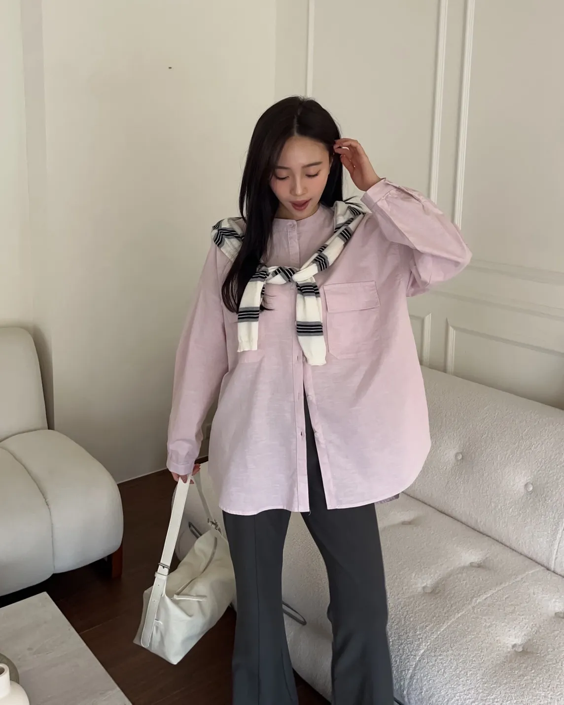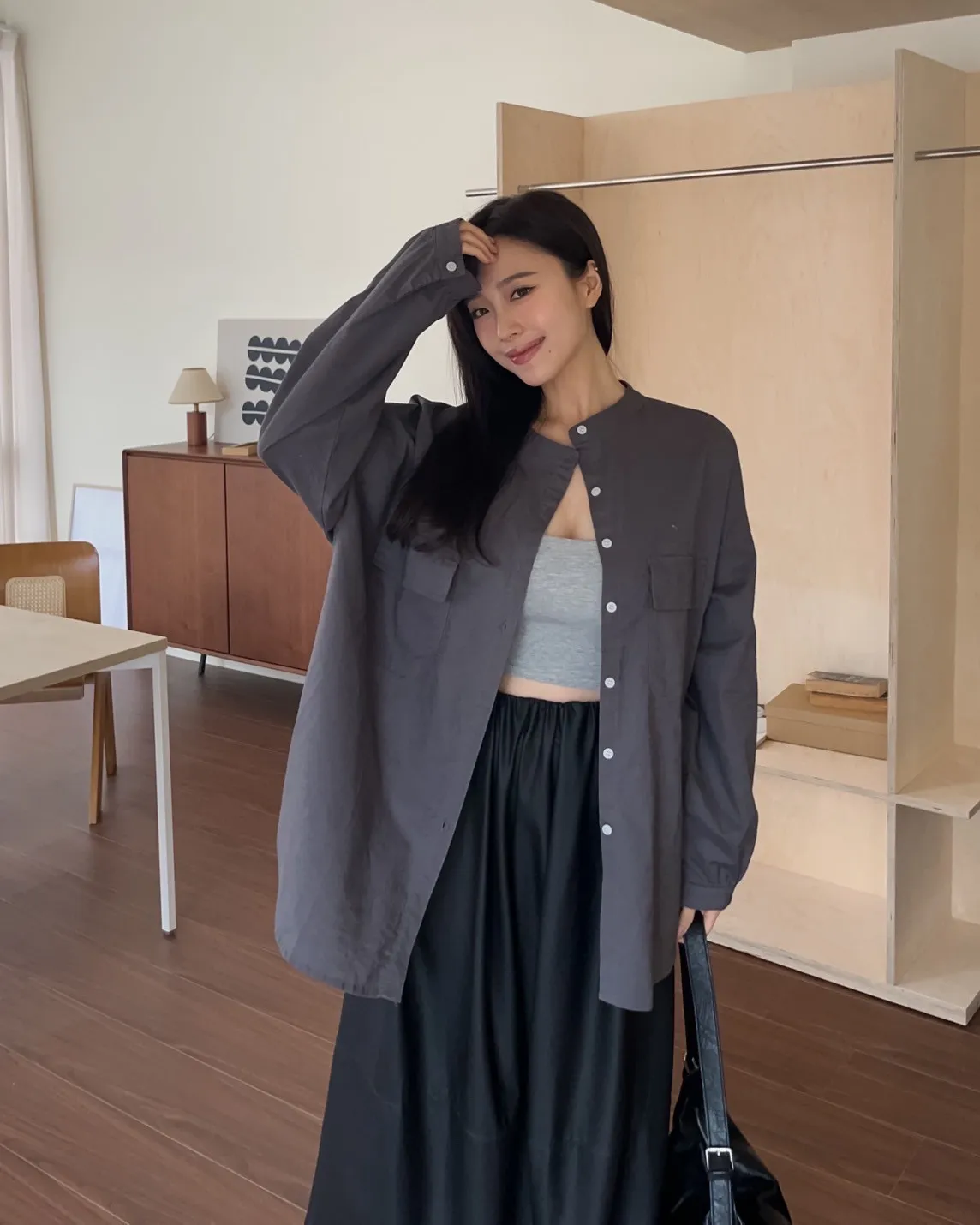 T0053中山領純色落肩襯衫(咖啡/粉紅/深藍/灰)(售完不補)