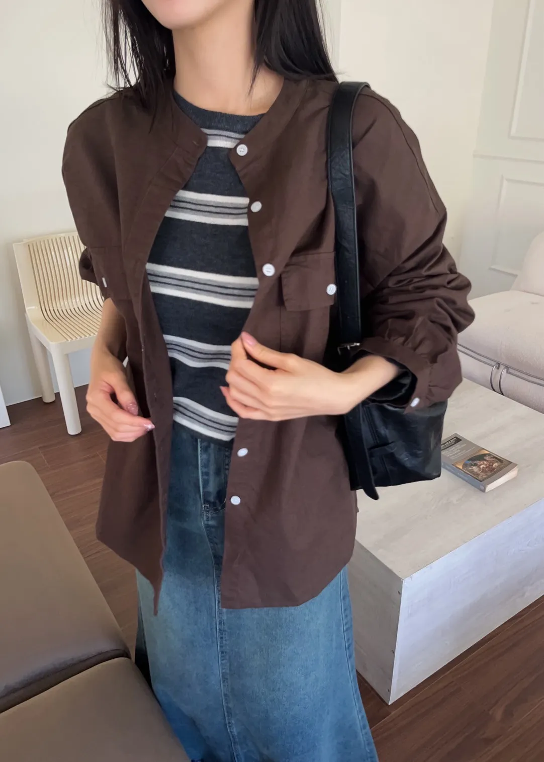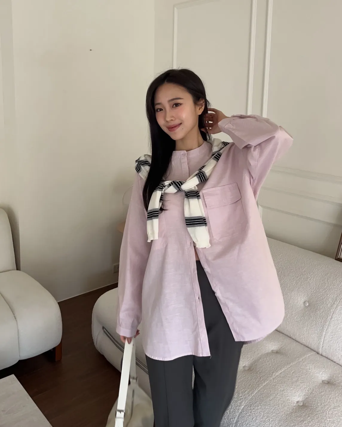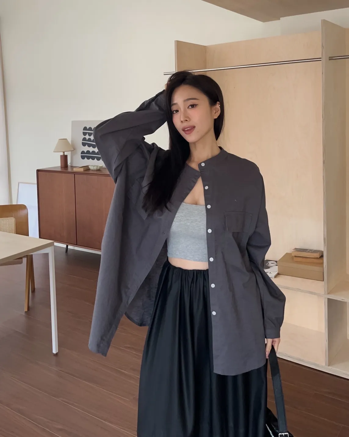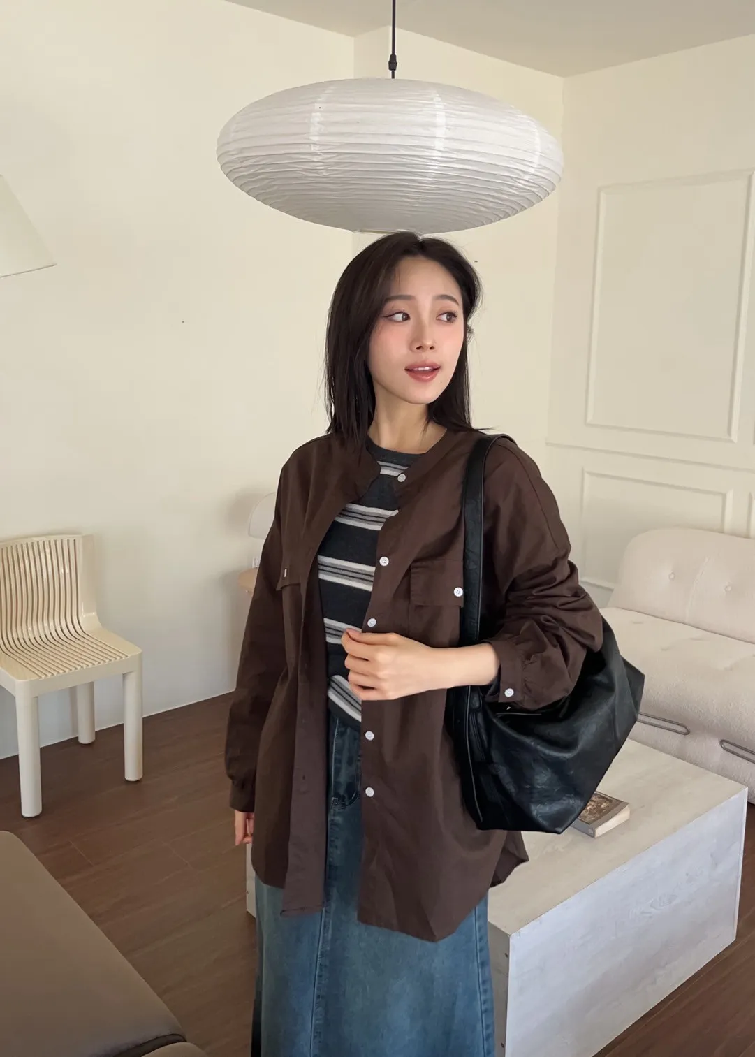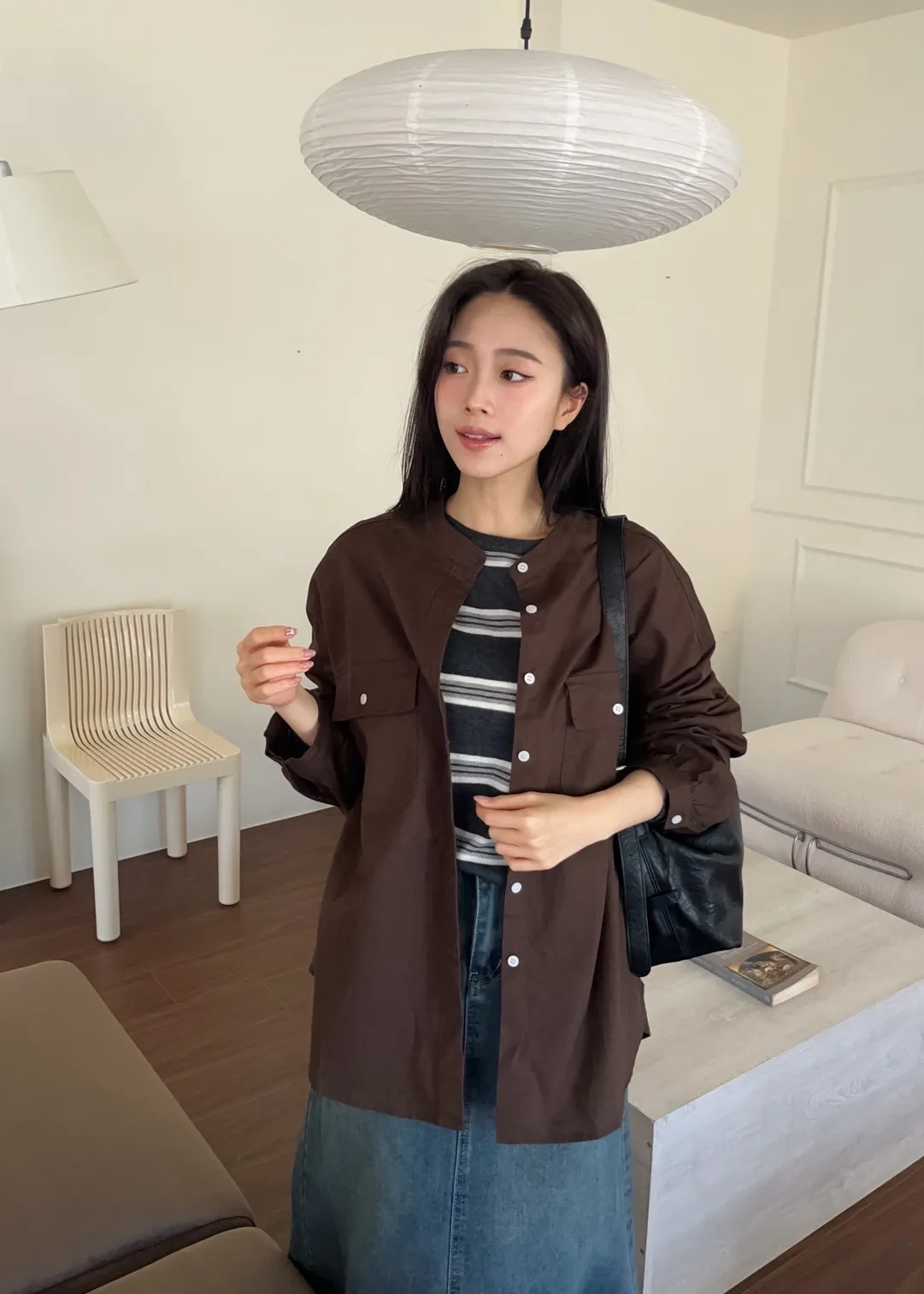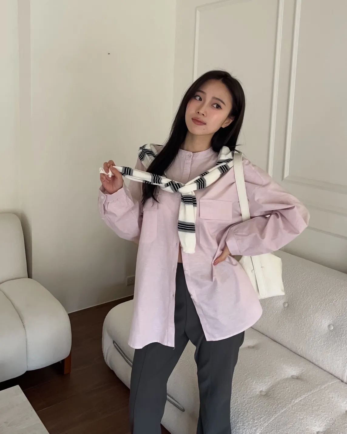 T0053中山領純色落肩襯衫(咖啡/粉紅/深藍/灰)(售完不補)