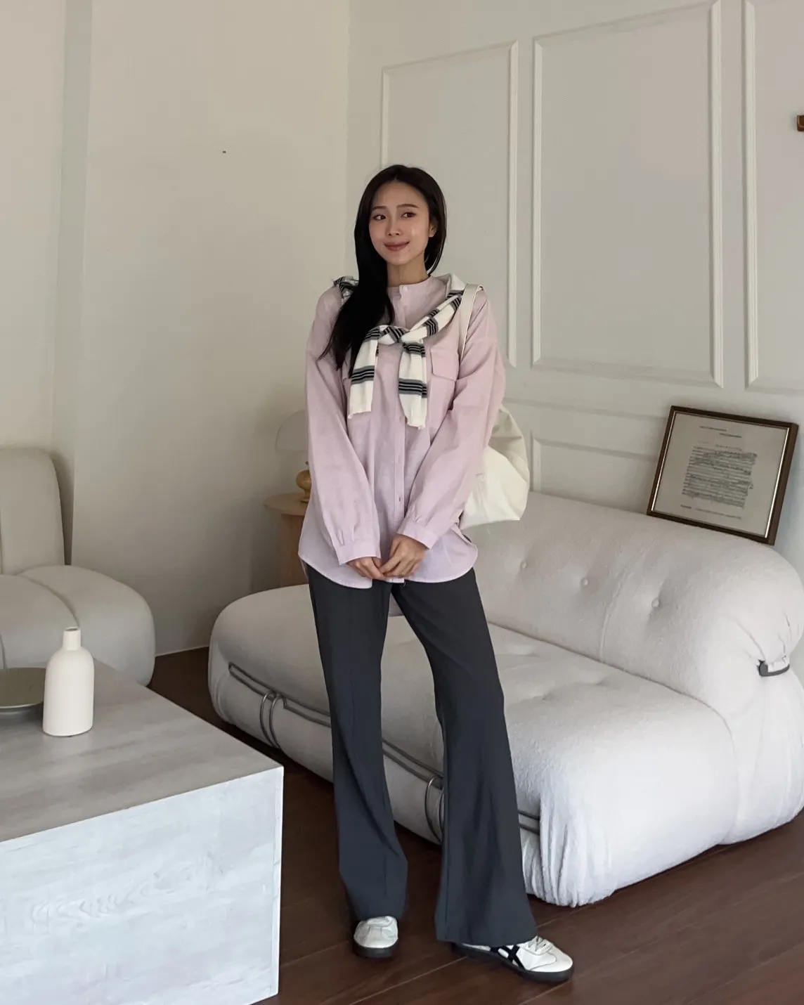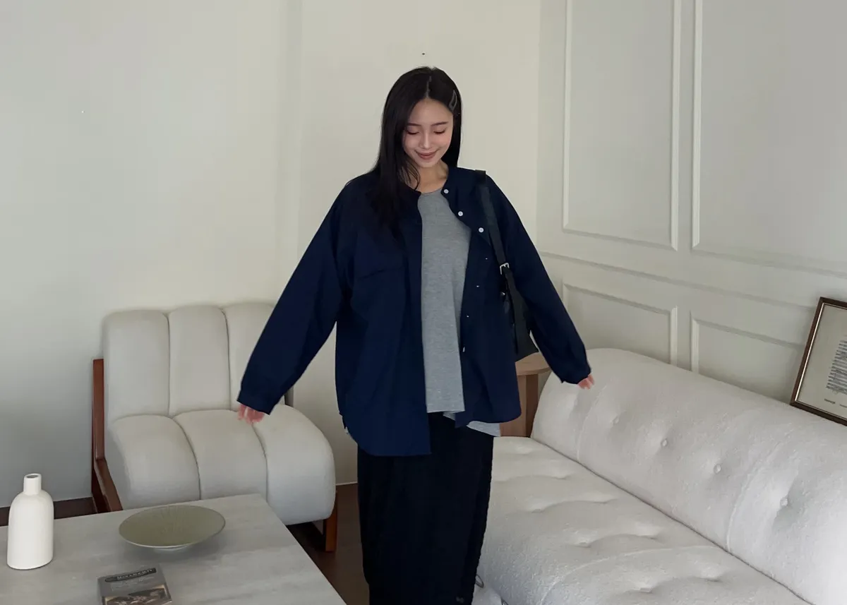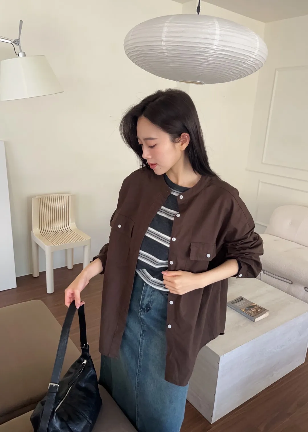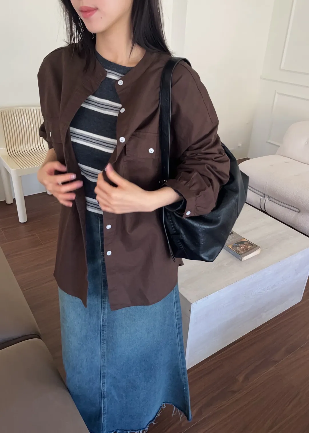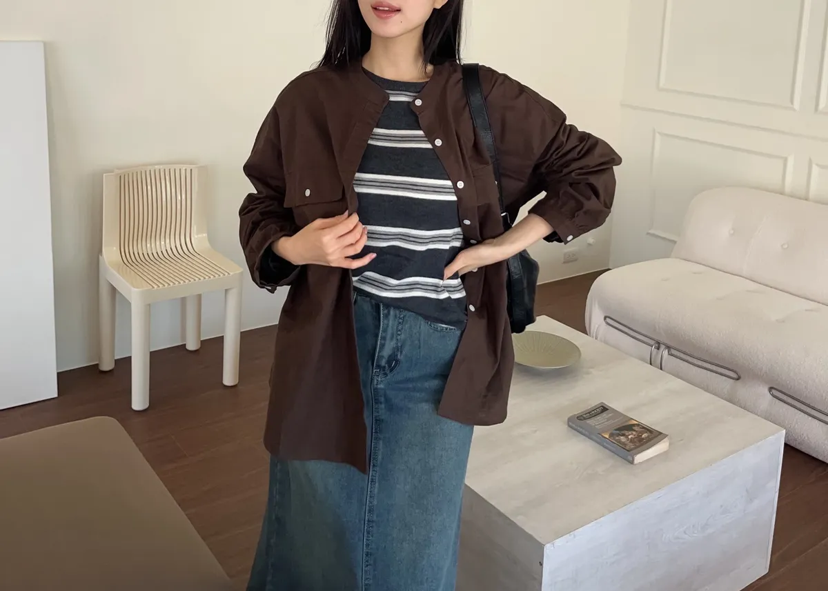 T0053中山領純色落肩襯衫(咖啡/粉紅/深藍/灰)(售完不補)