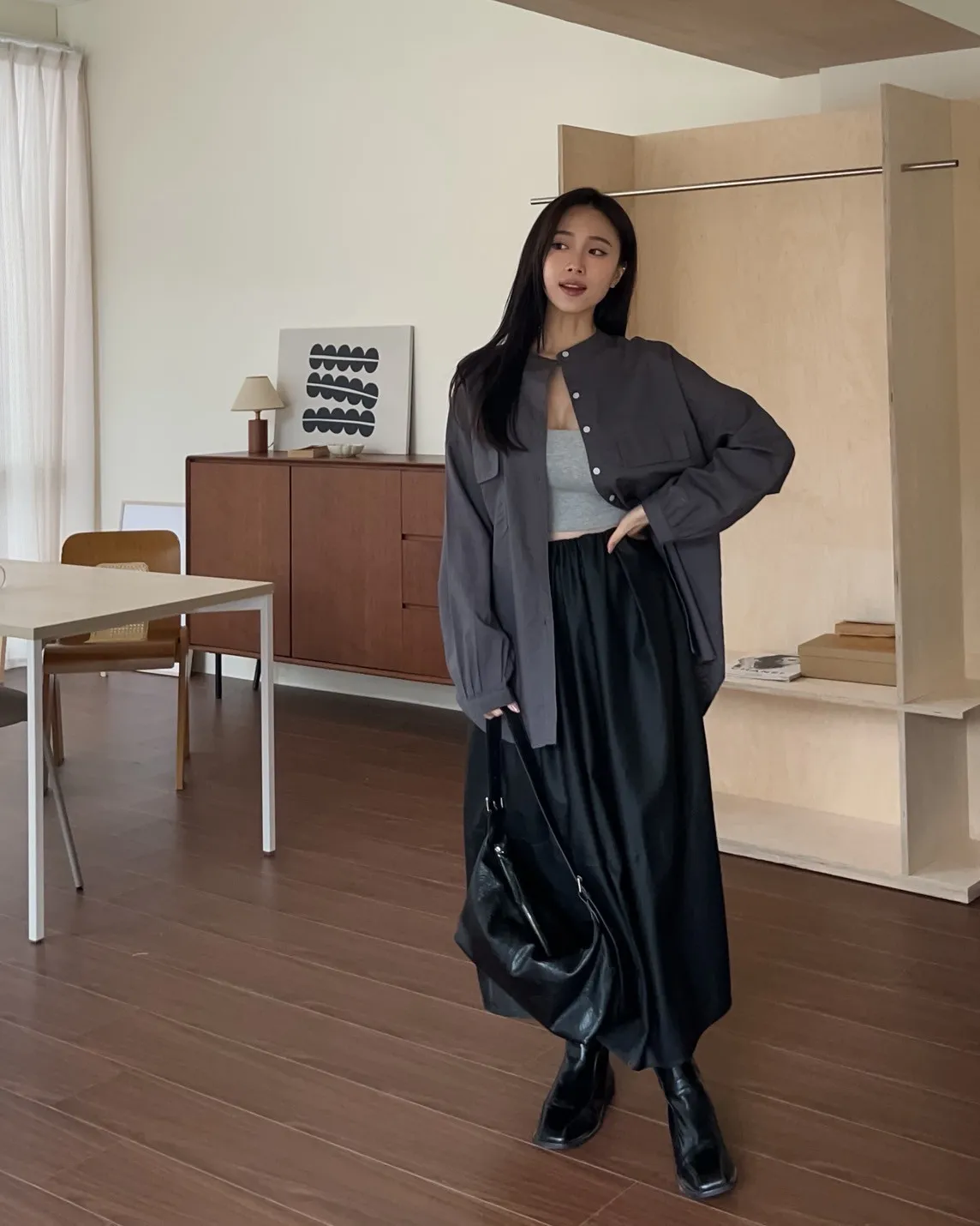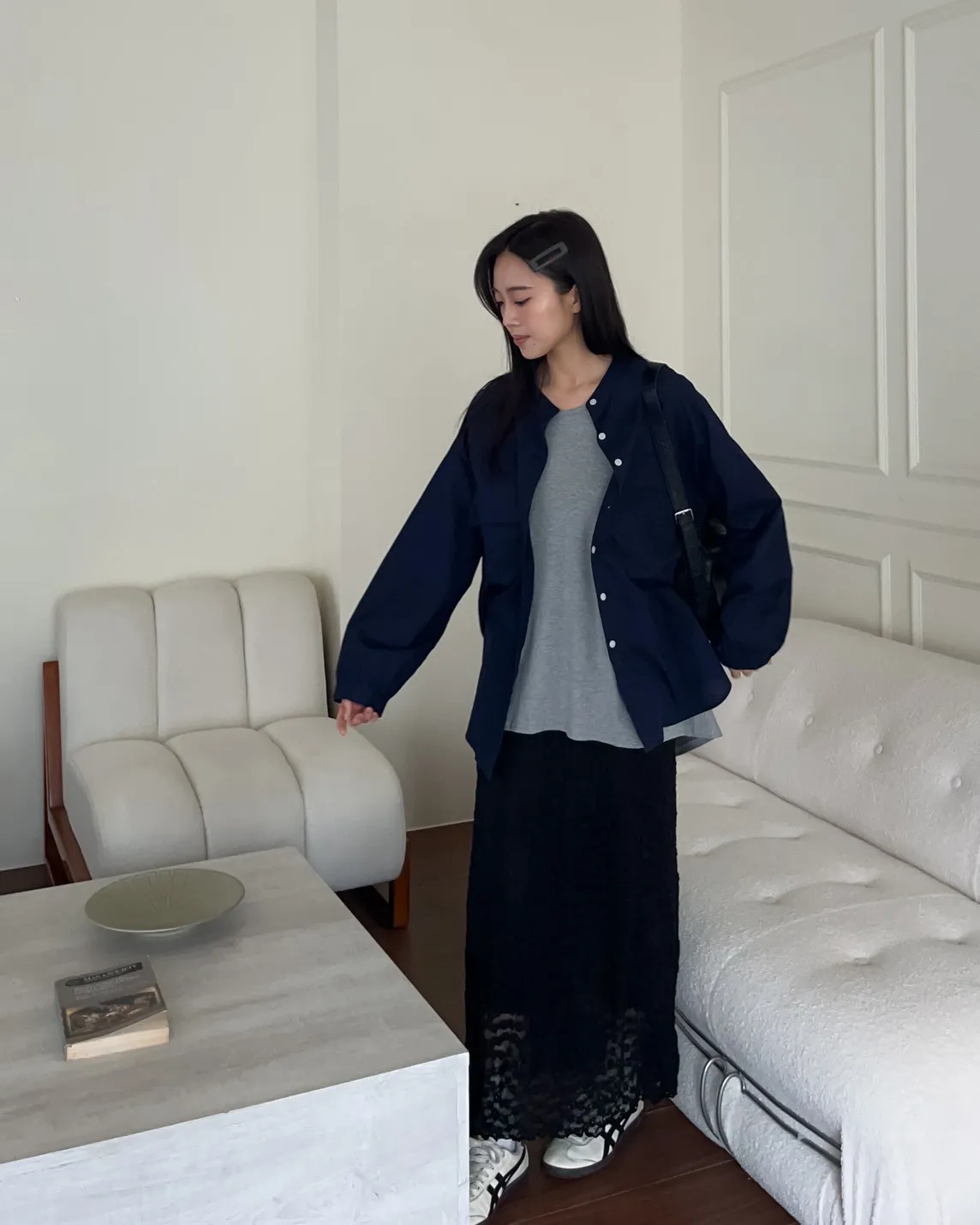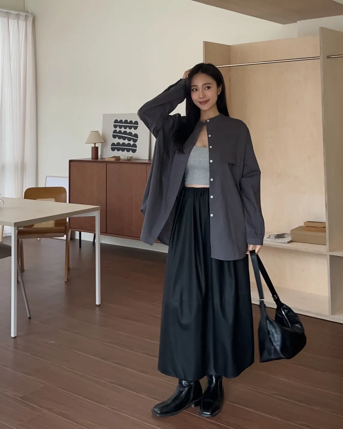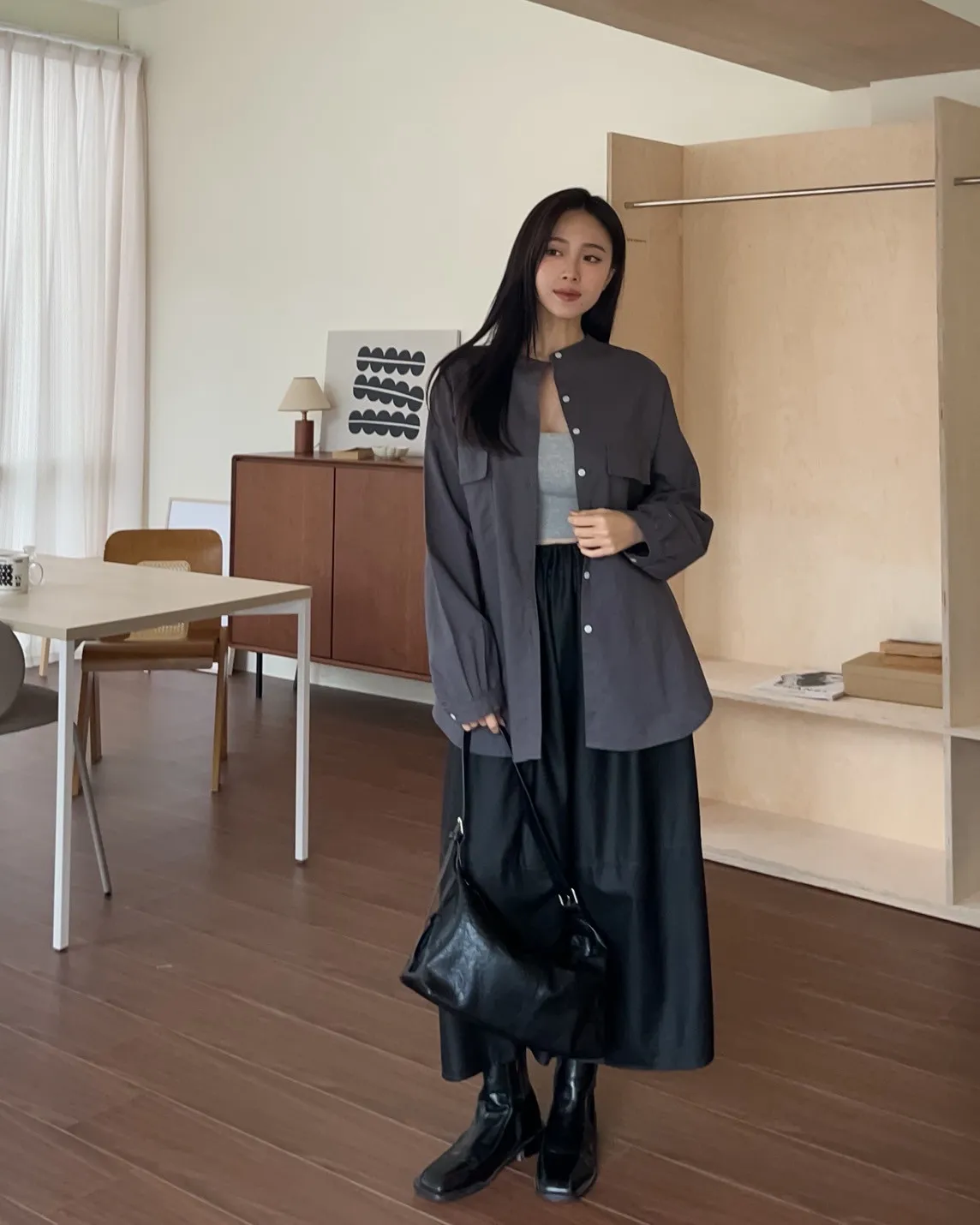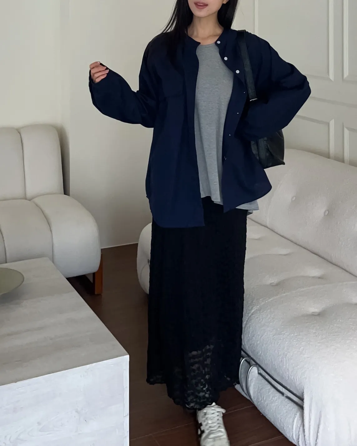 T0053中山領純色落肩襯衫(咖啡/粉紅/深藍/灰)(售完不補)