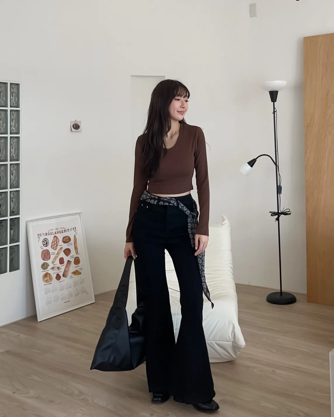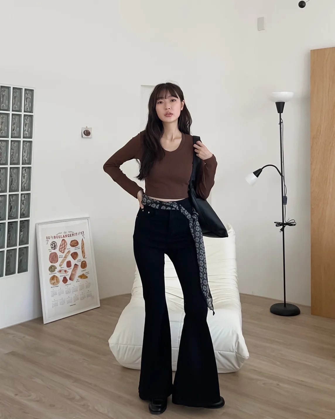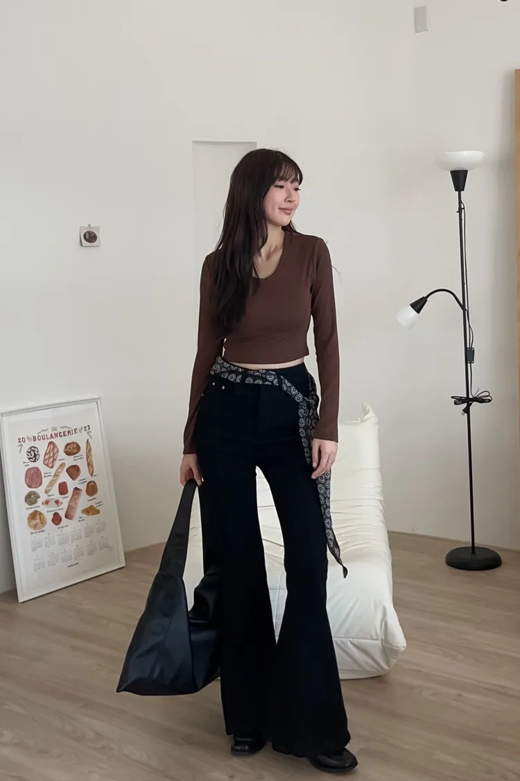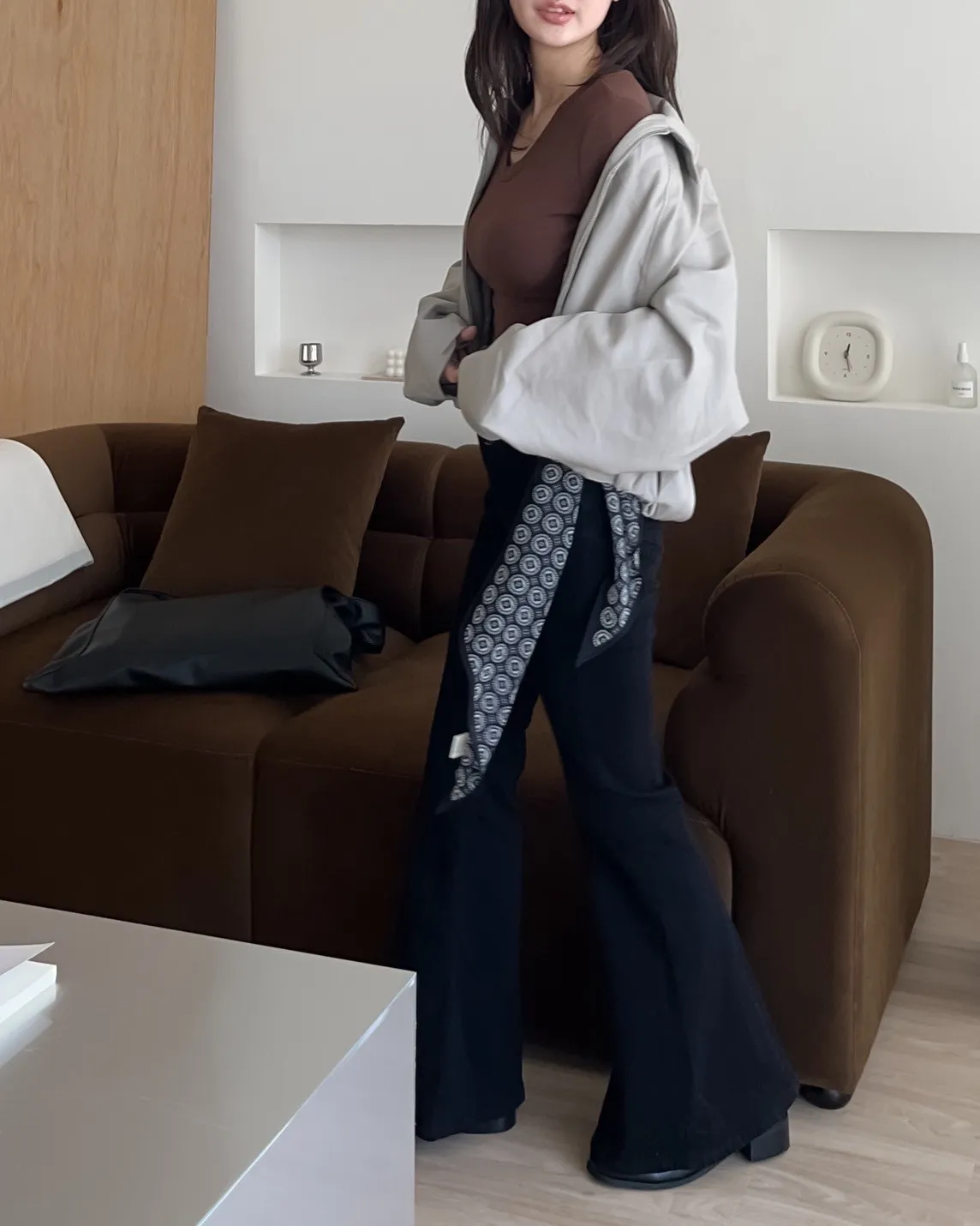 版型正常 兩側口袋 後口袋 喇叭褲型 中車線造型 牛仔布料有彈性