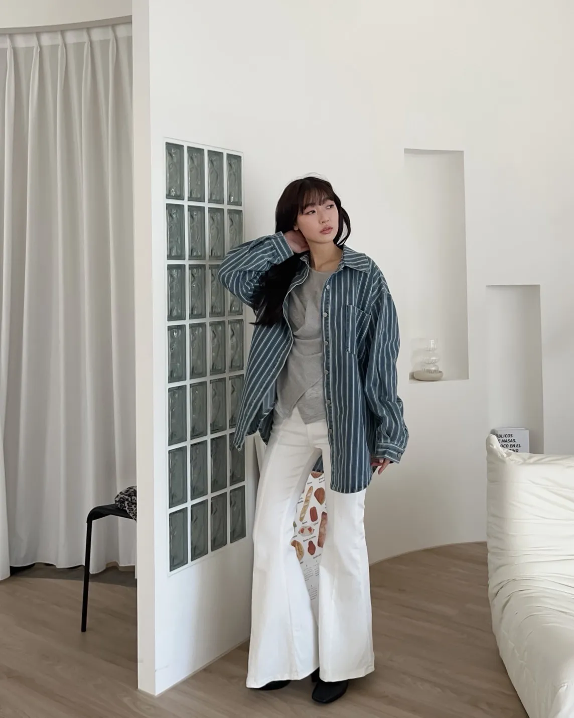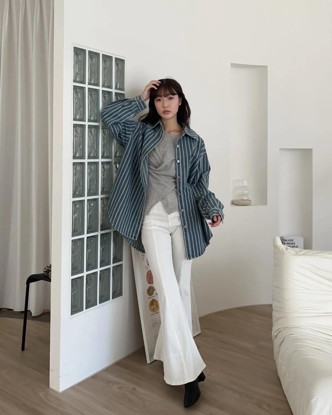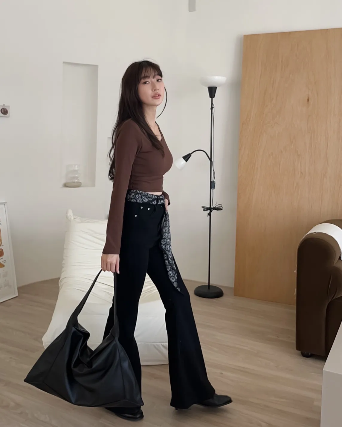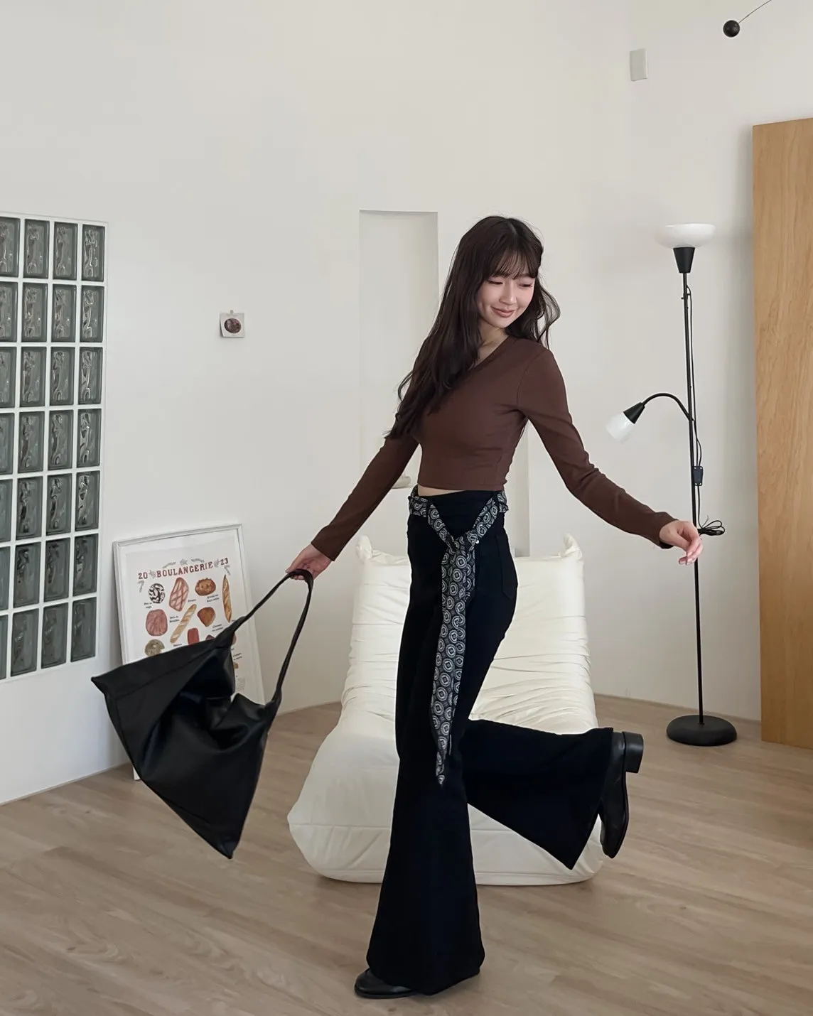 版型正常 兩側口袋 後口袋 喇叭褲型 中車線造型 牛仔布料有彈性