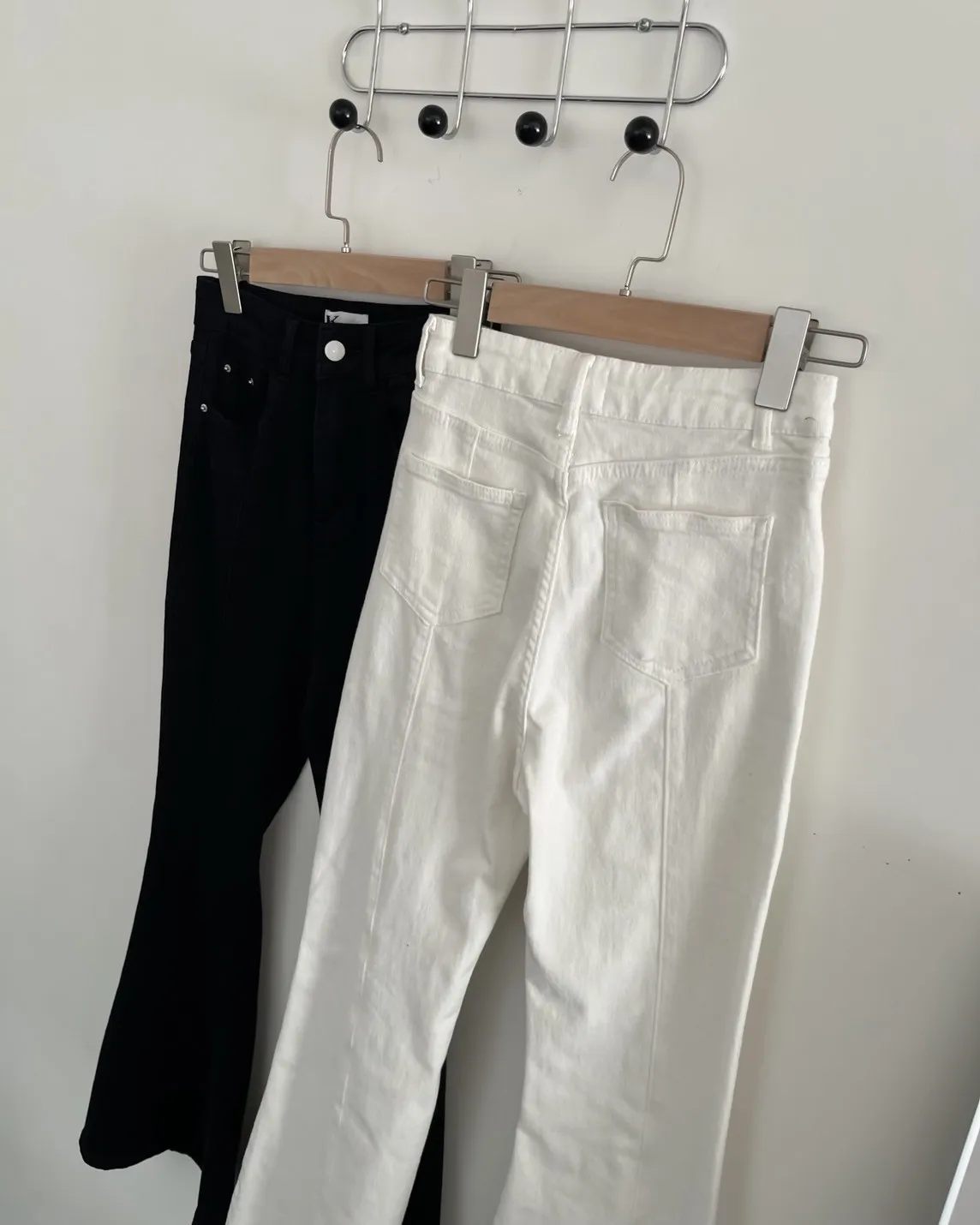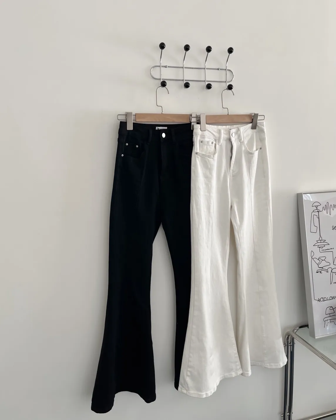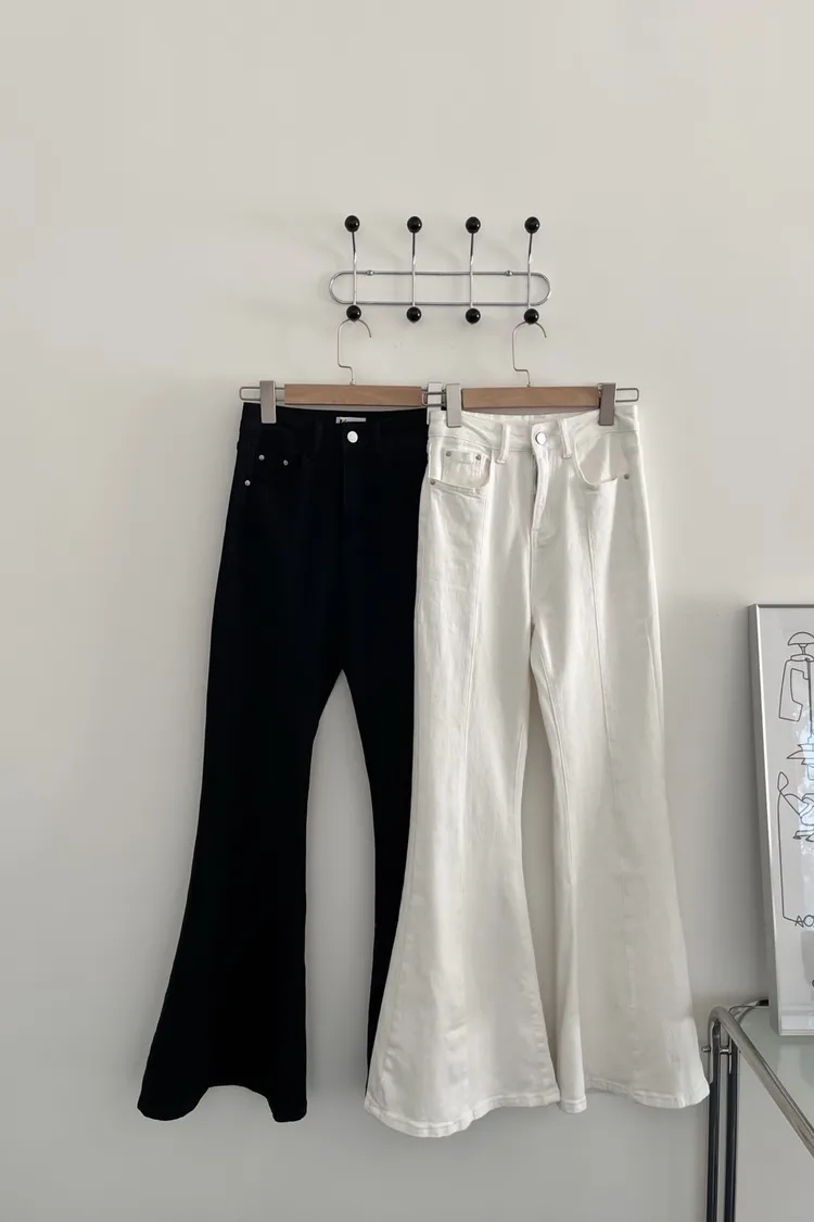 U0018逆天長腿!!彈性牛仔喇叭褲(白/黑)(售完不補)