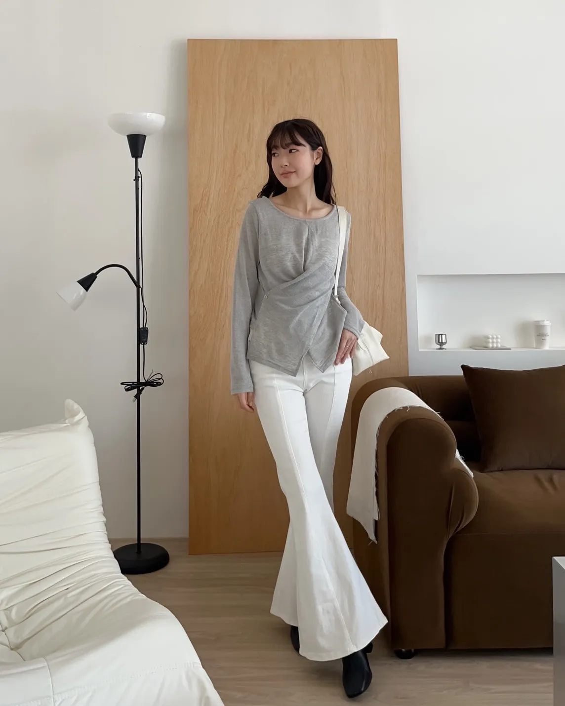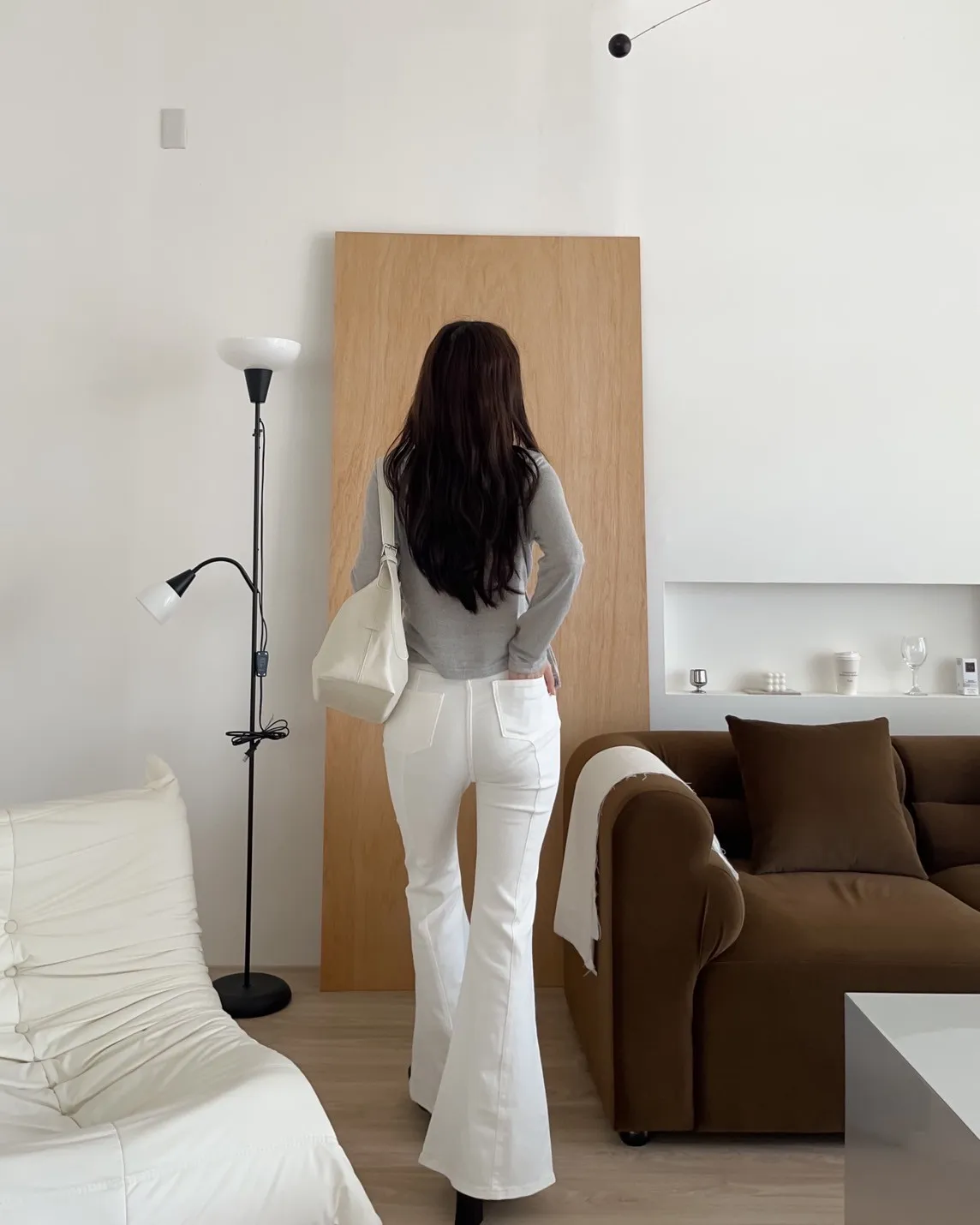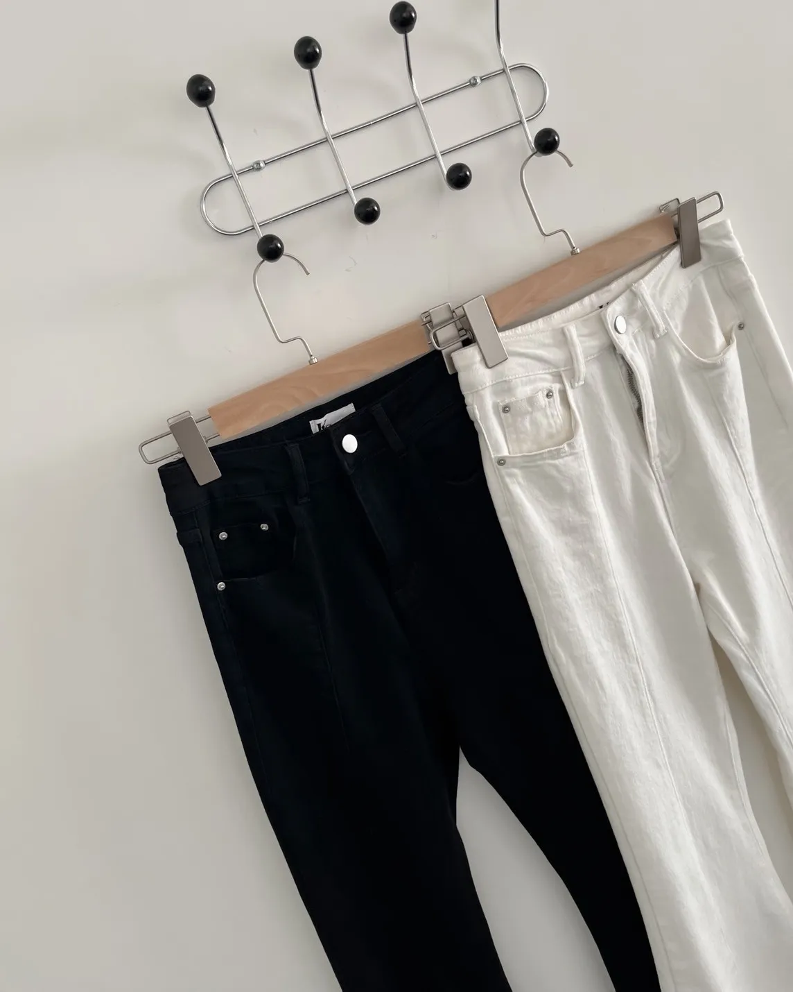 U0018逆天長腿!!彈性牛仔喇叭褲(白/黑)(售完不補)