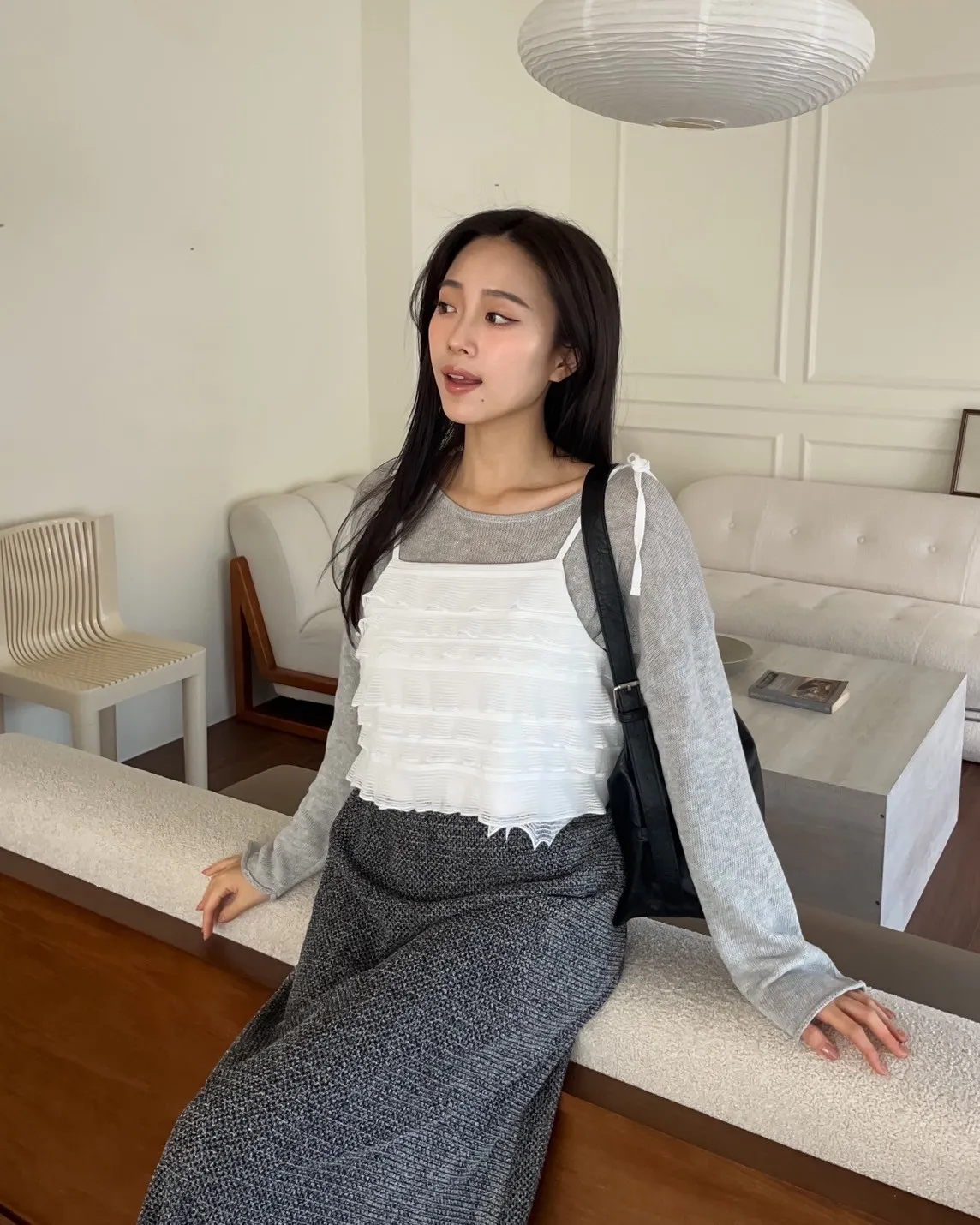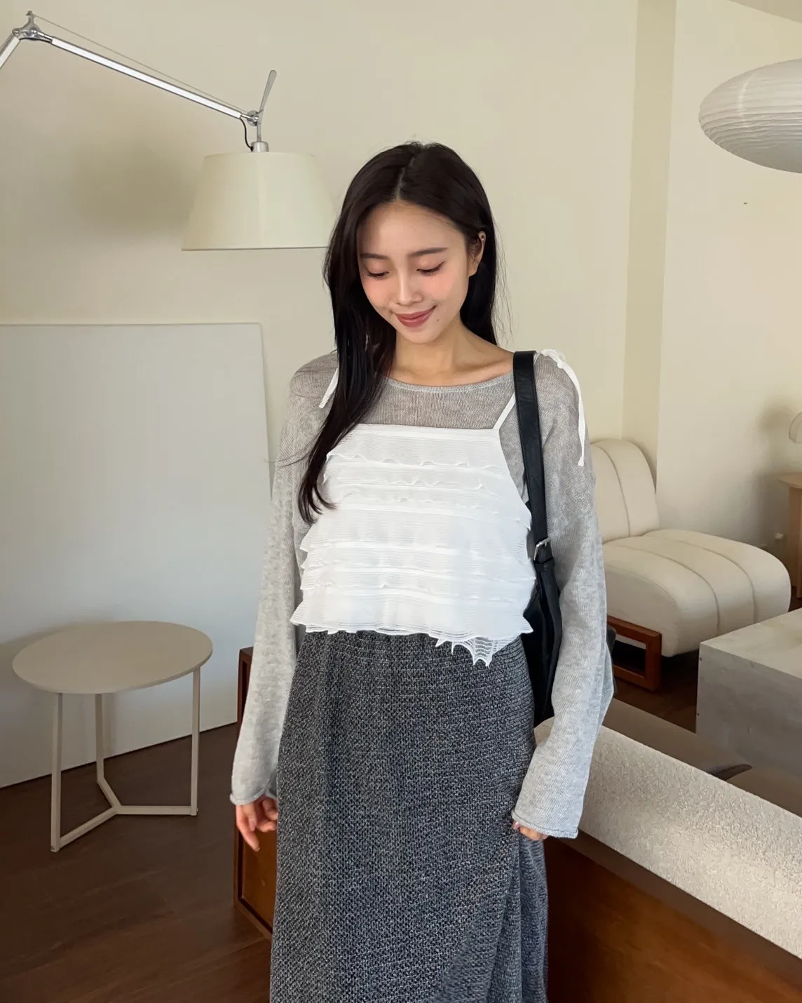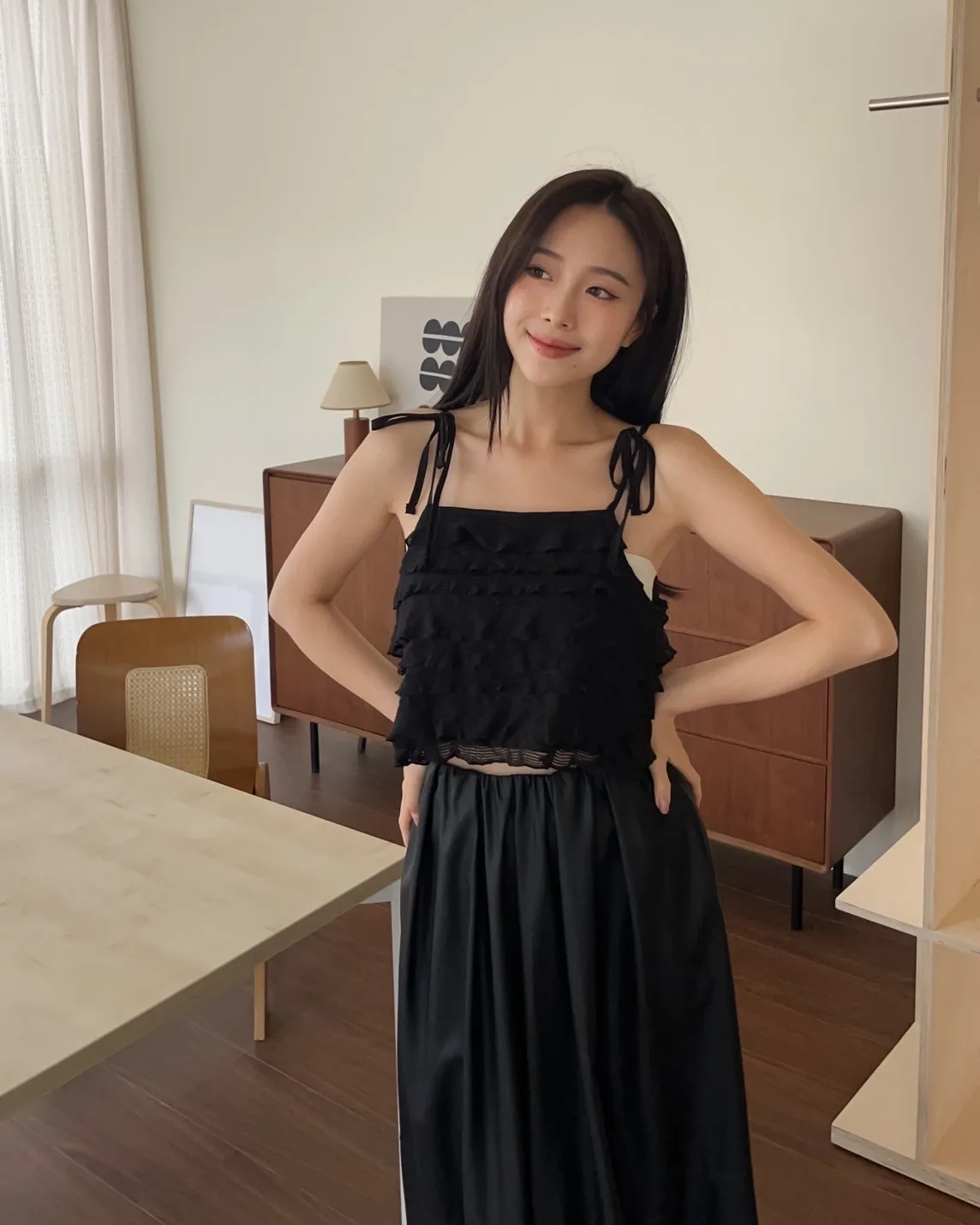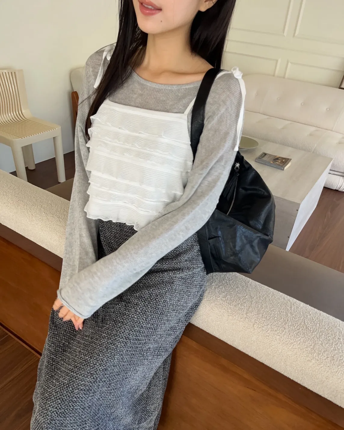 T0052肩綁帶層次蛋糕背心(白/灰/黑)(售完不補)