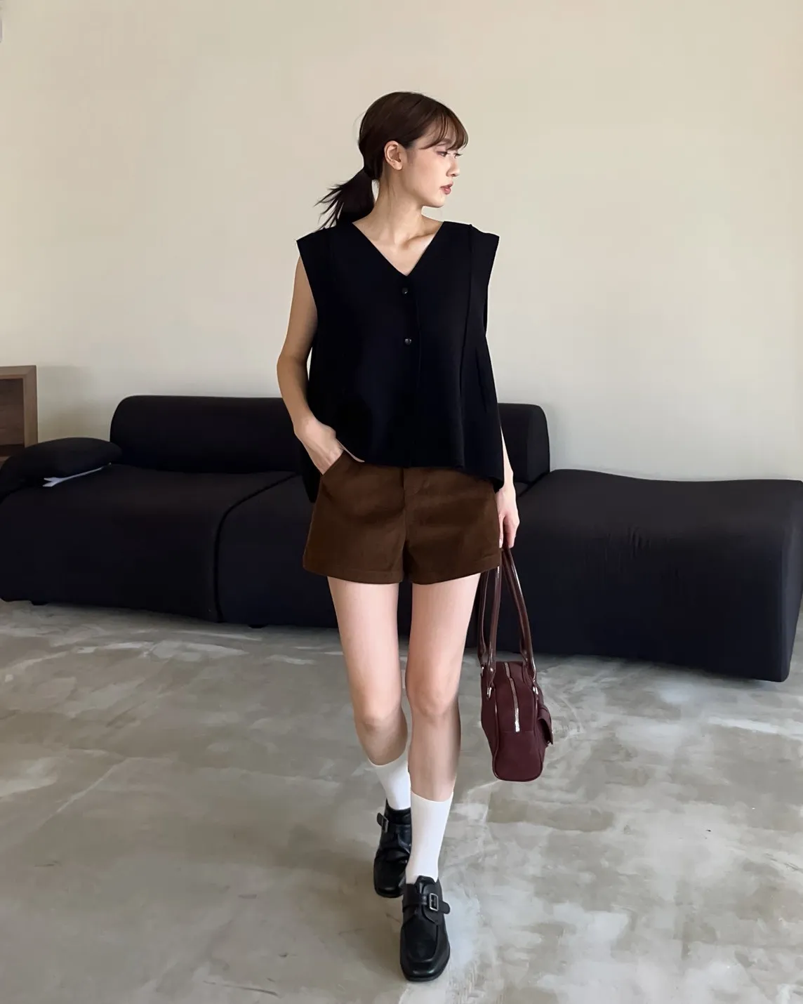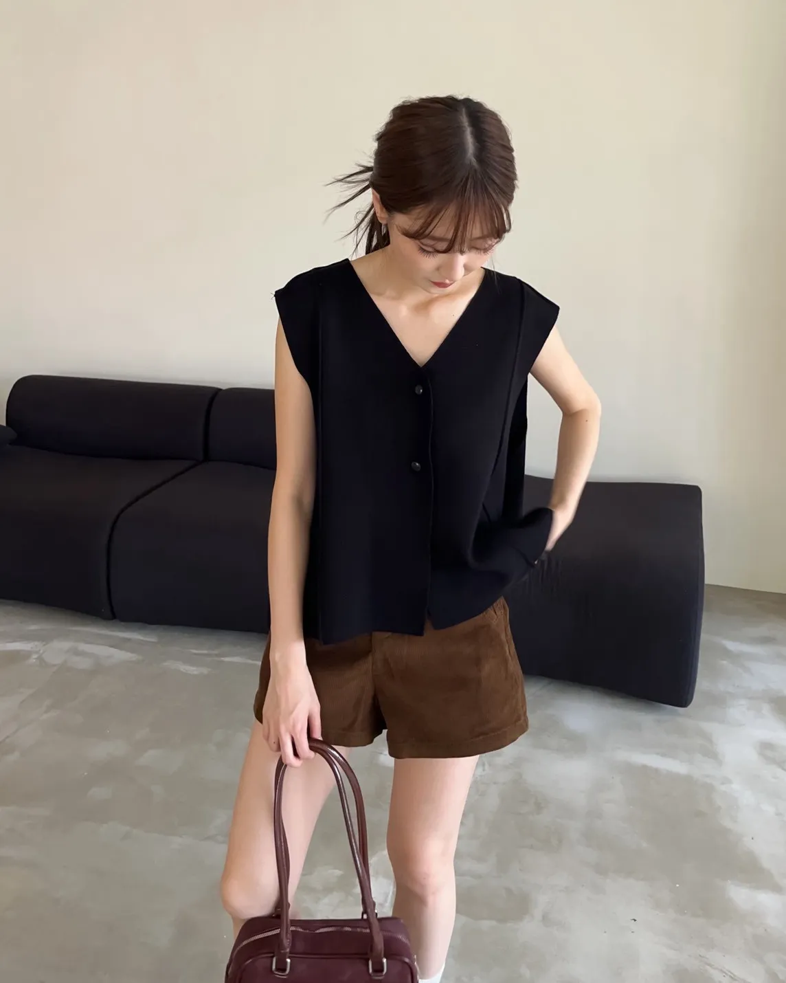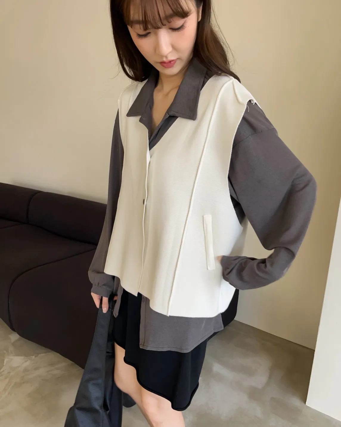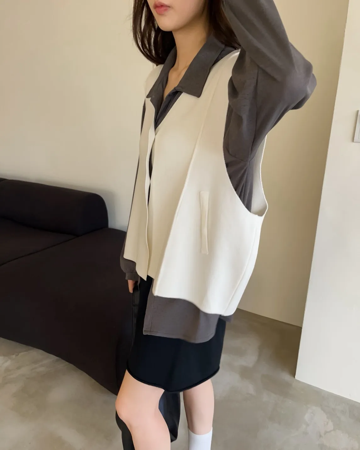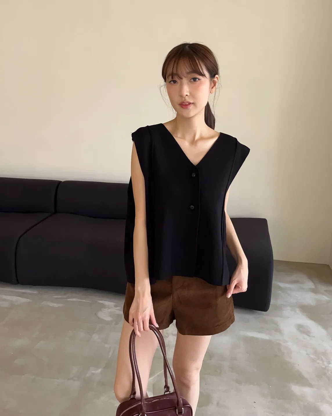 V0022俐落鈕釦落肩針織背心(米白/黑)(售完不補)