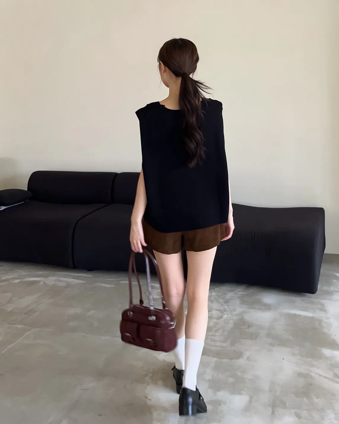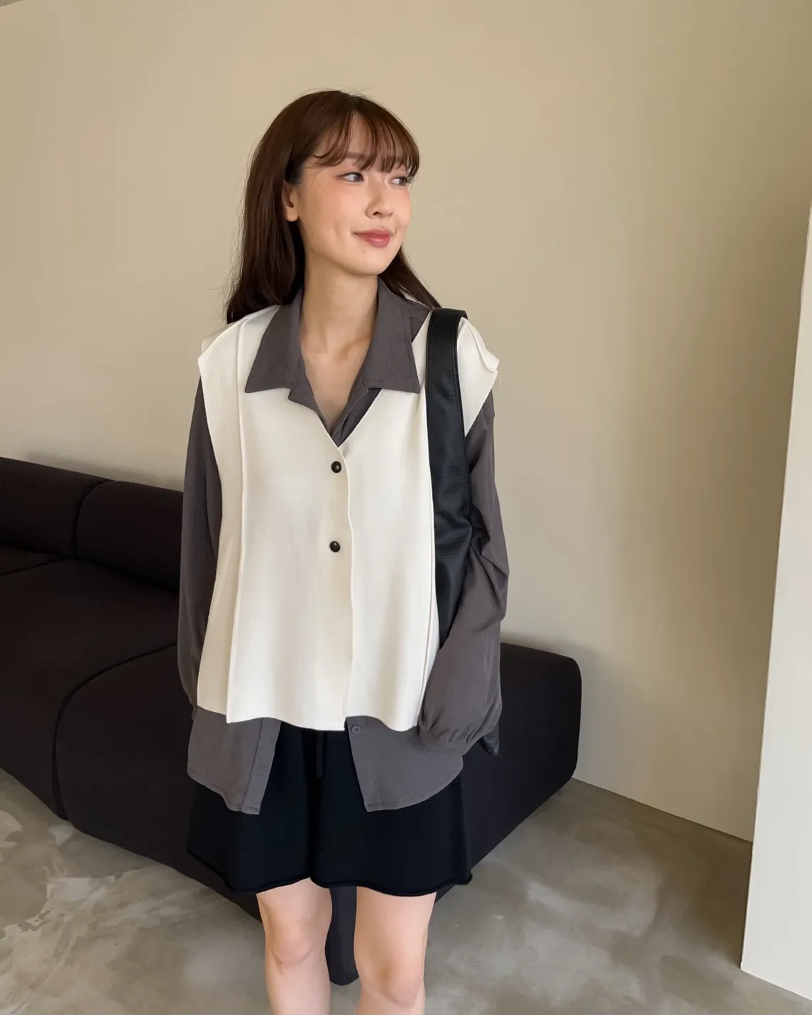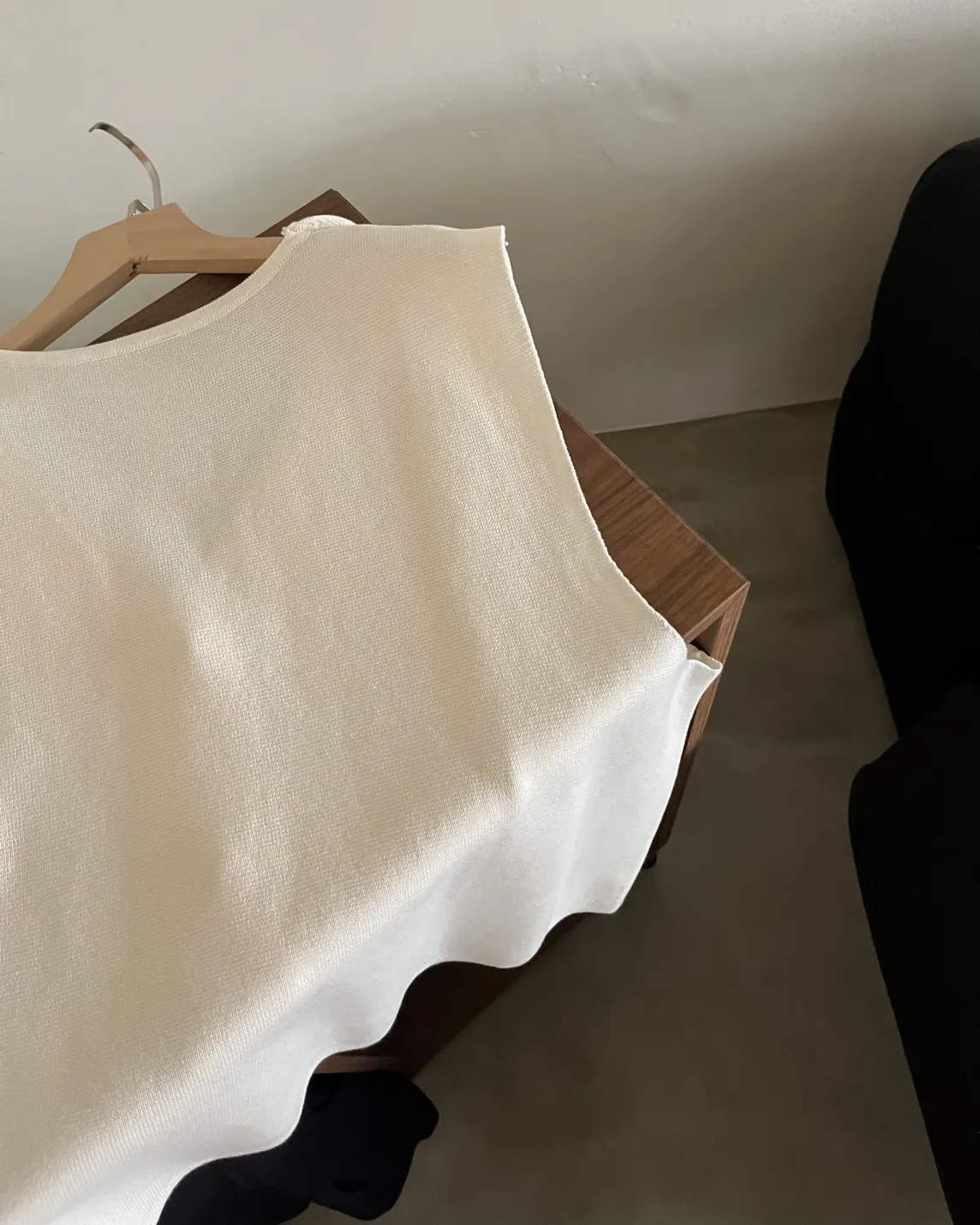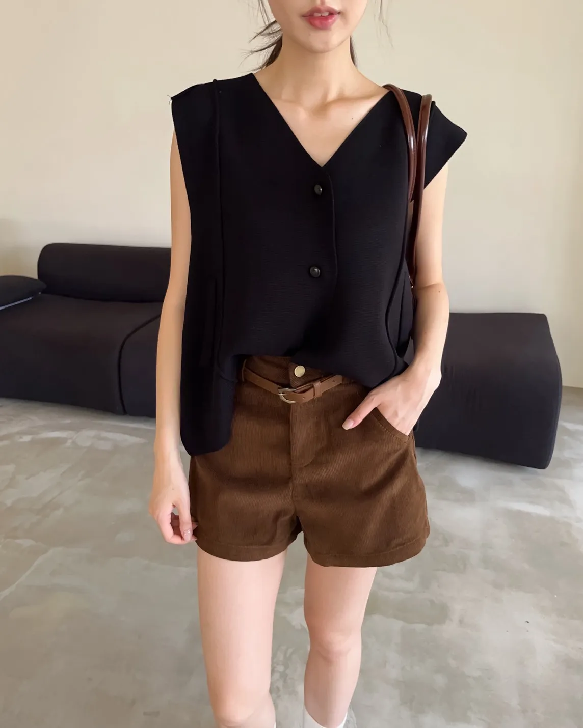 V0022俐落鈕釦落肩針織背心(米白/黑)(售完不補)