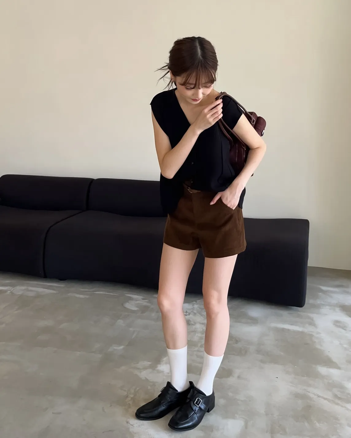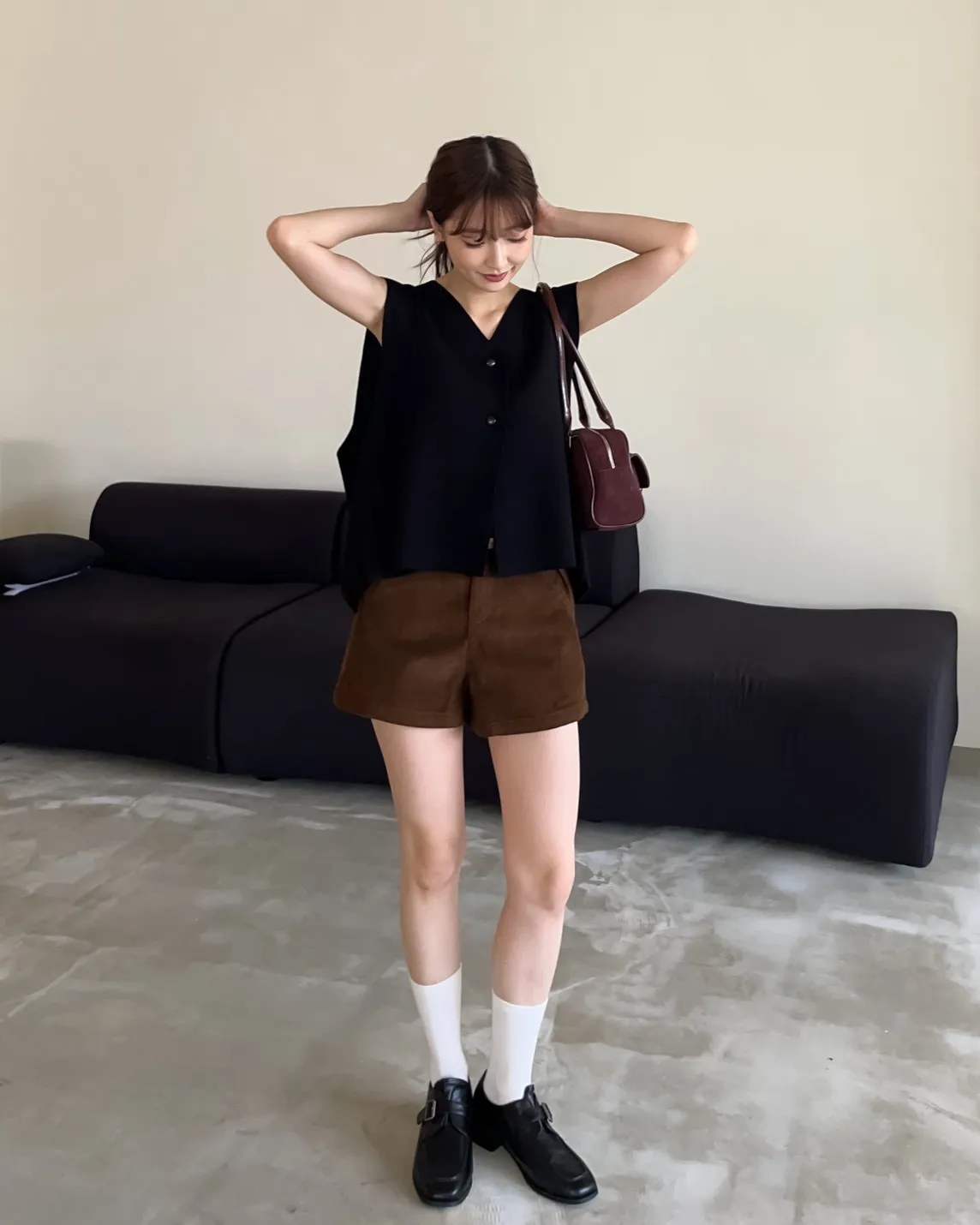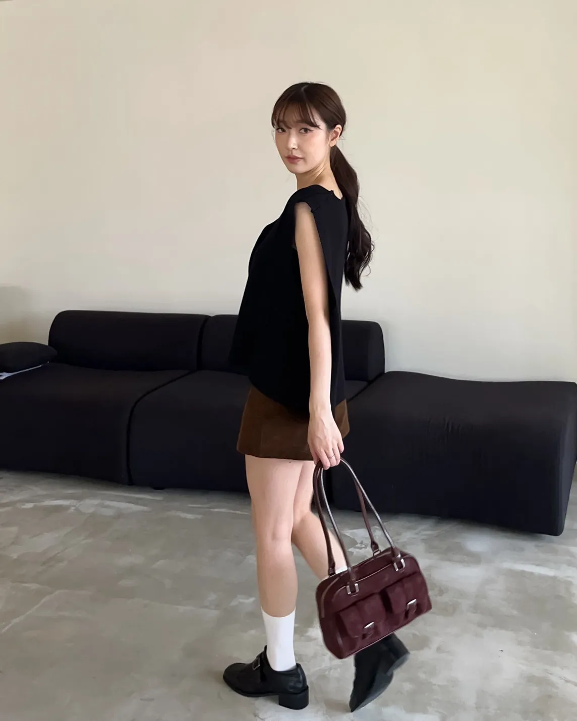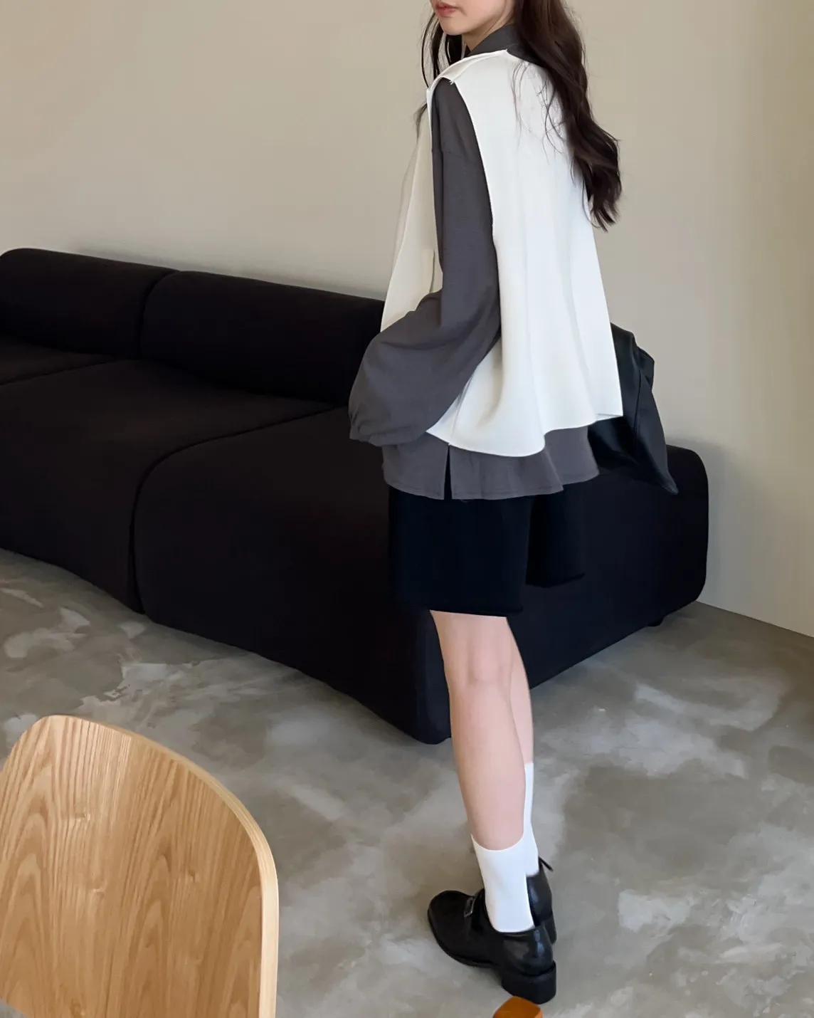 V0022俐落鈕釦落肩針織背心(米白/黑)(售完不補)