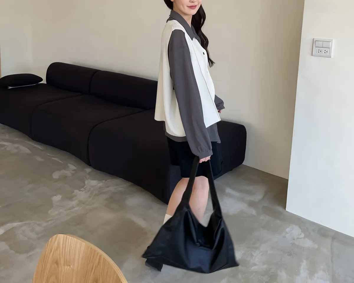 兩側假口袋 黑色鈕扣(可開) 寬鬆落肩 兩邊壓折造型 袖口很寬大 不會卡衣服