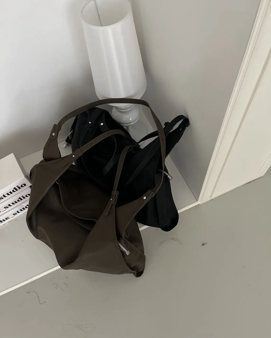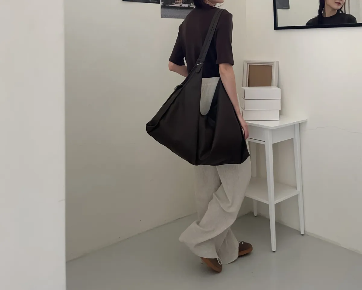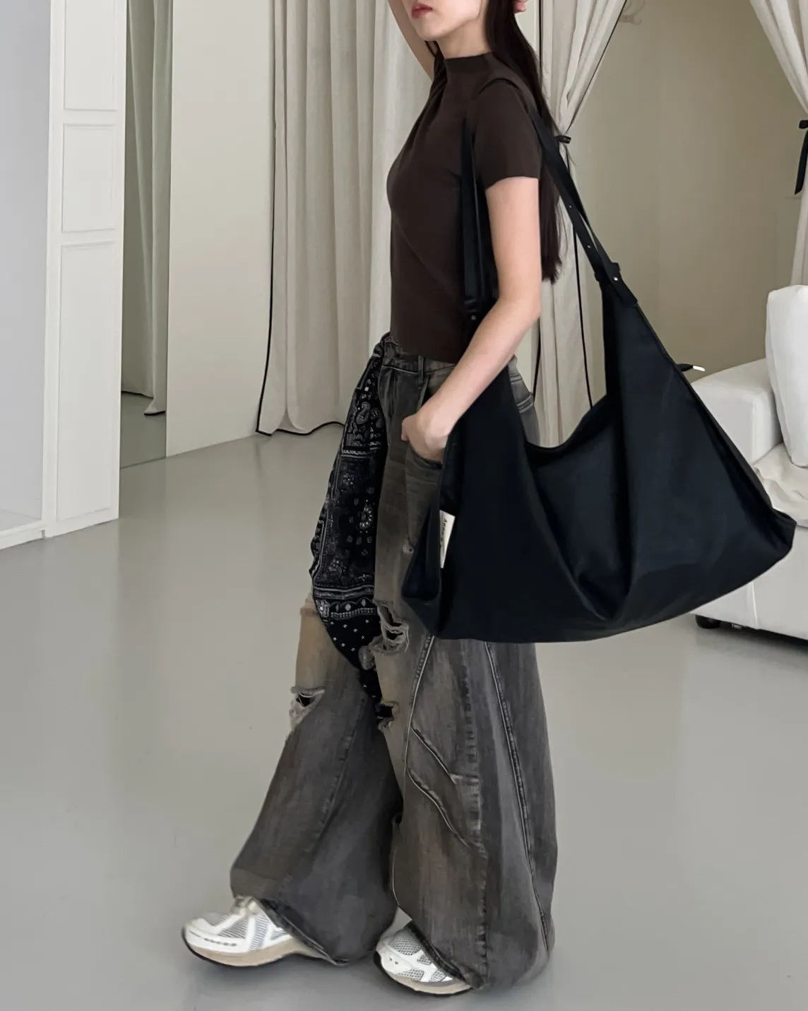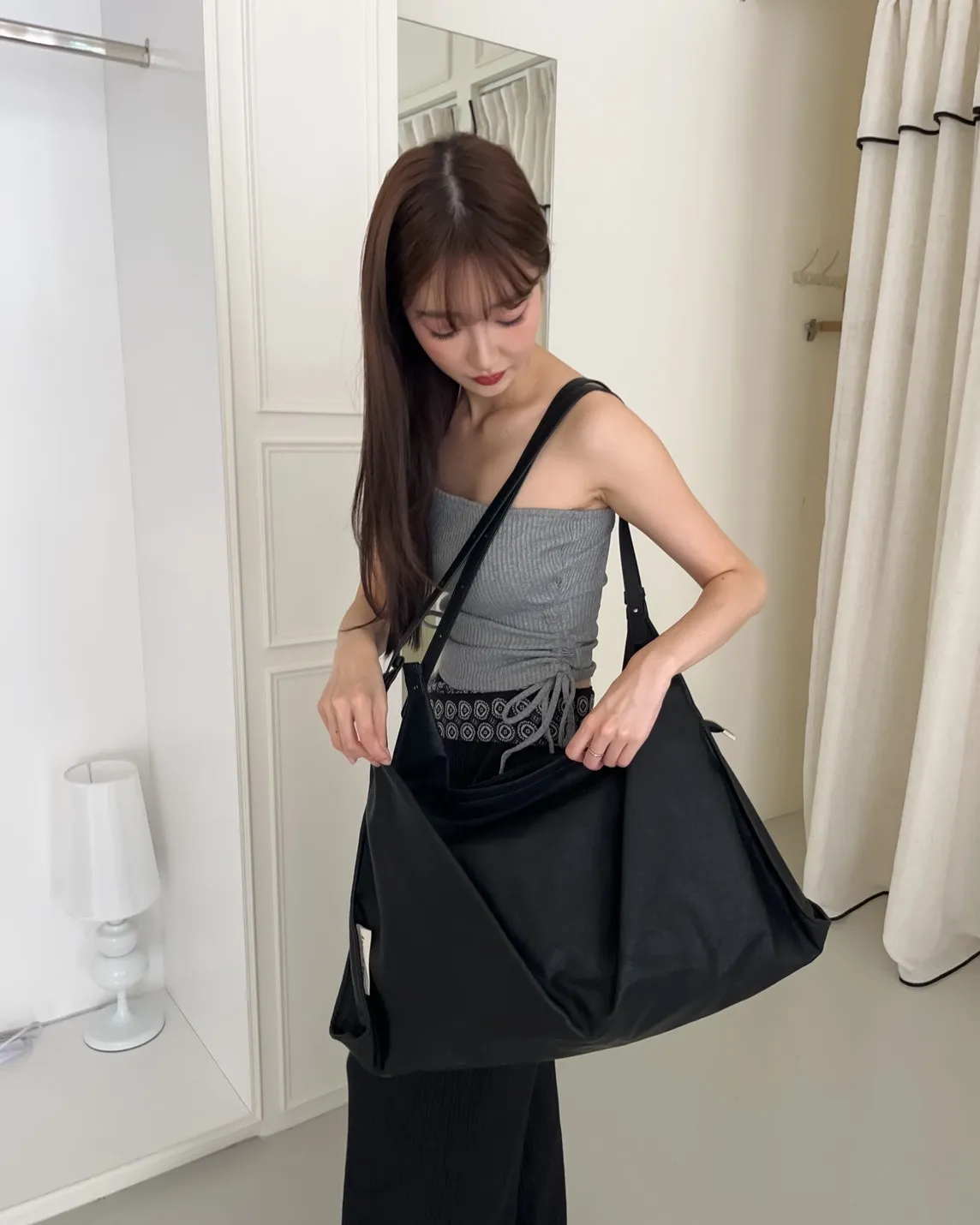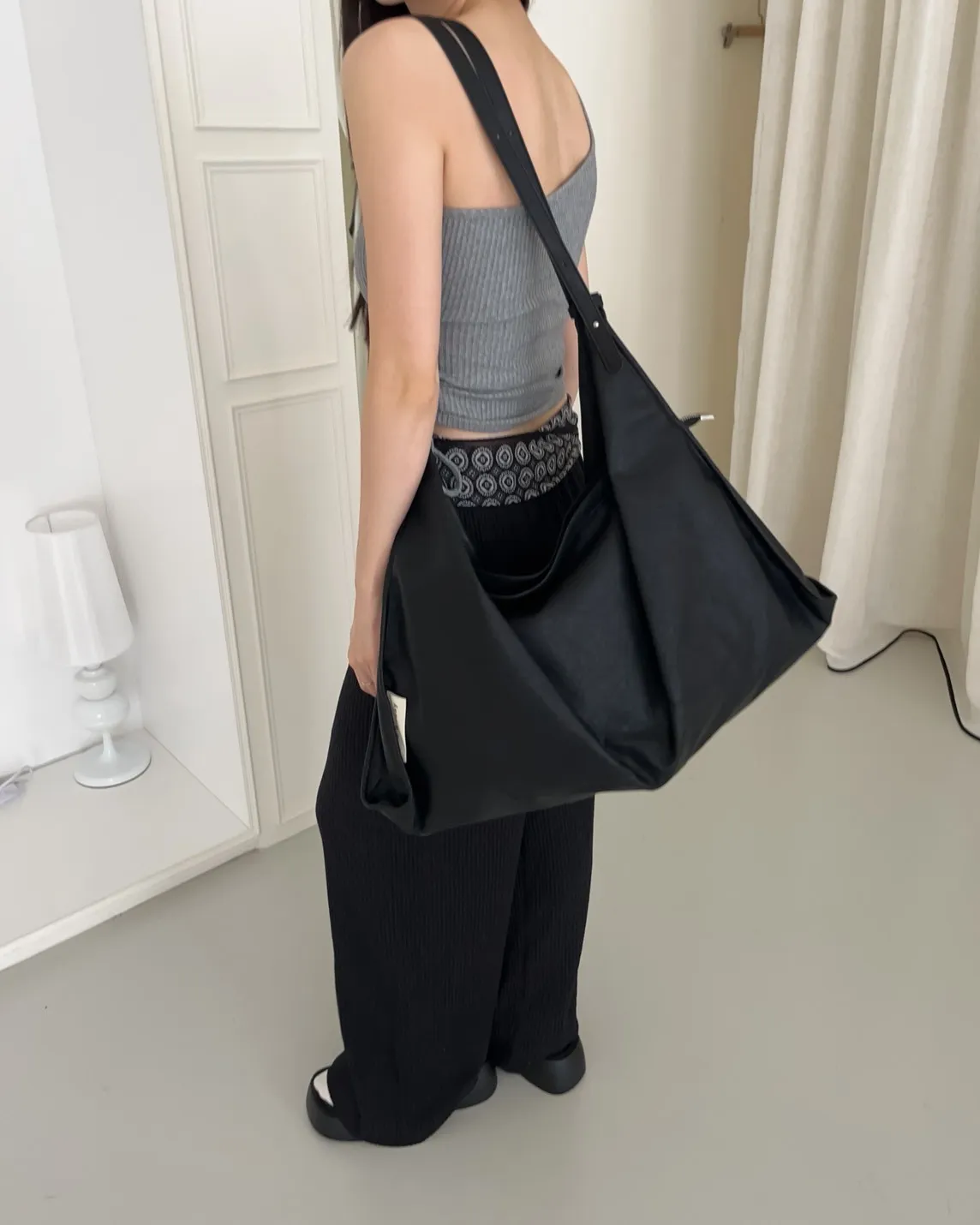 容量很大超能裝! 背帶可調長度 有一個拉鍊內袋 一個夾層 壓折造型 側邊布標