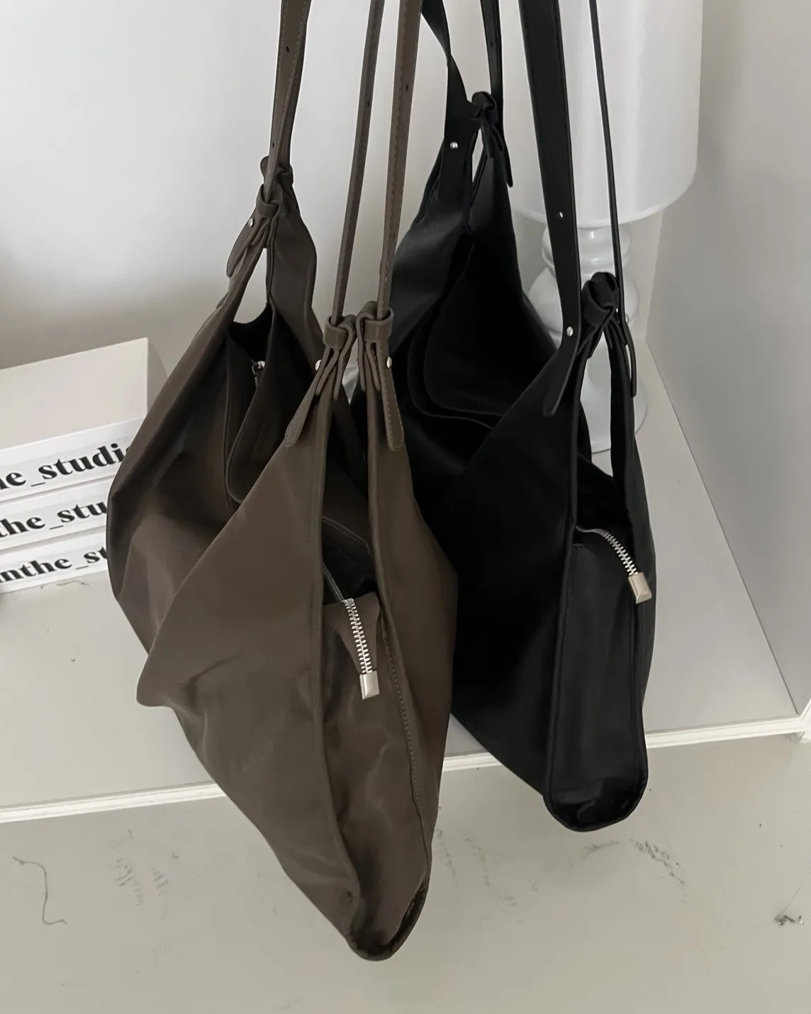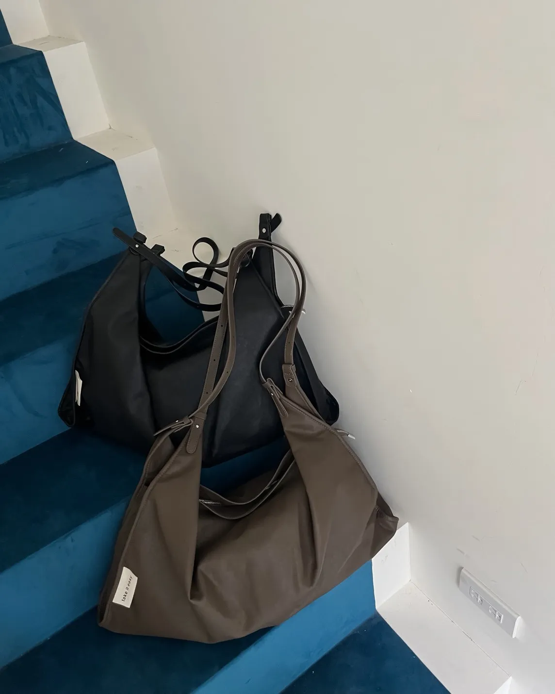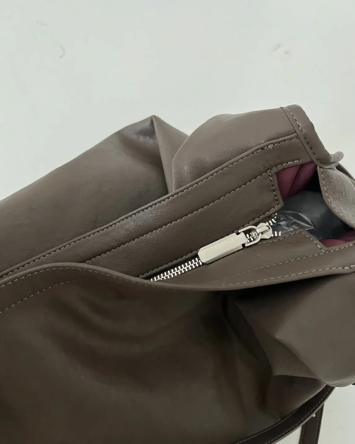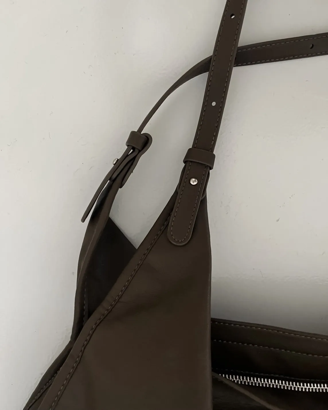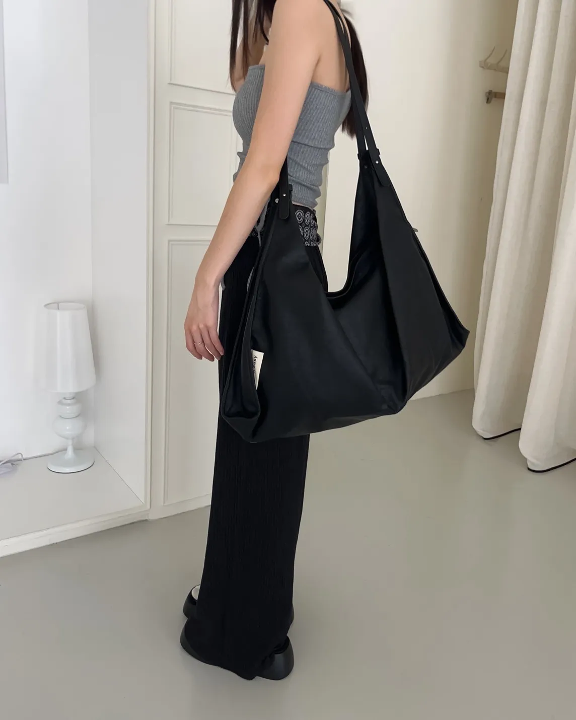 容量很大超能裝! 背帶可調長度 有一個拉鍊內袋 一個夾層 壓折造型 側邊布標