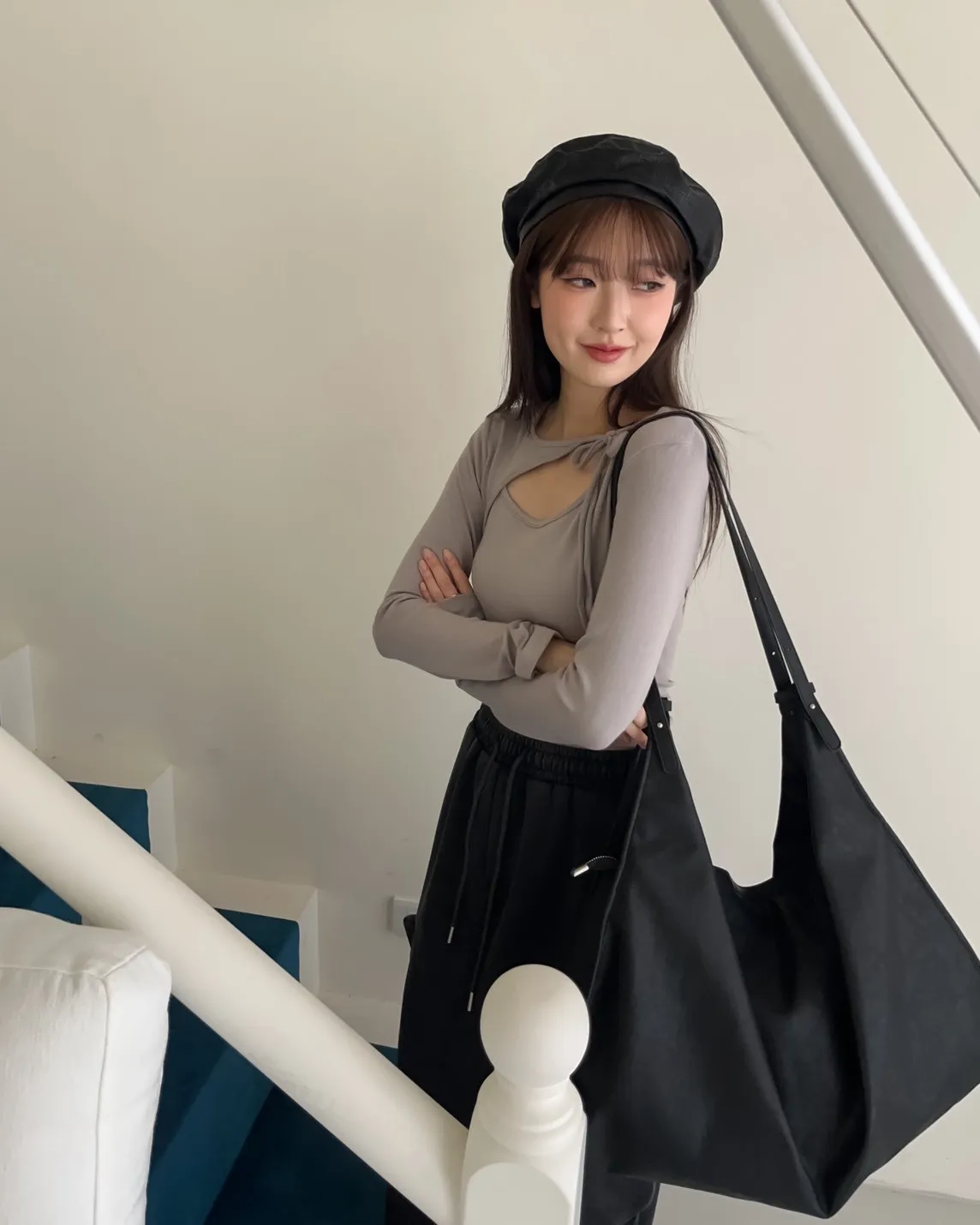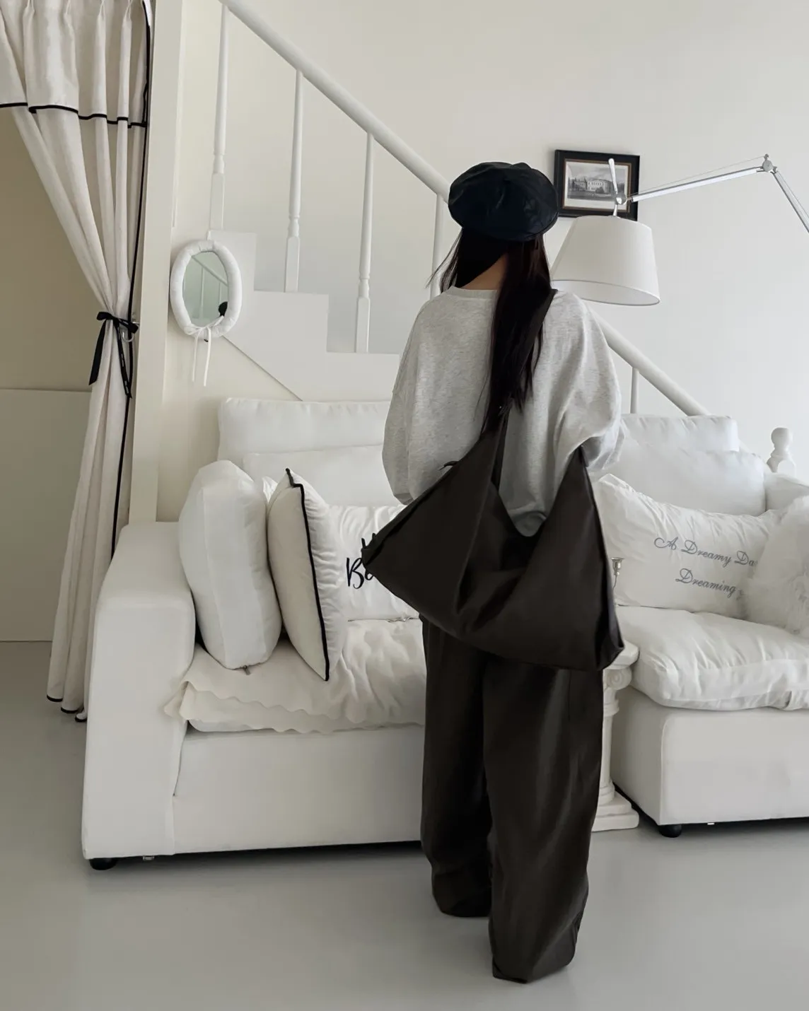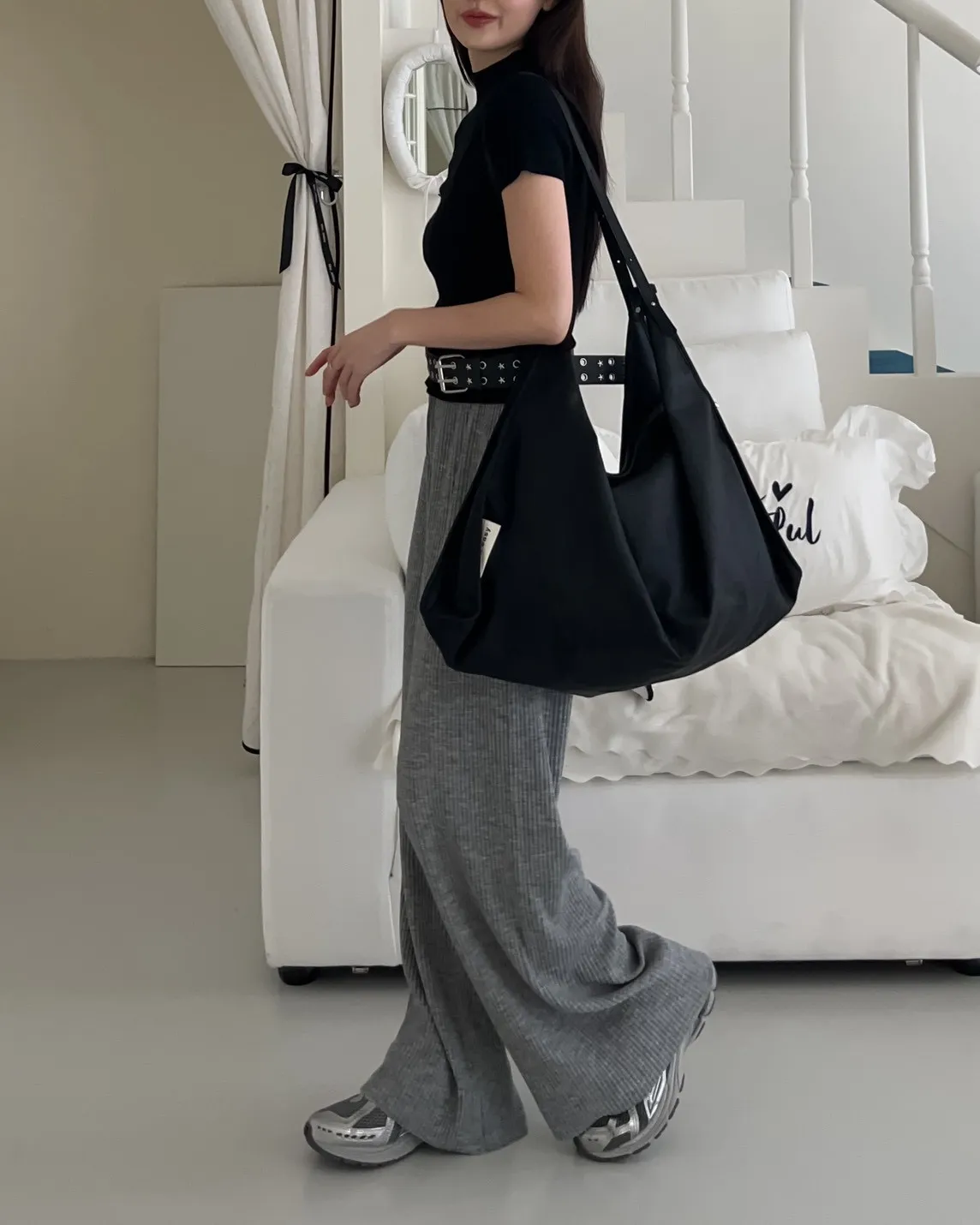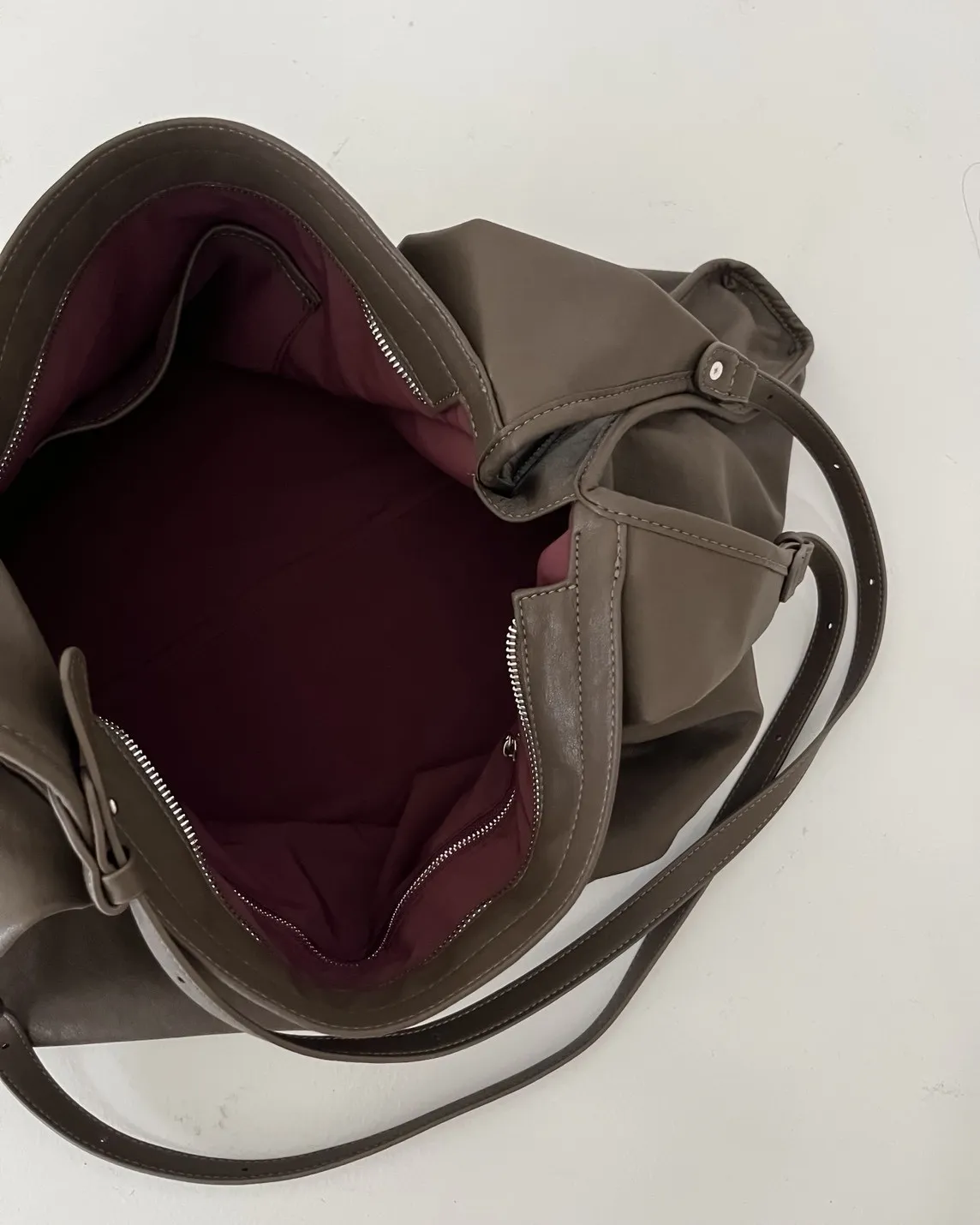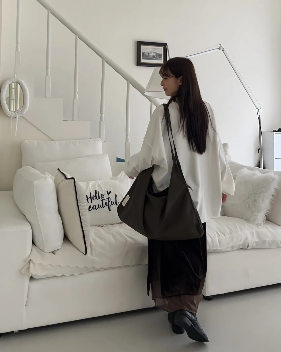 容量很大超能裝! 背帶可調長度 有一個拉鍊內袋 一個夾層 壓折造型 側邊布標
