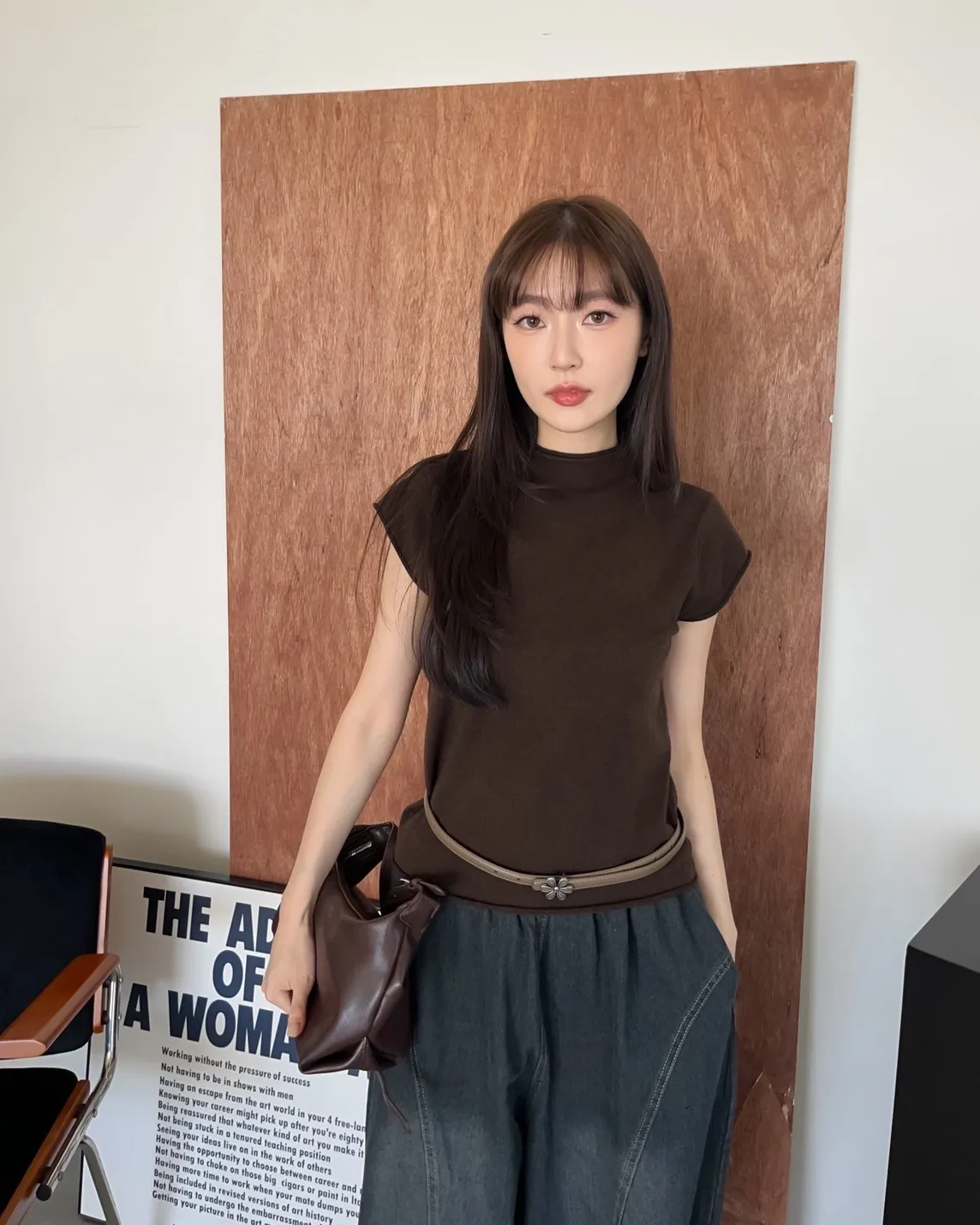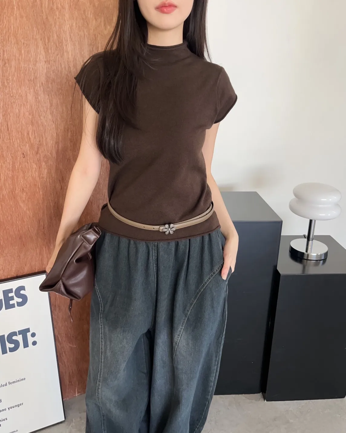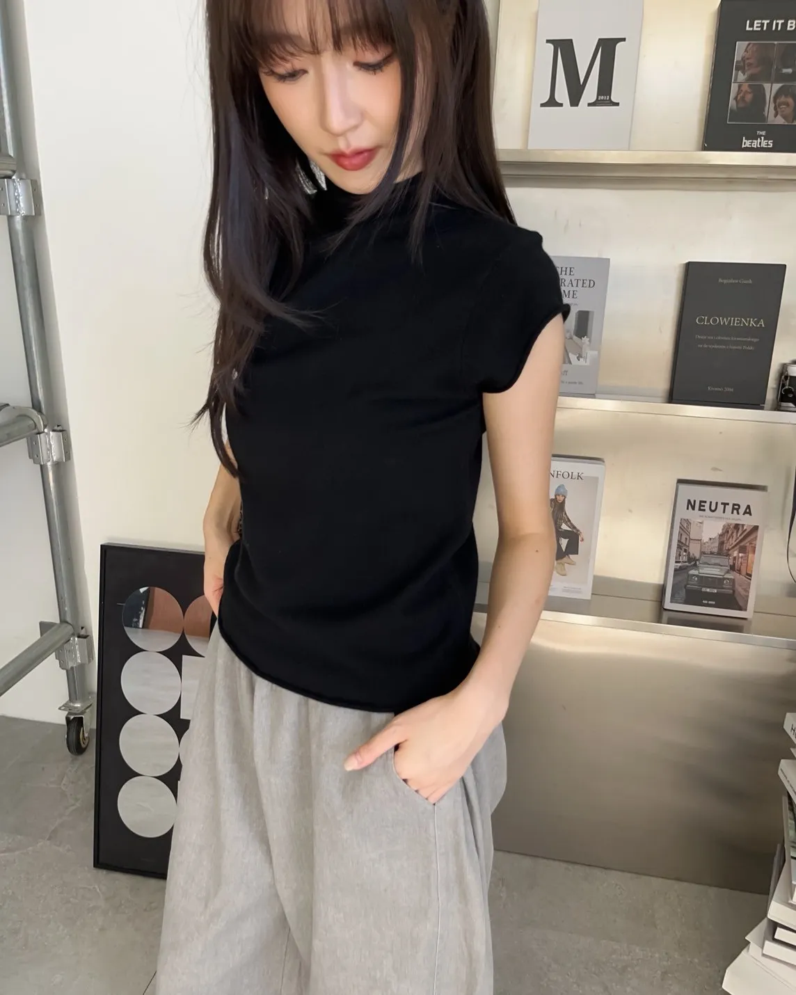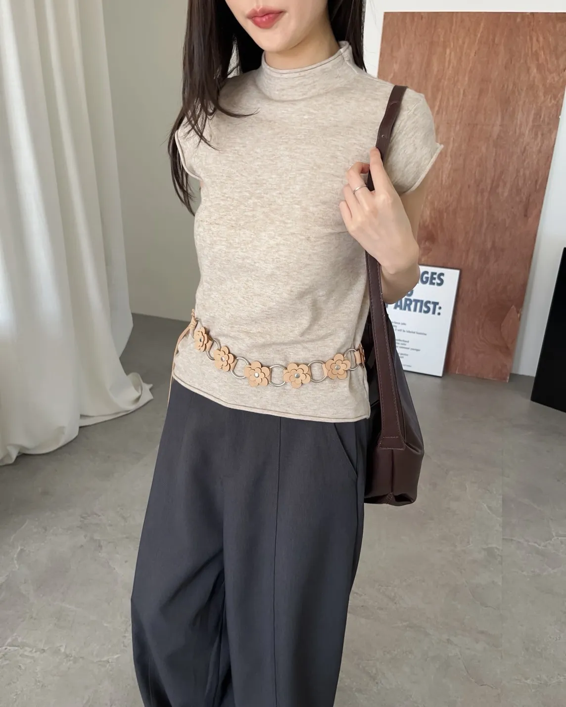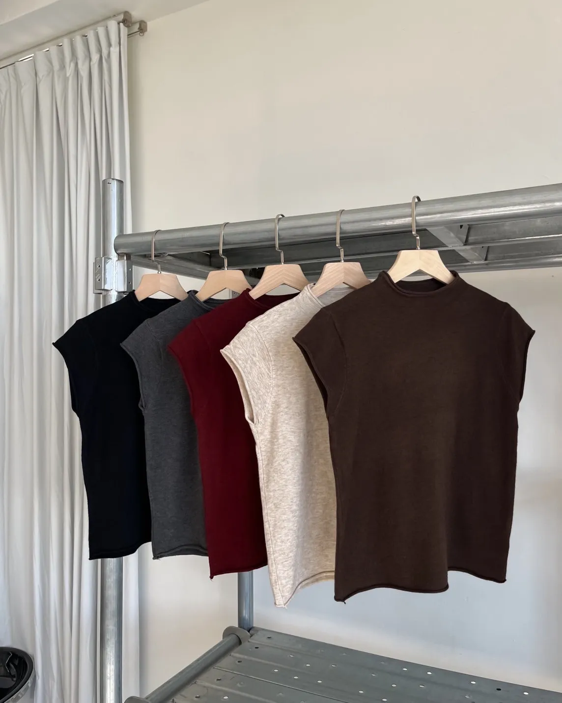 U0073知性美捲邊小立領針織上衣(杏/咖啡/紅/深灰/黑)
