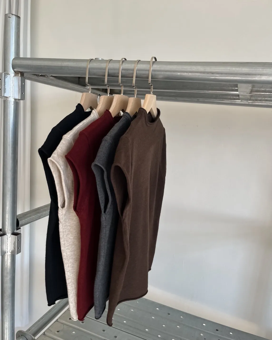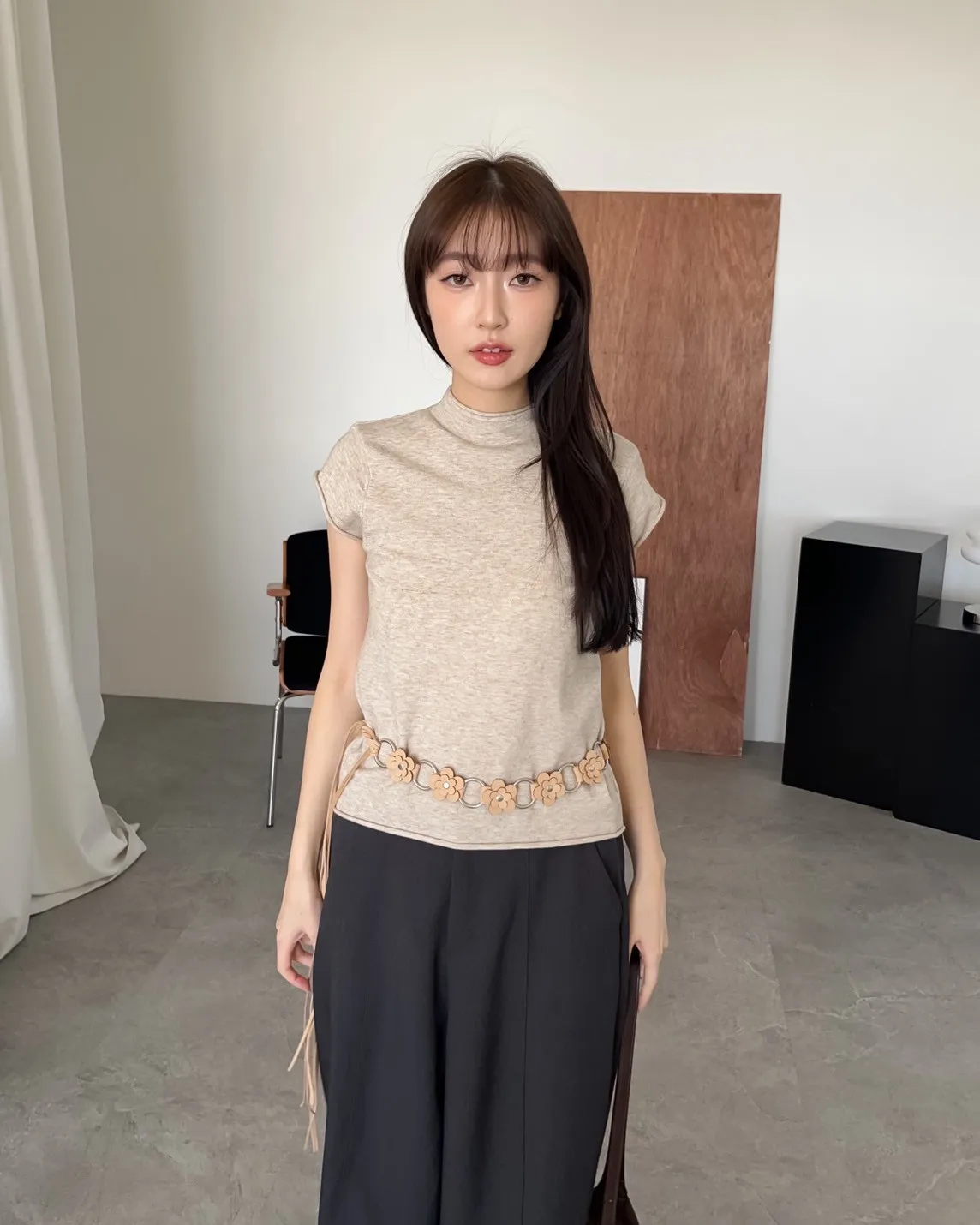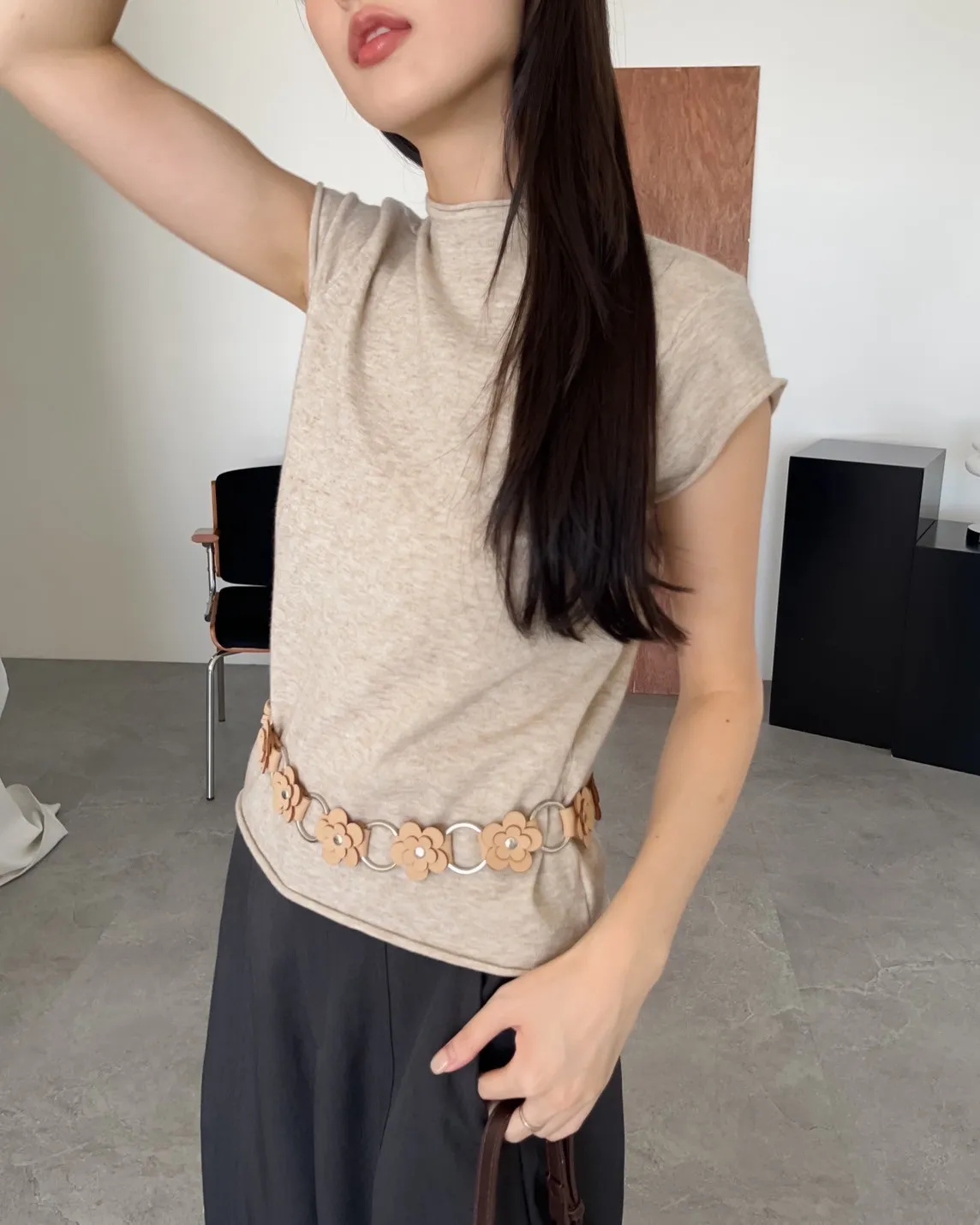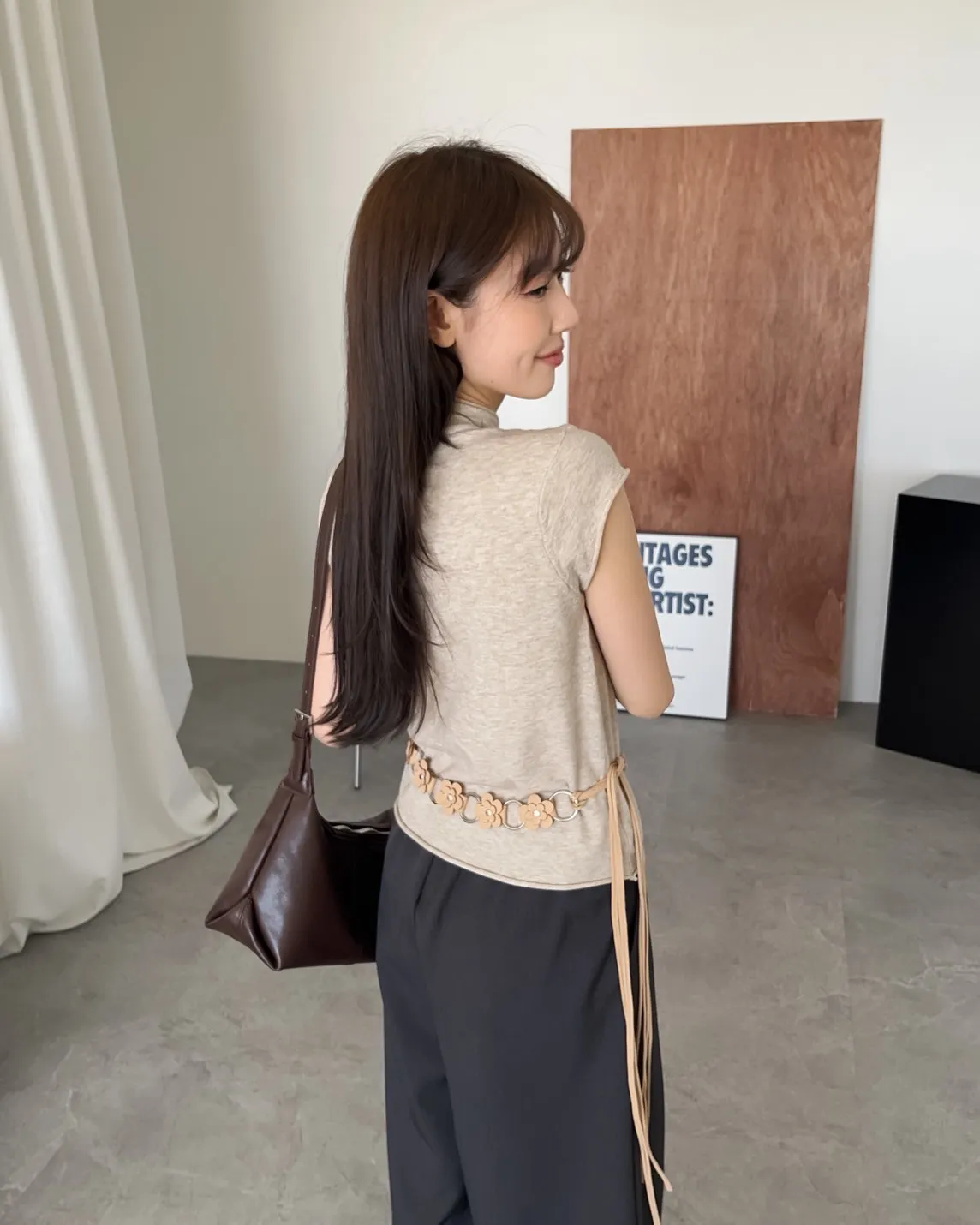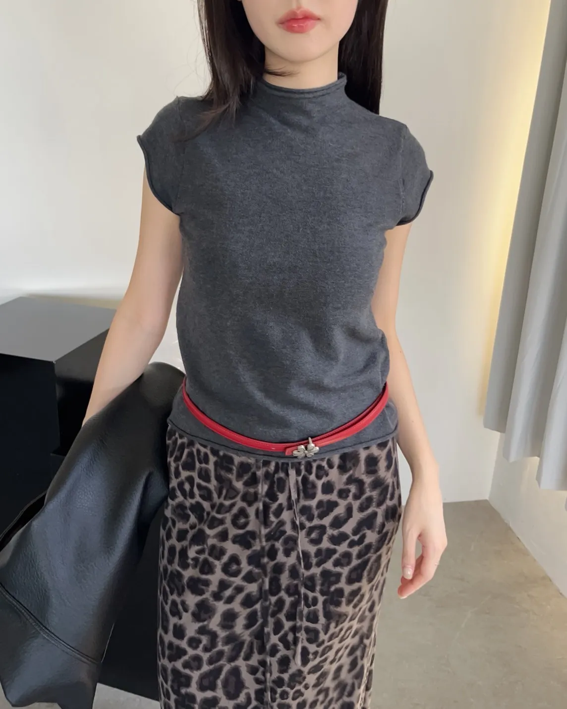 U0073知性美捲邊小立領針織上衣(杏/咖啡/紅/深灰/黑)