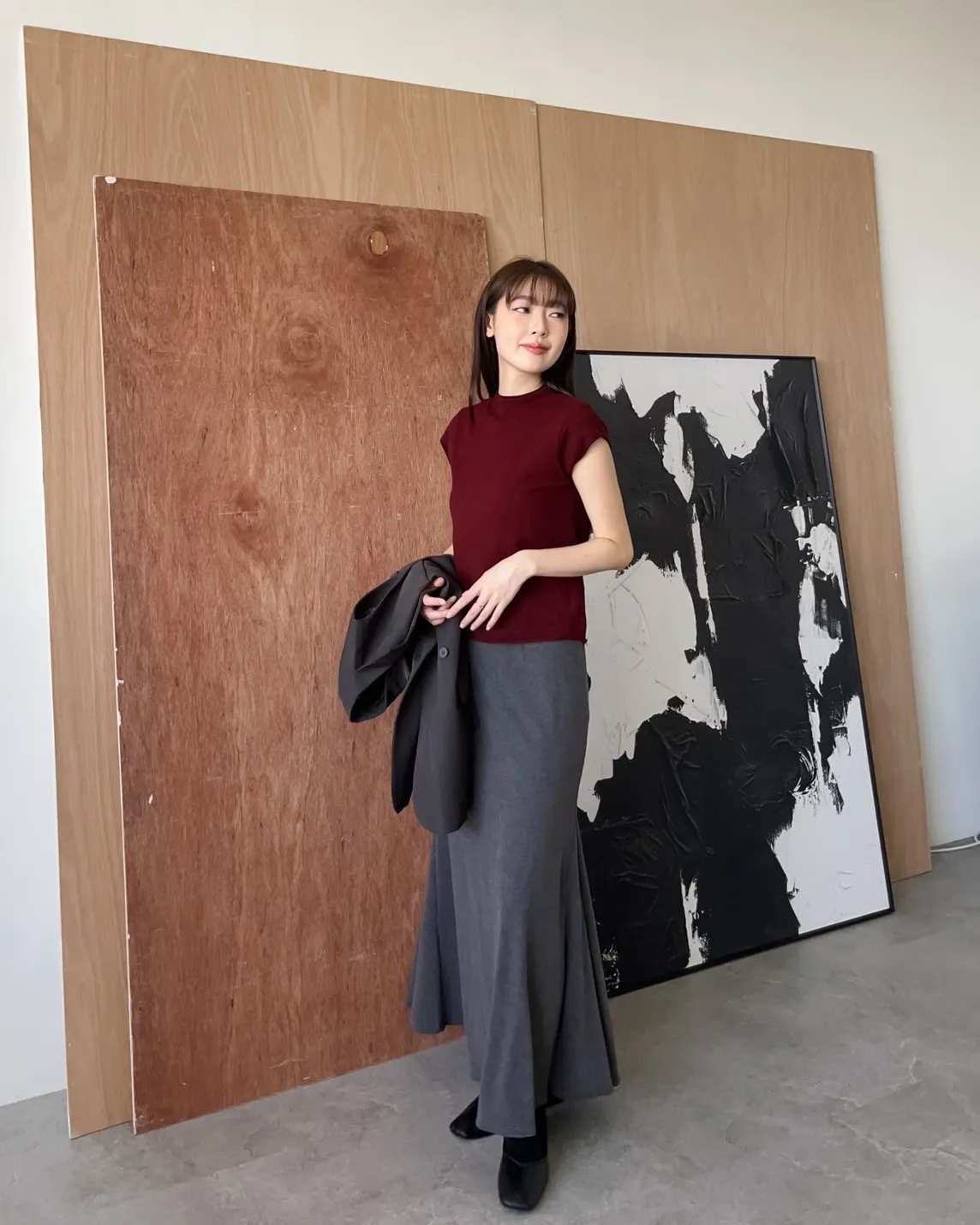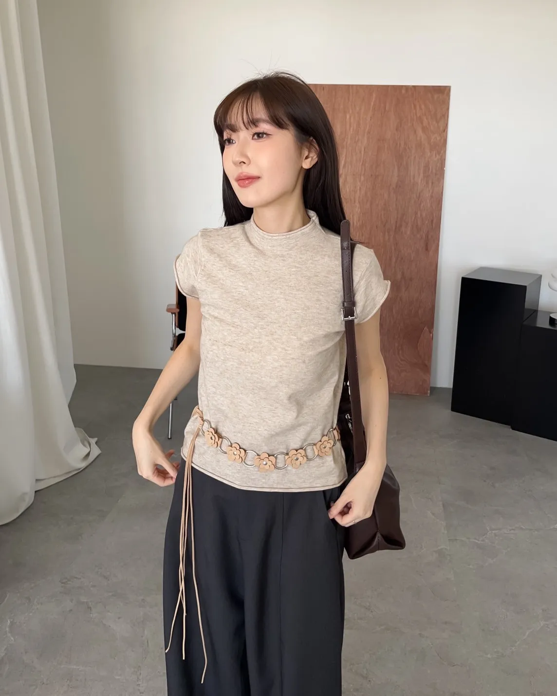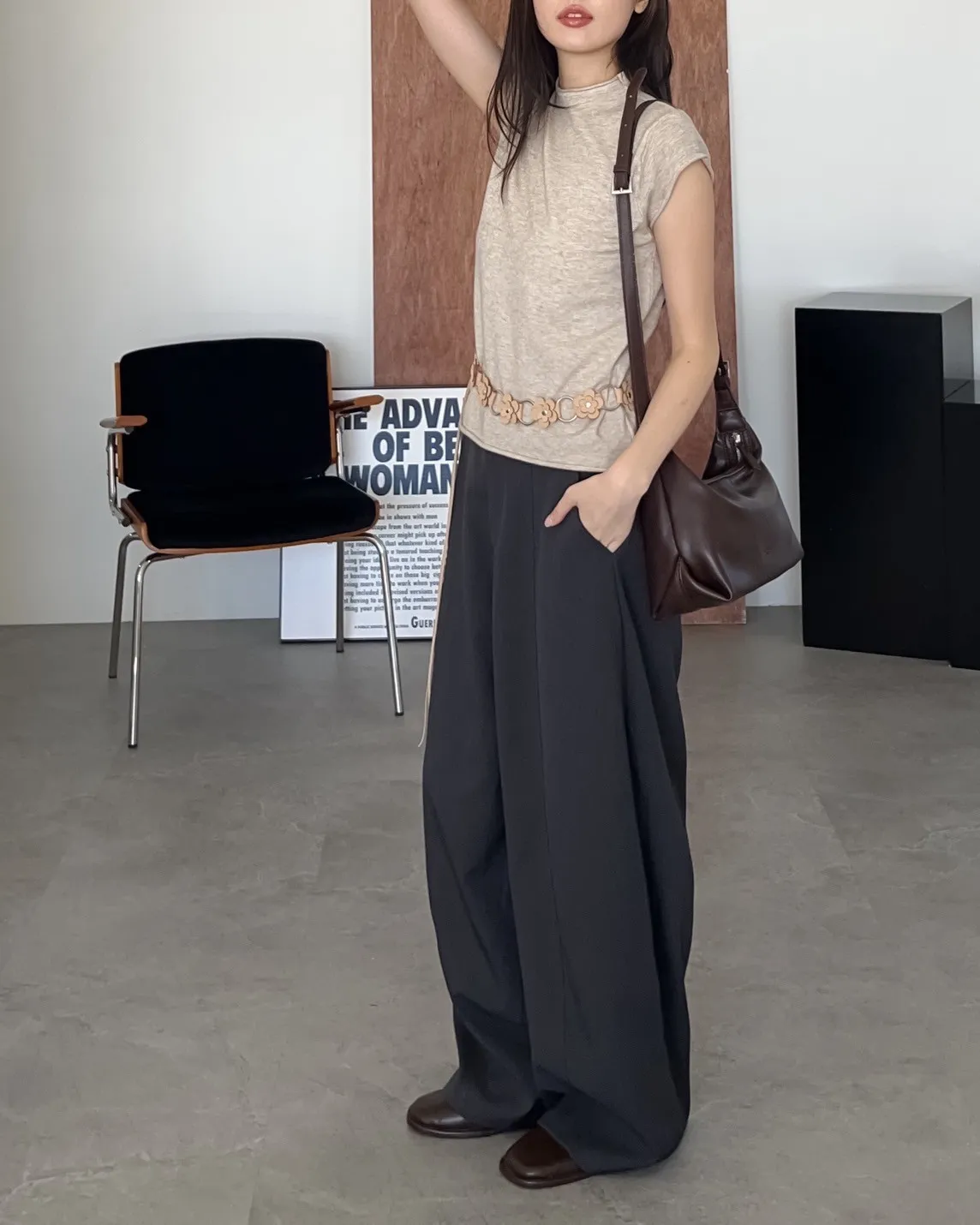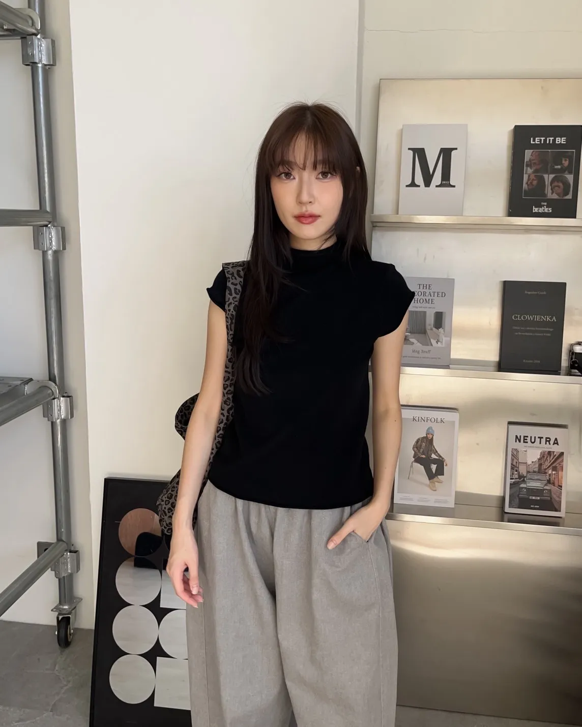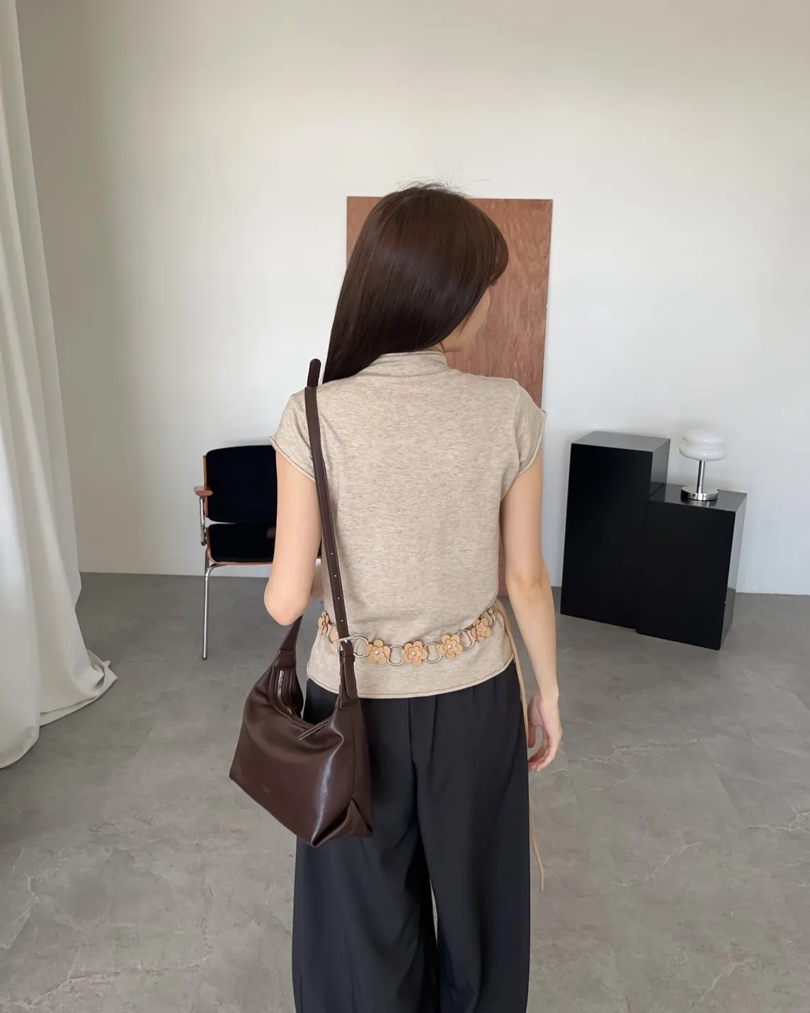 U0073知性美捲邊小立領針織上衣(杏/咖啡/紅/深灰/黑)