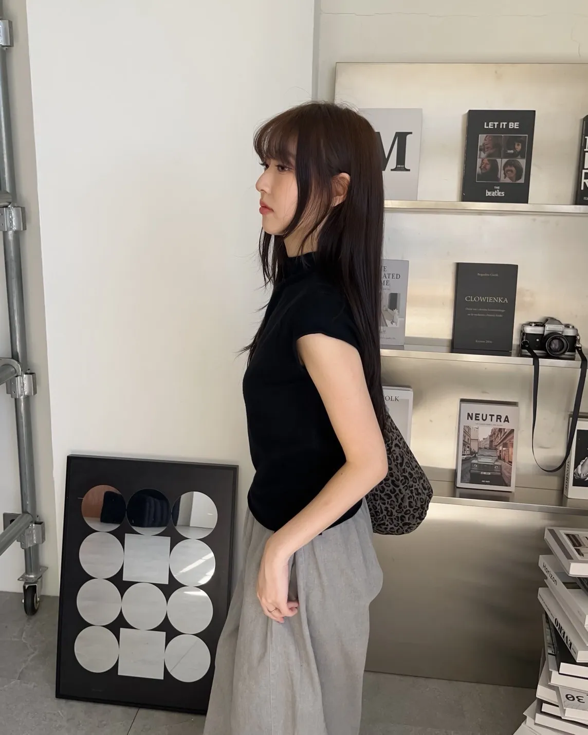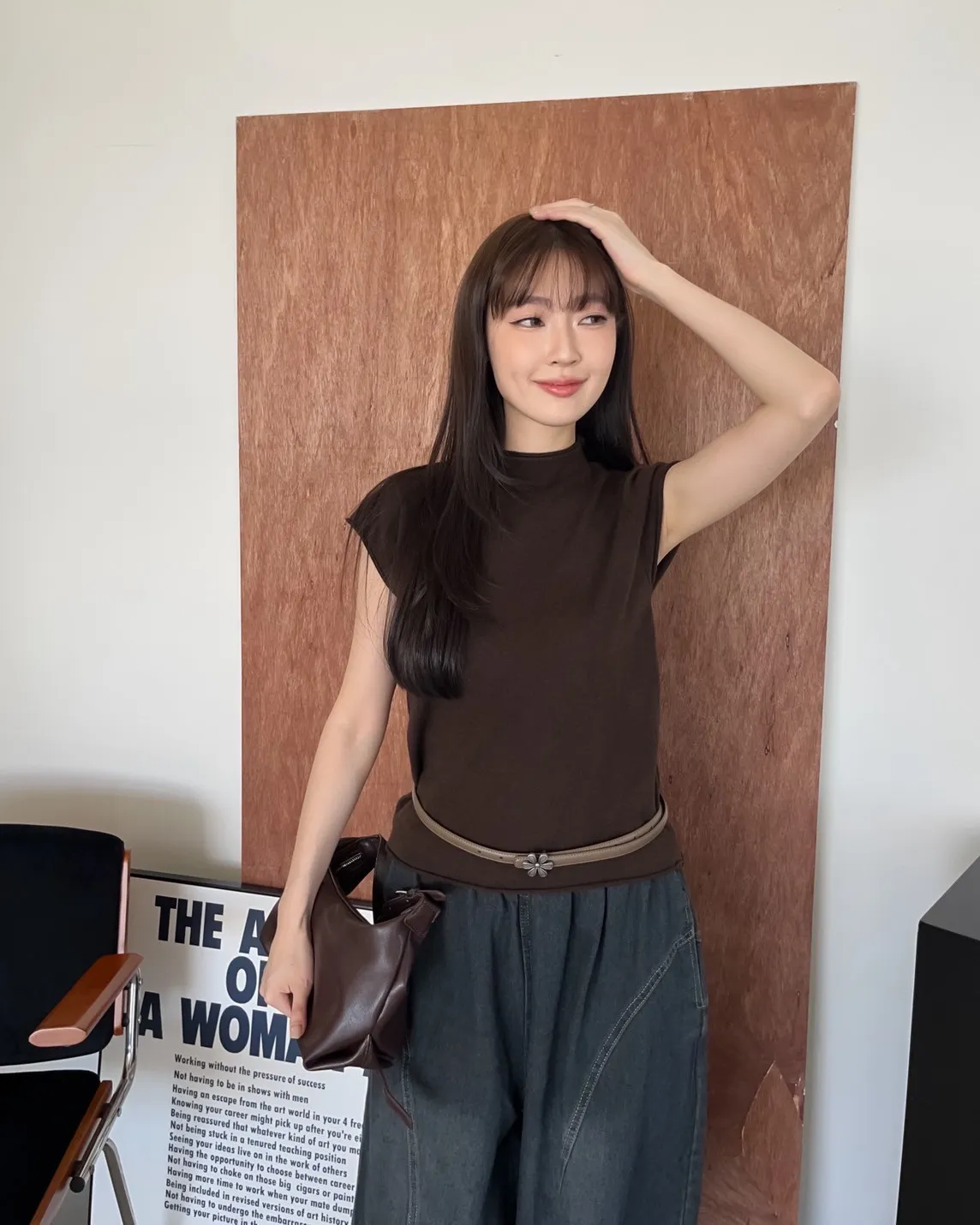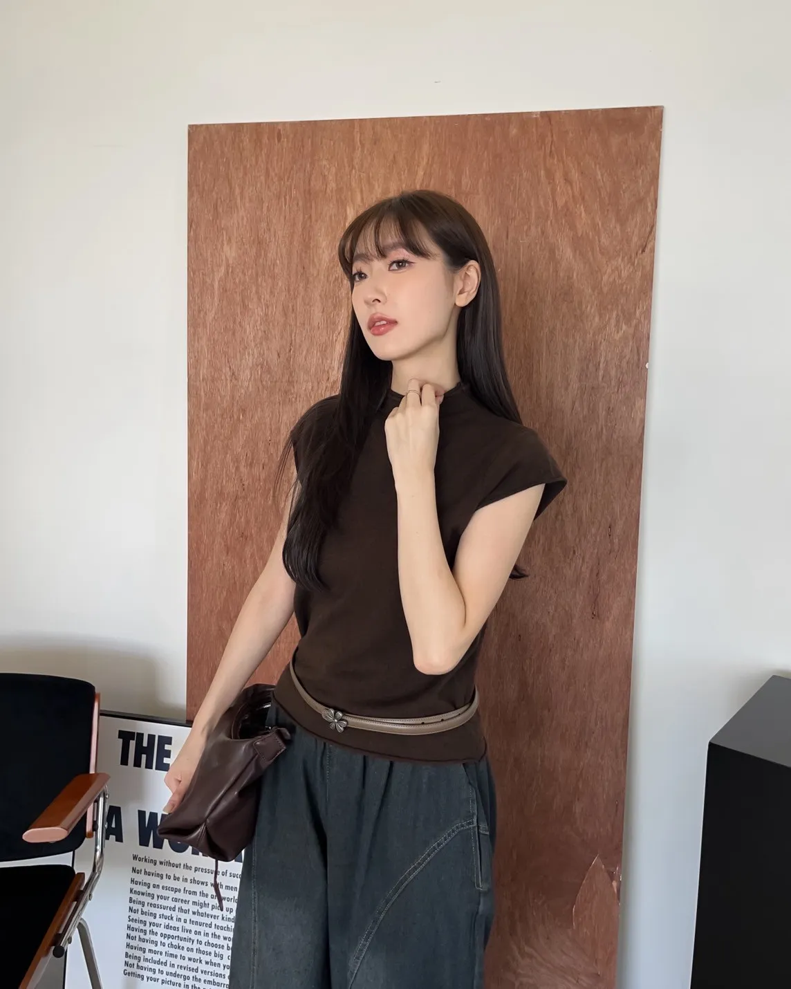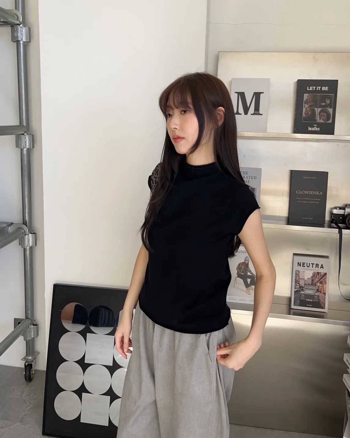 U0073知性美捲邊小立領針織上衣(杏/咖啡/紅/深灰/黑)