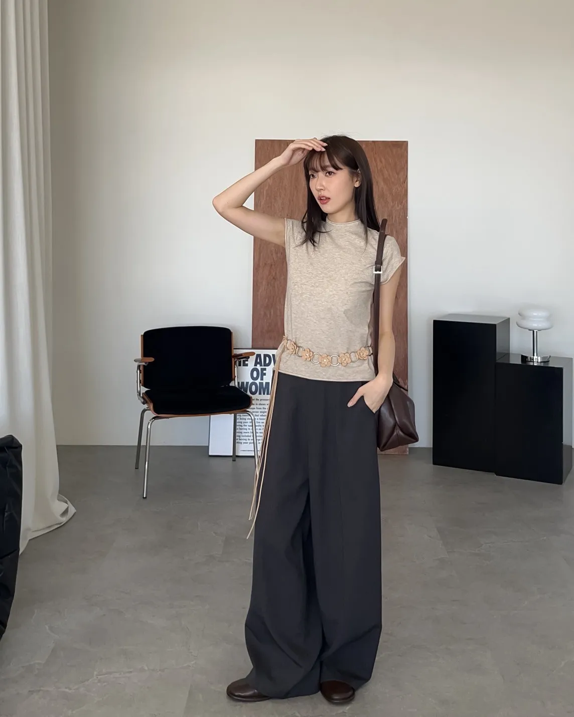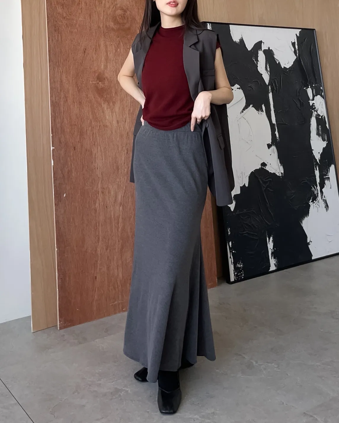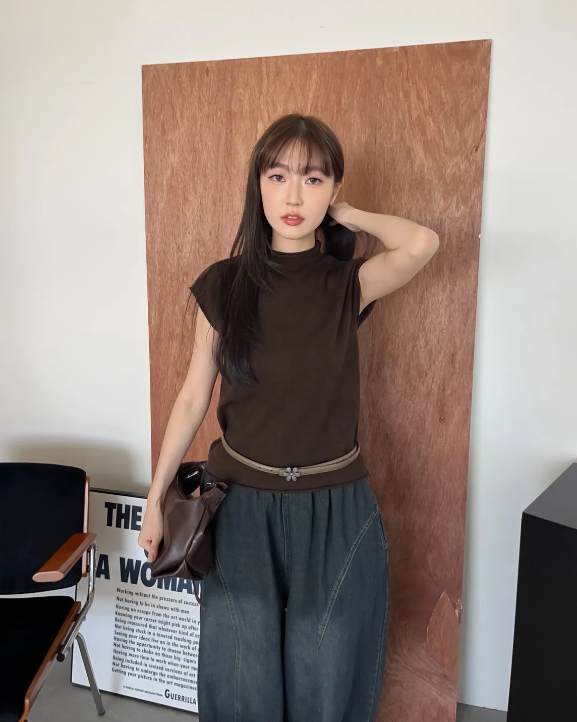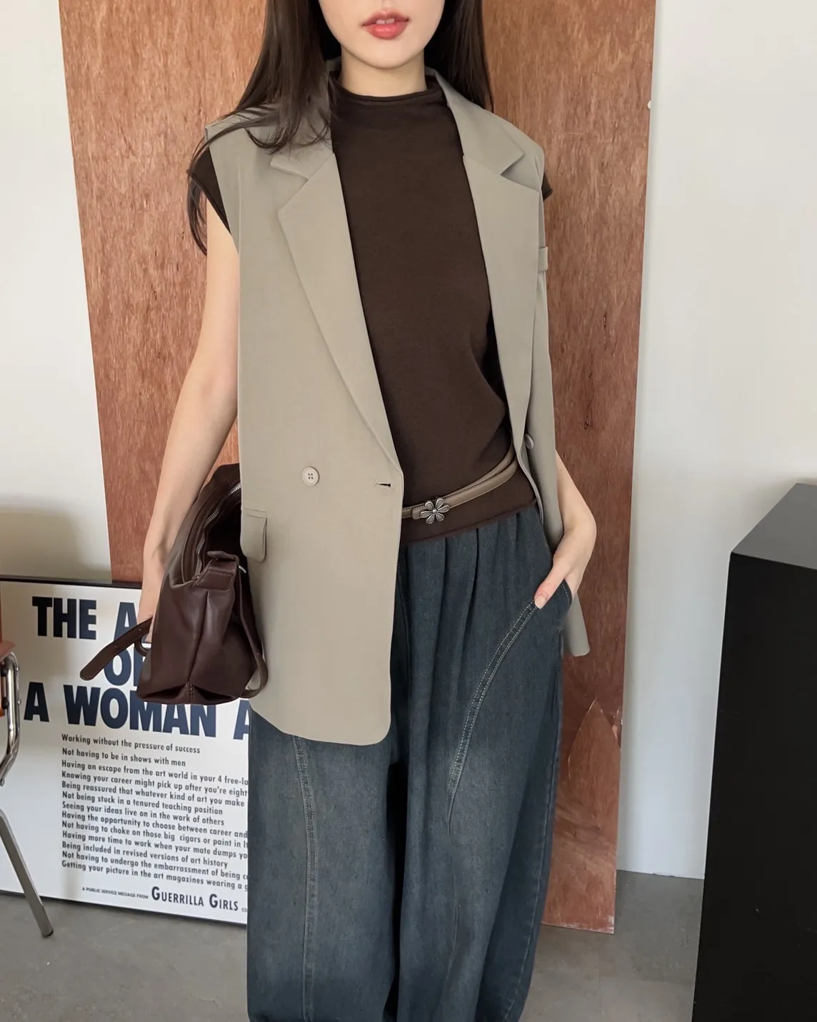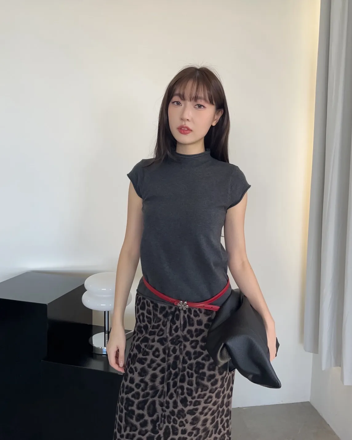 U0073知性美捲邊小立領針織上衣(杏/咖啡/紅/深灰/黑)