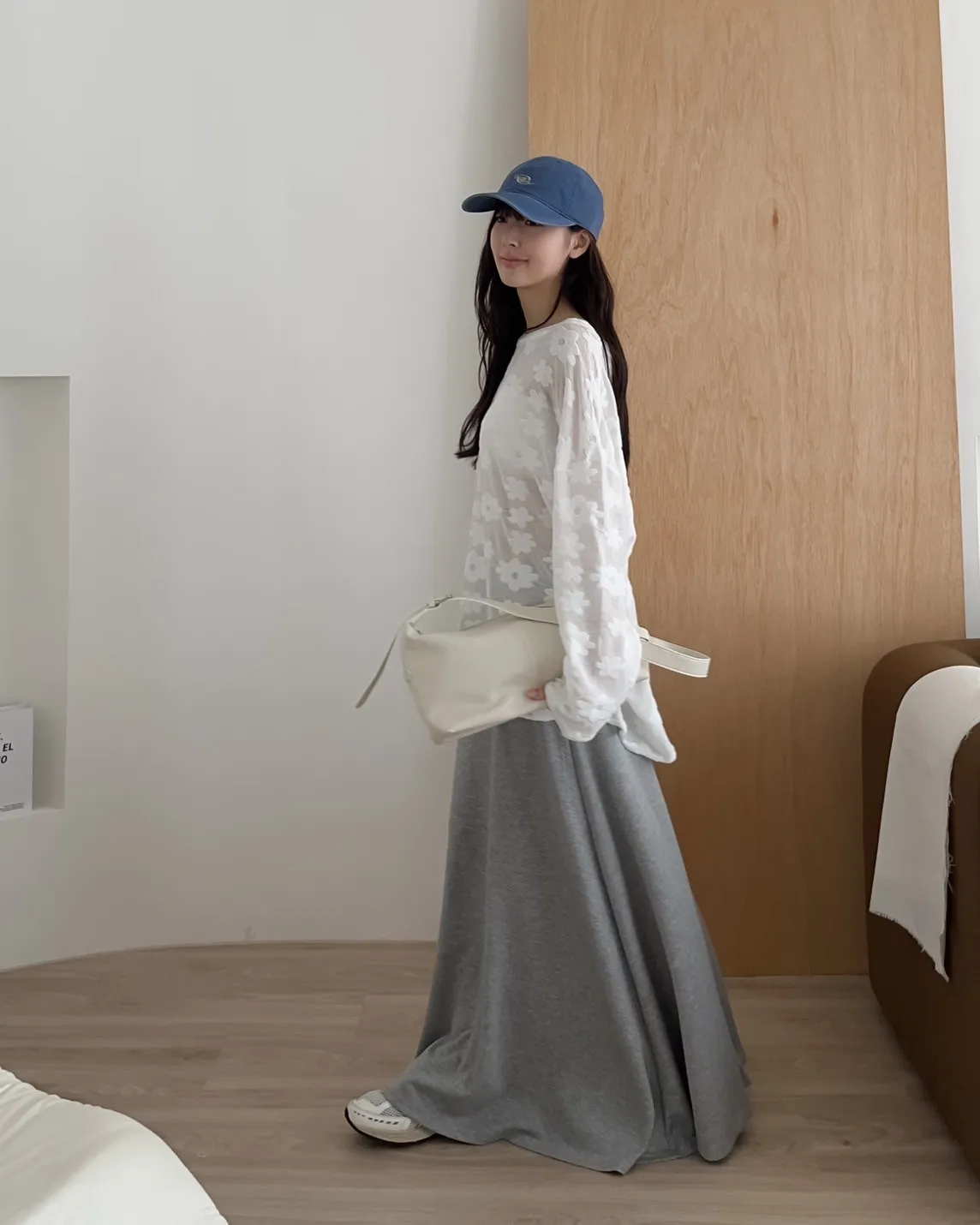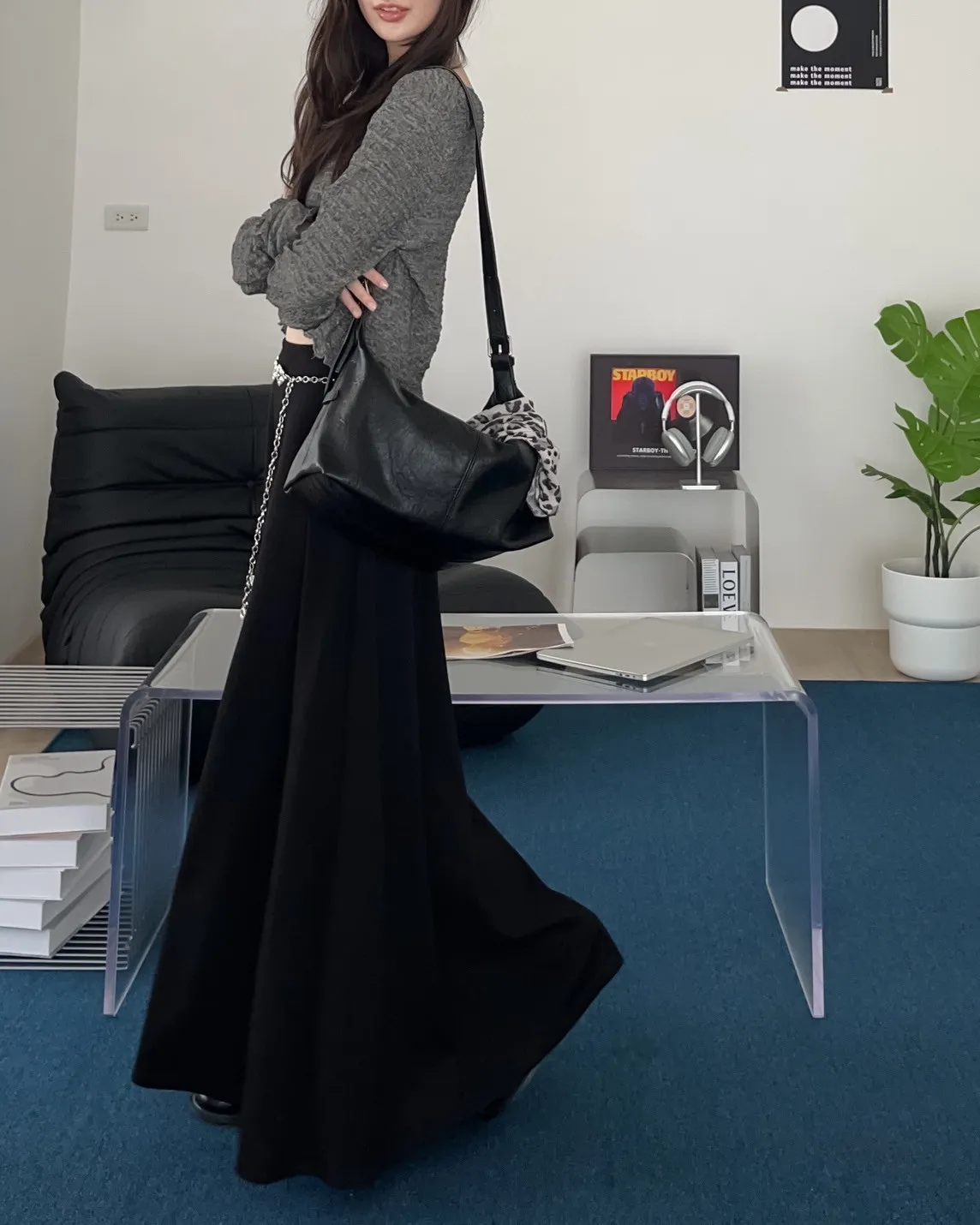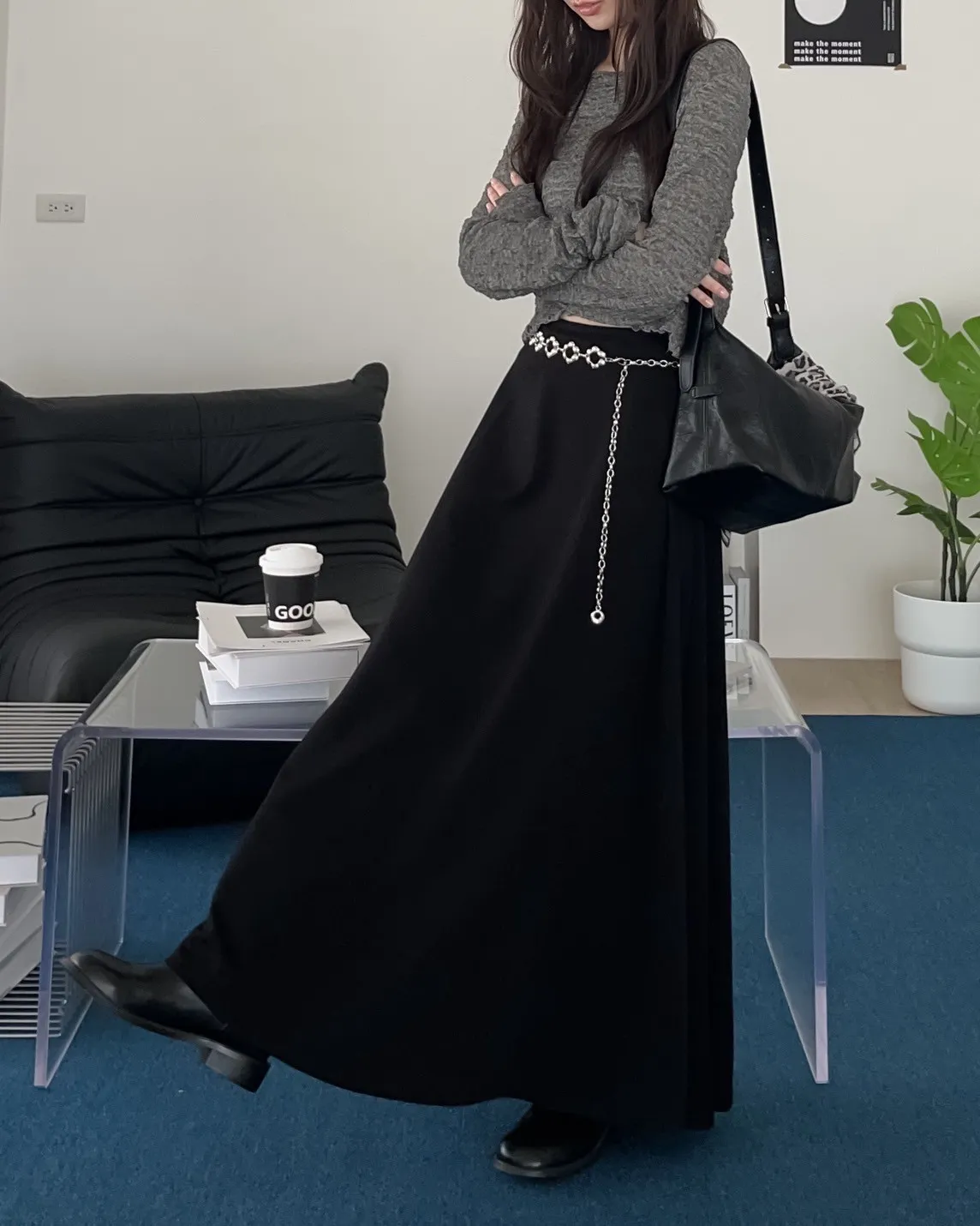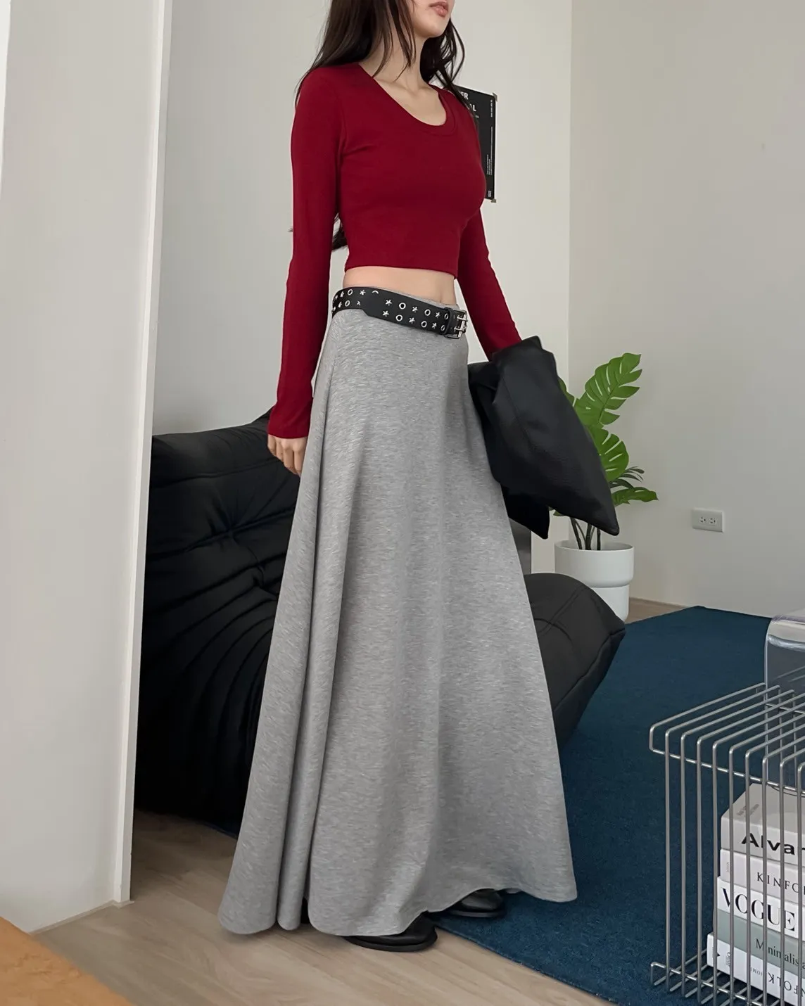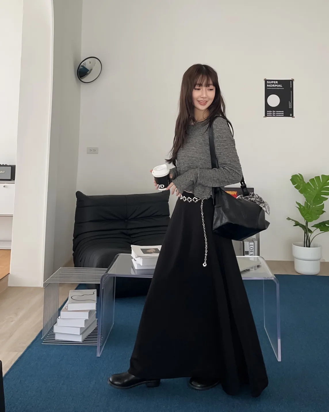 U0015超級彈~全長感傘襬棉裙(灰/黑)