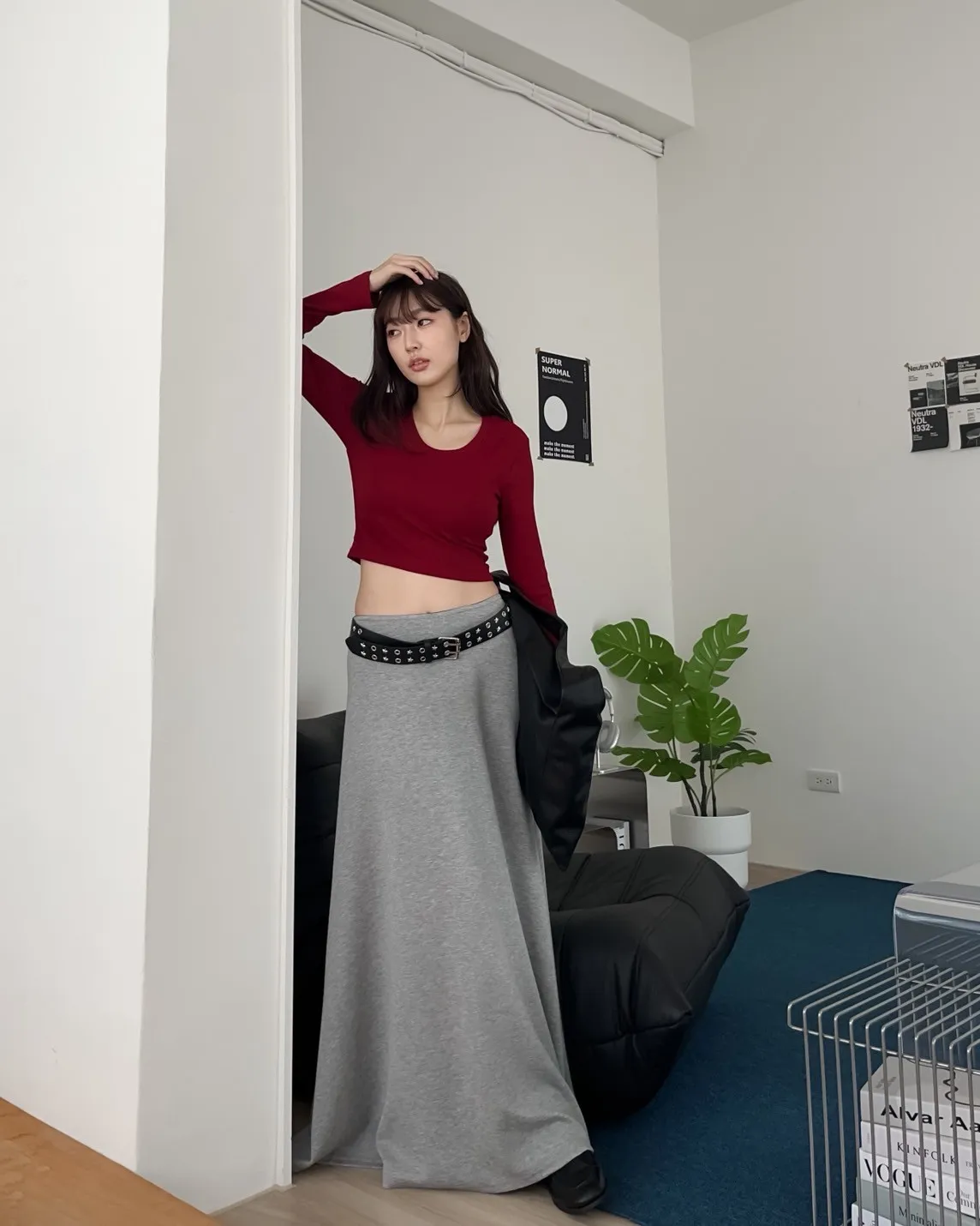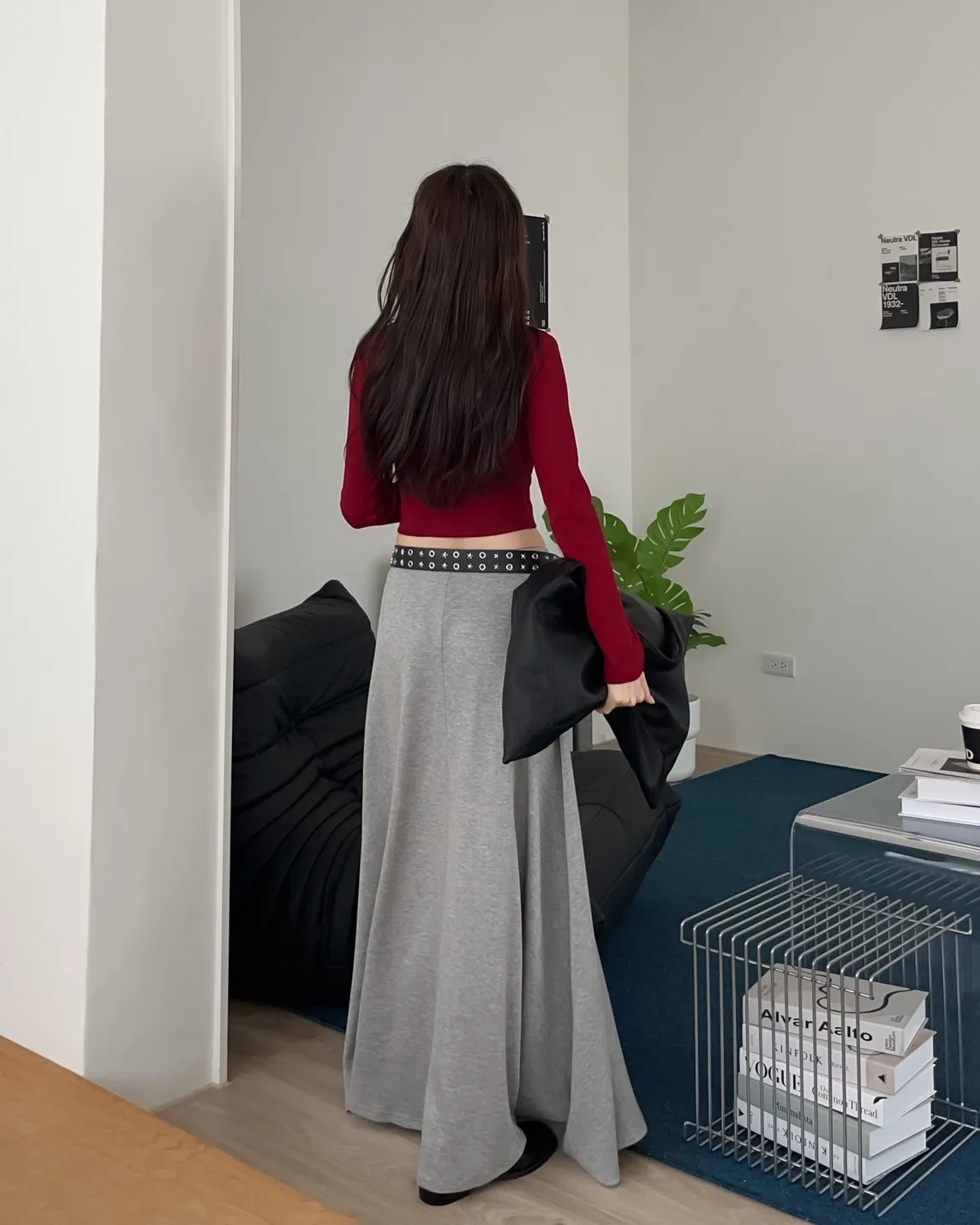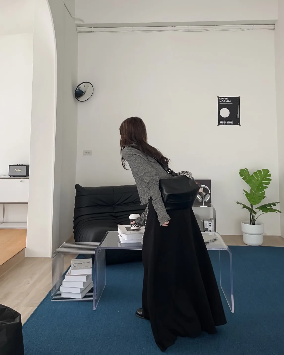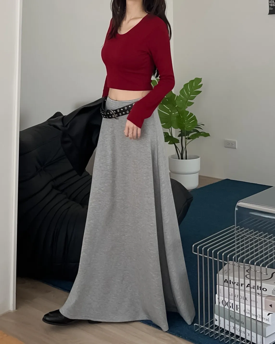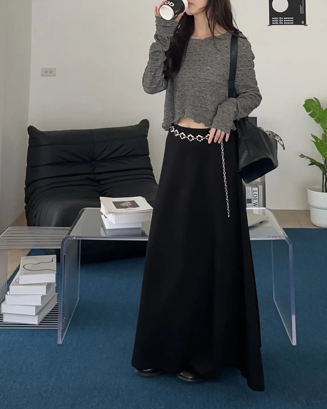 U0015超級彈~全長感傘襬棉裙(灰/黑)