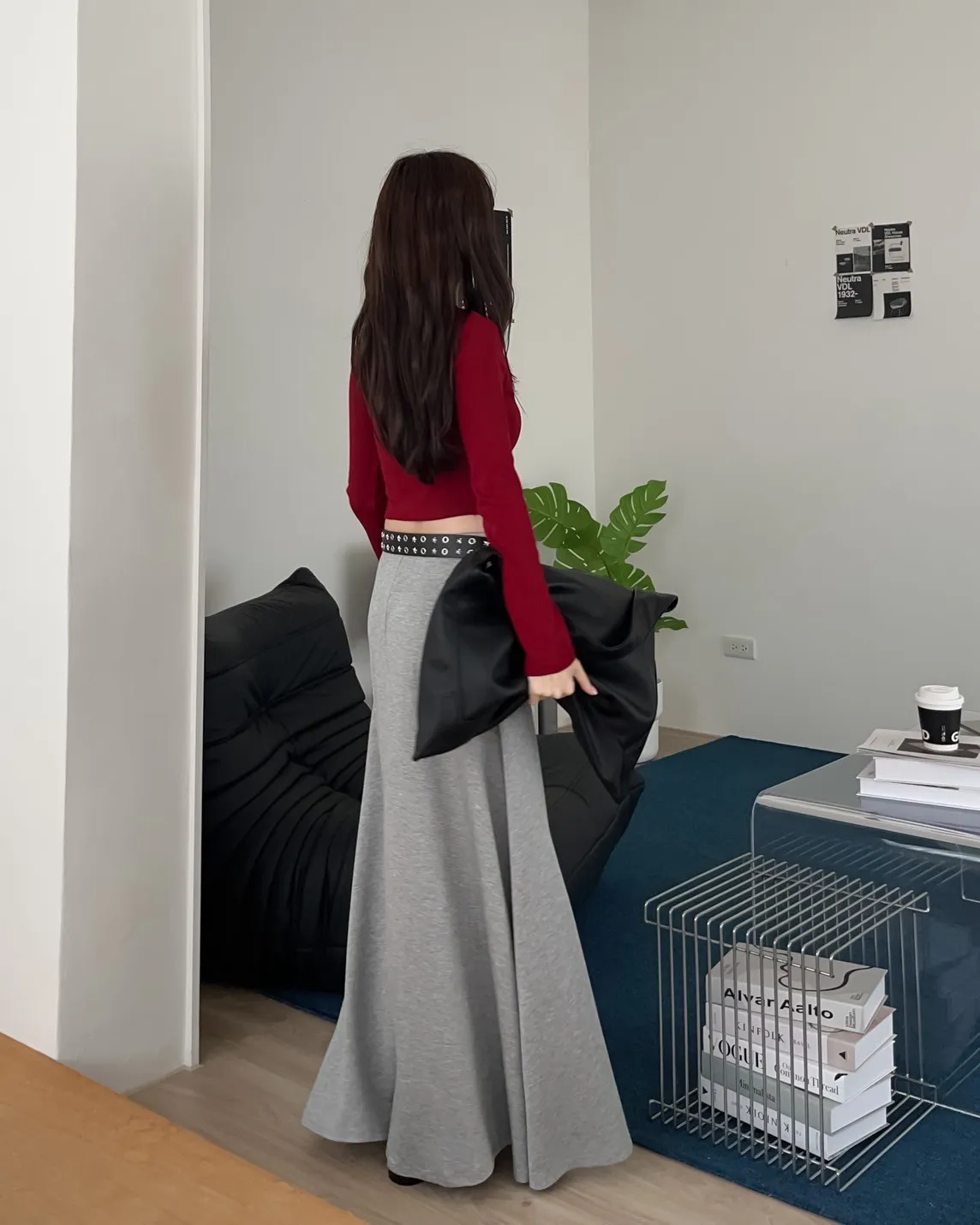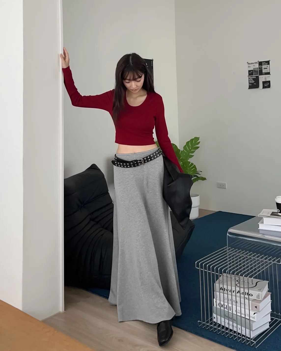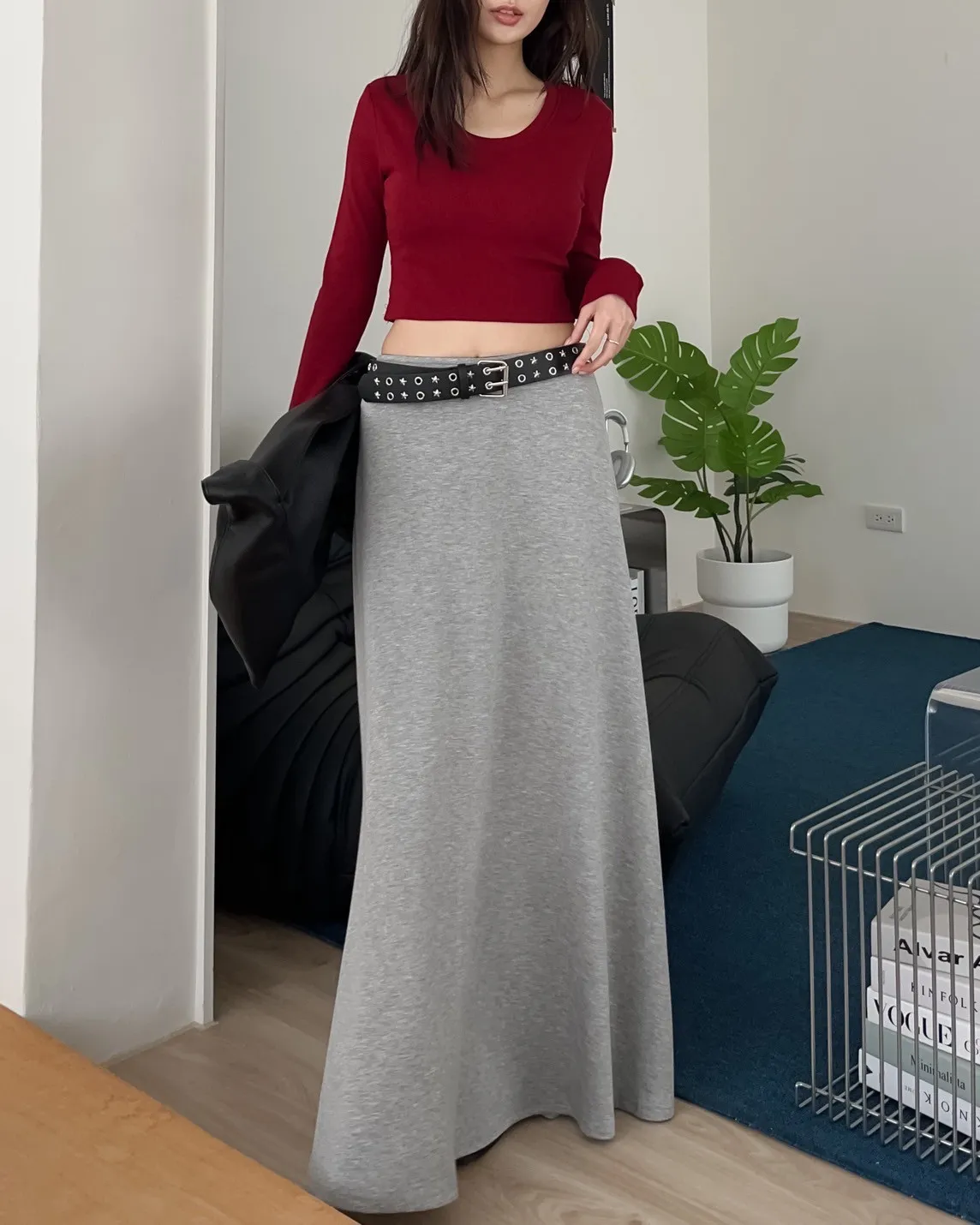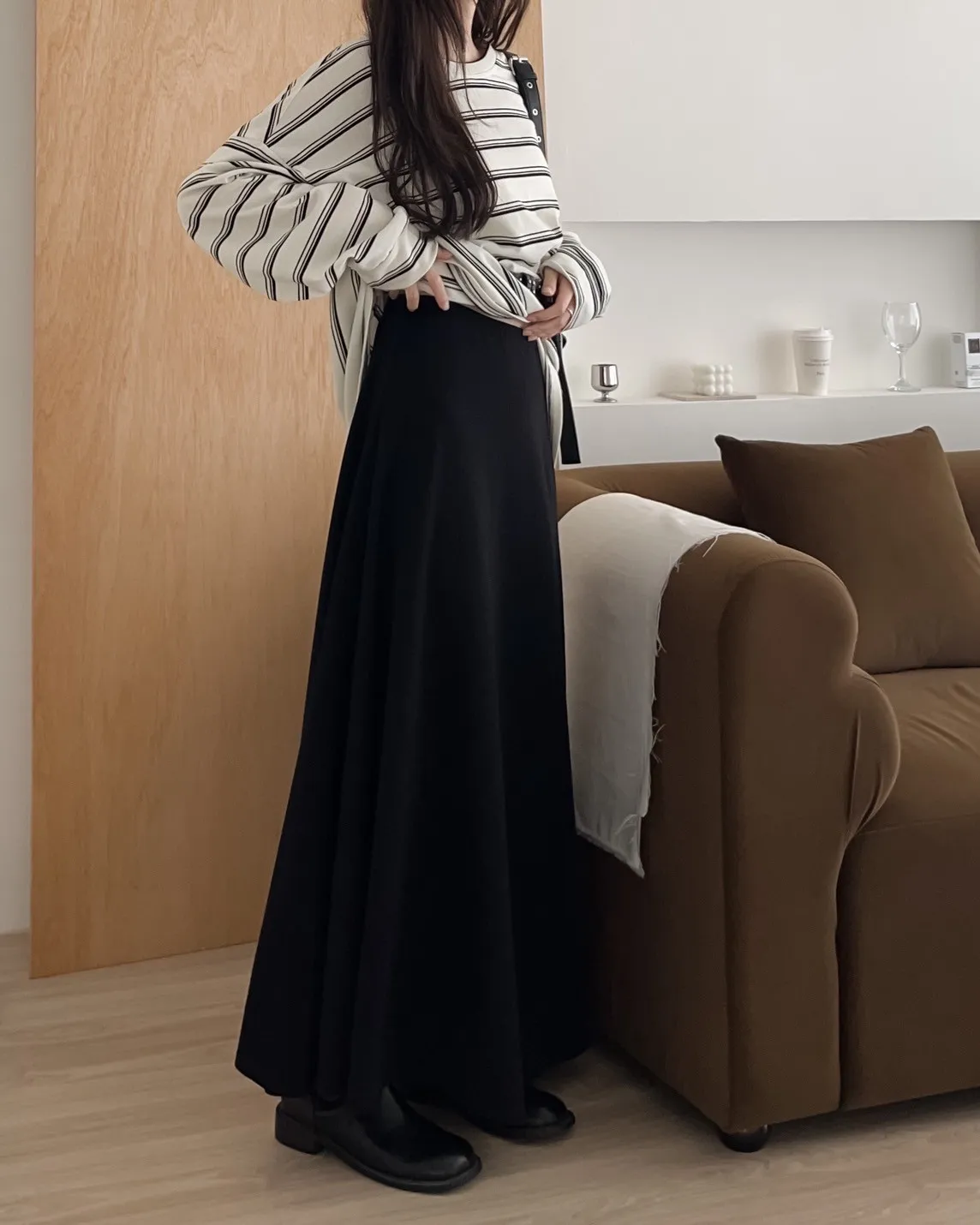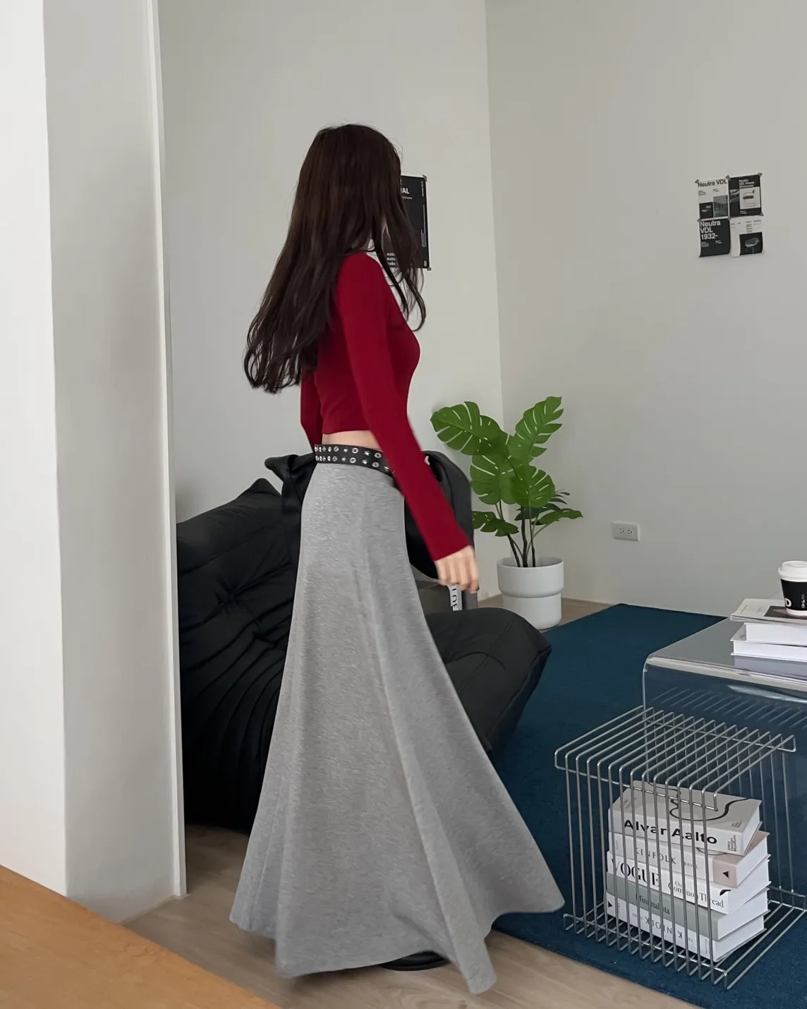 U0015超級彈~全長感傘襬棉裙(灰/黑)