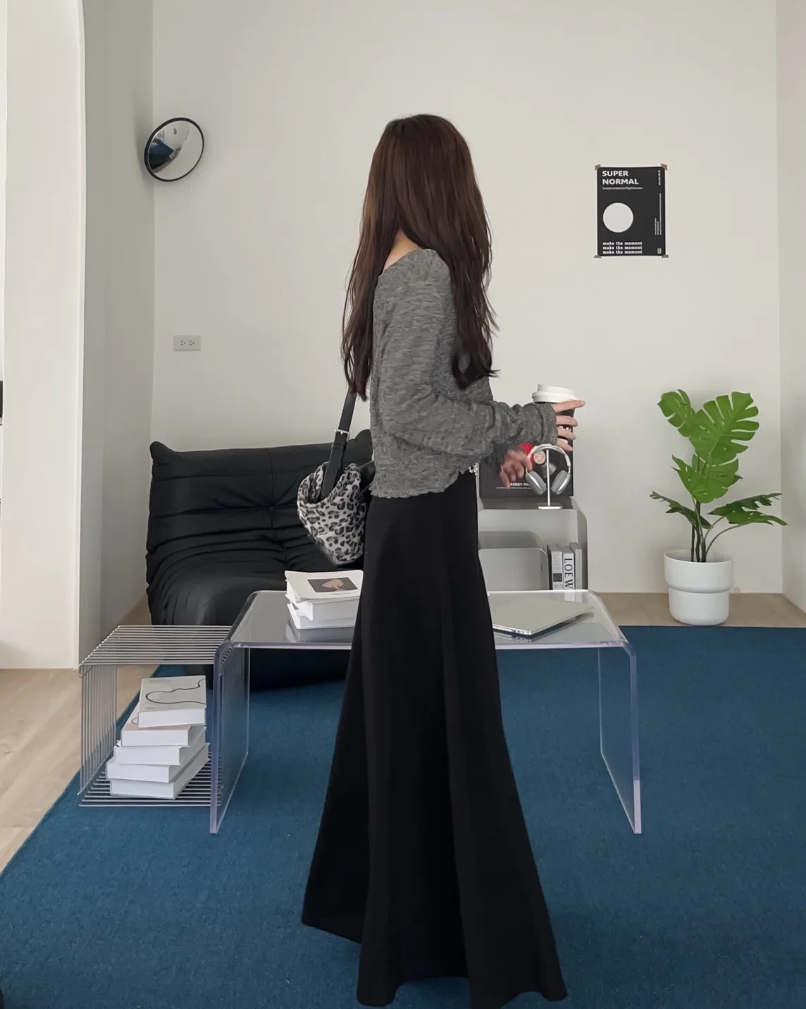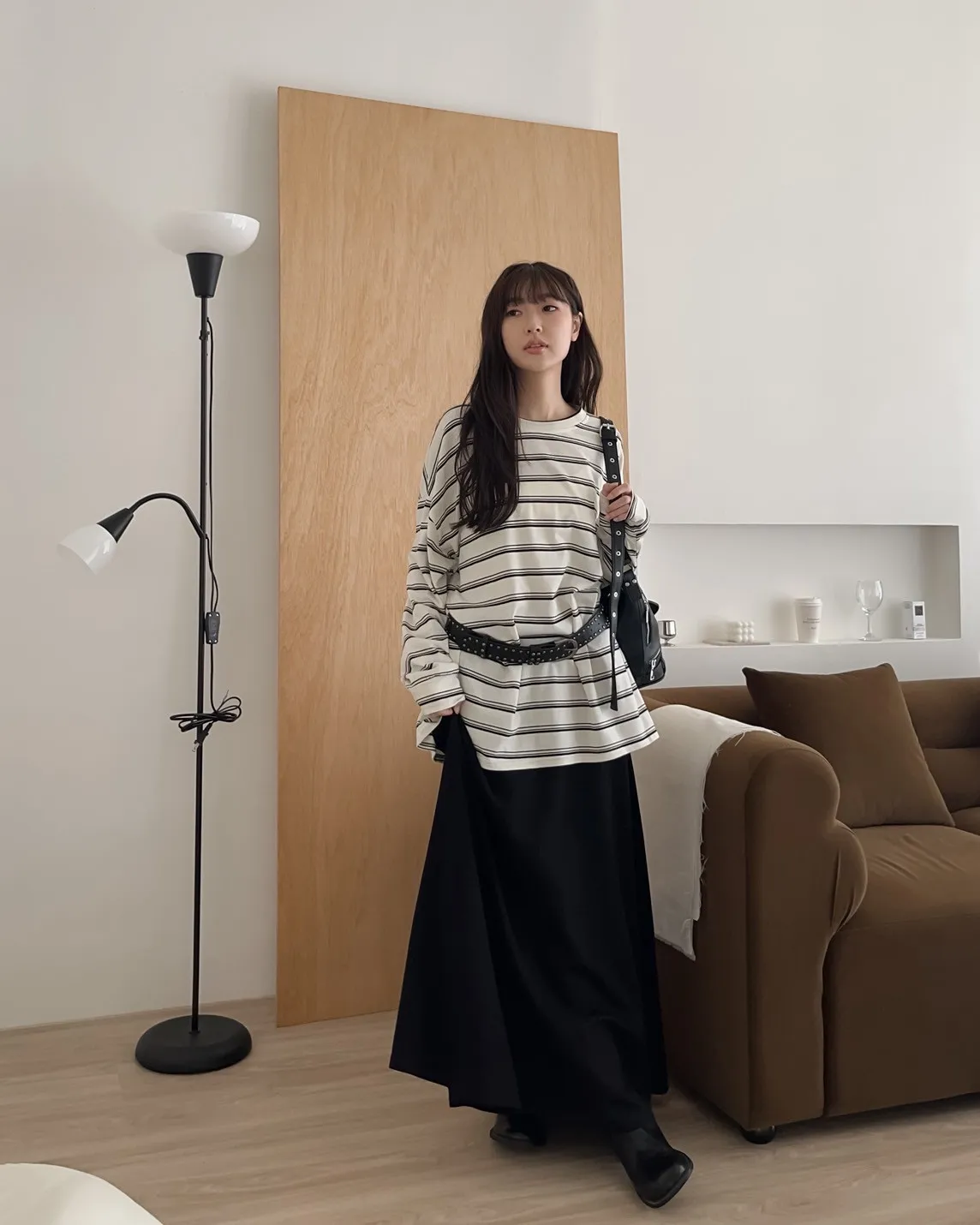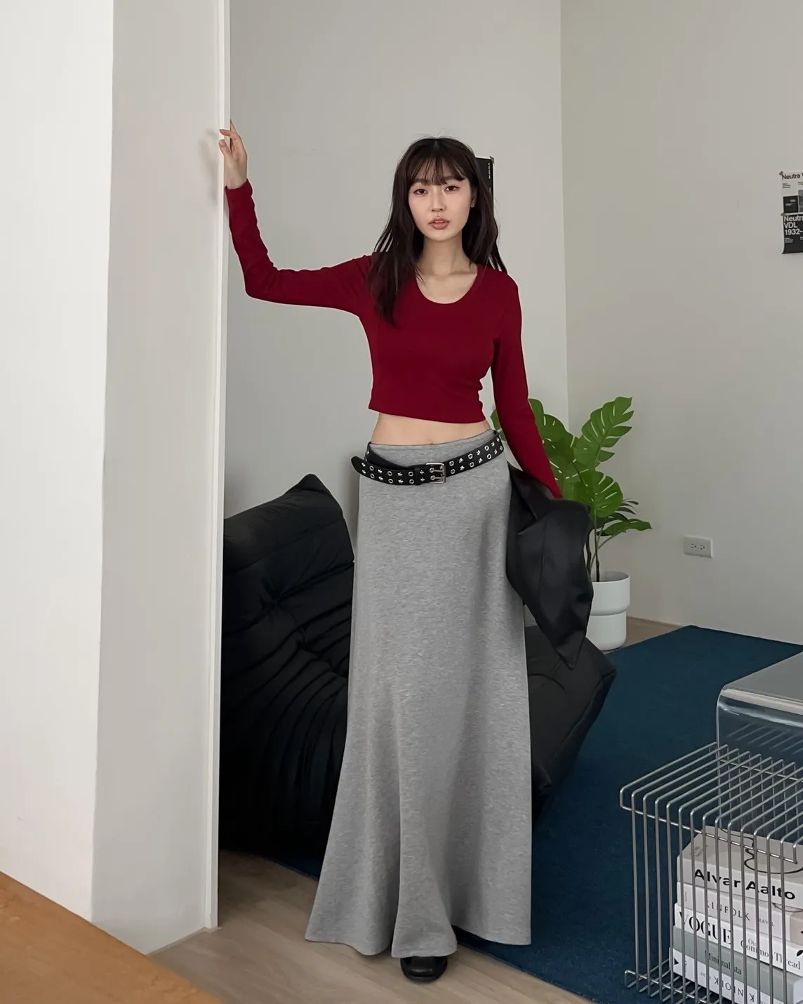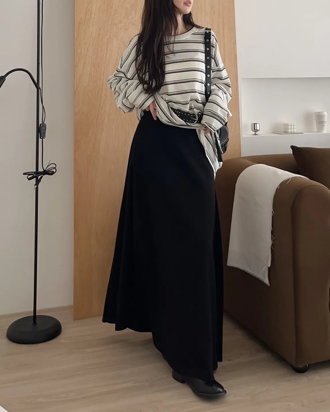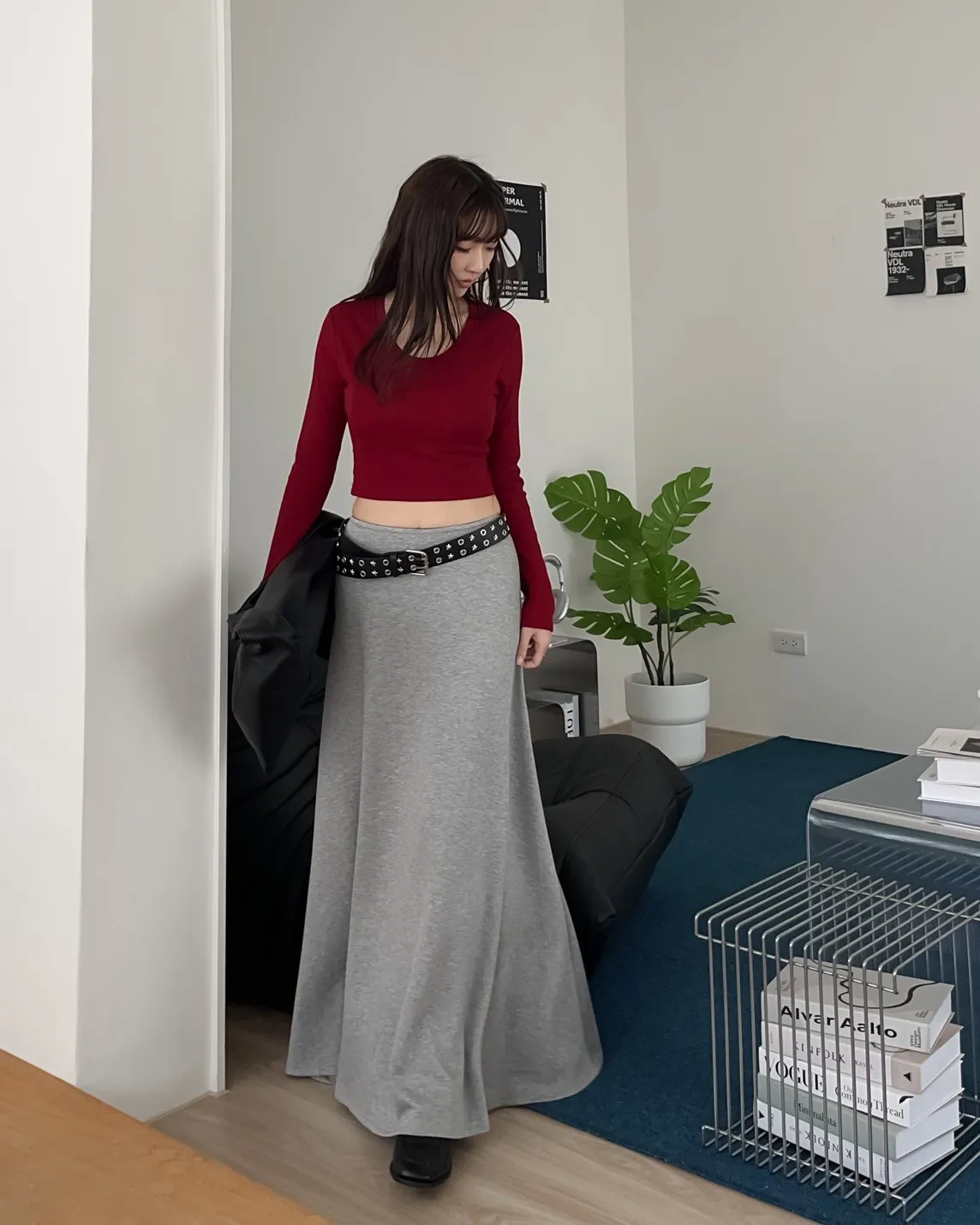 U0015超級彈~全長感傘襬棉裙(灰/黑)