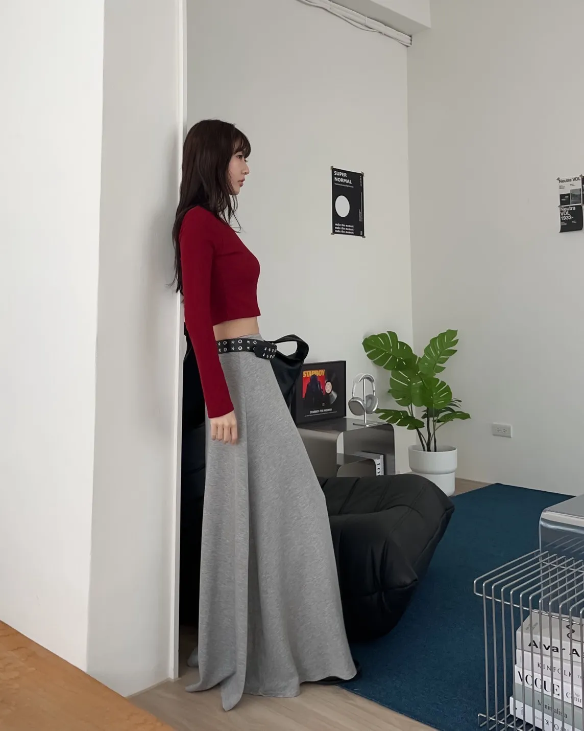 全鬆緊 建議尺寸S-XL 無口袋 無內裡 鬆緊帶很細 可以穿低腰 棉料超級舒服很彈~ 傘擺版型 全長感