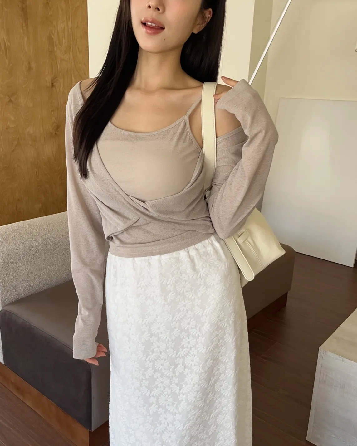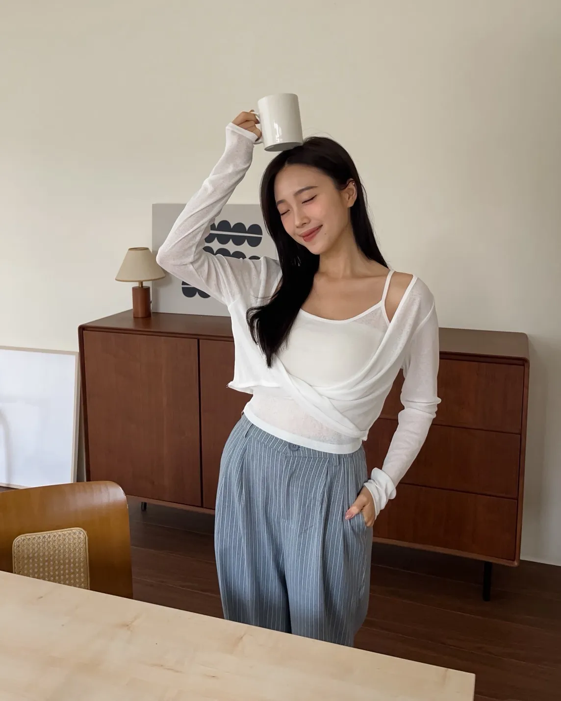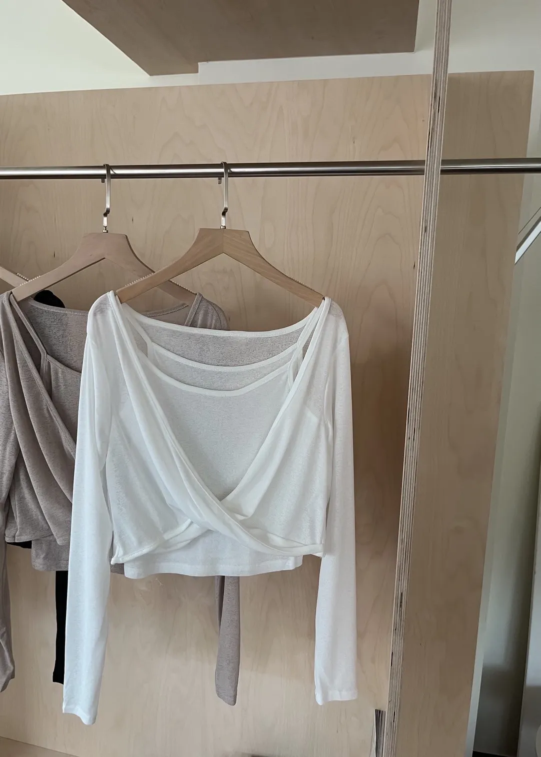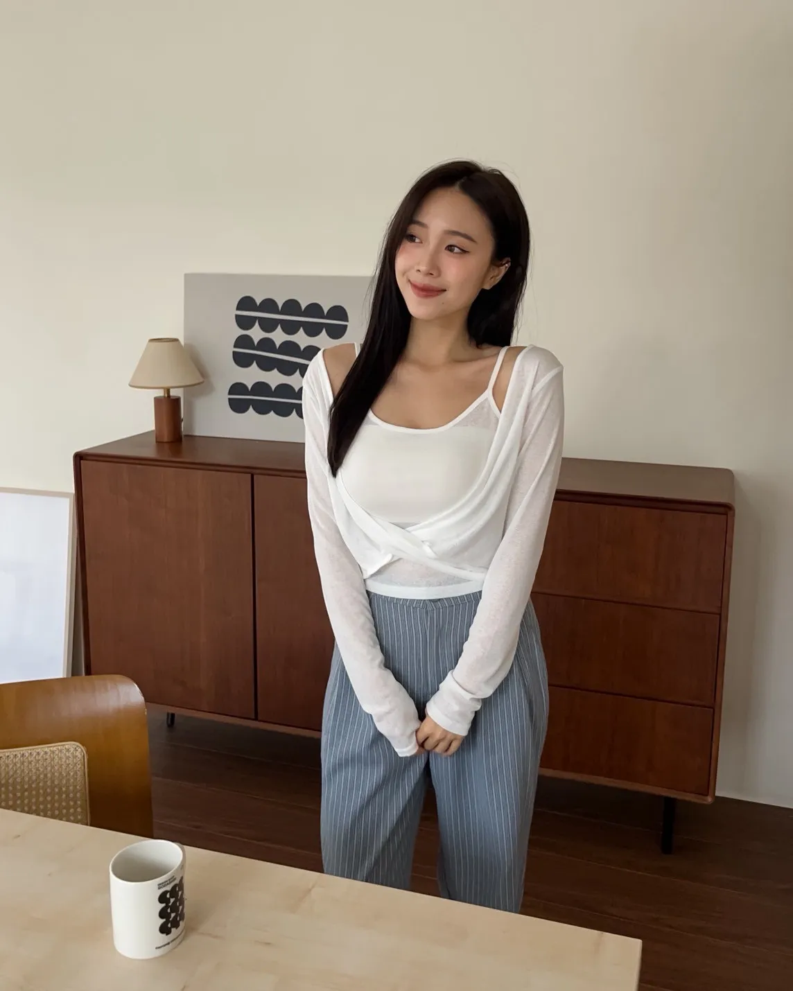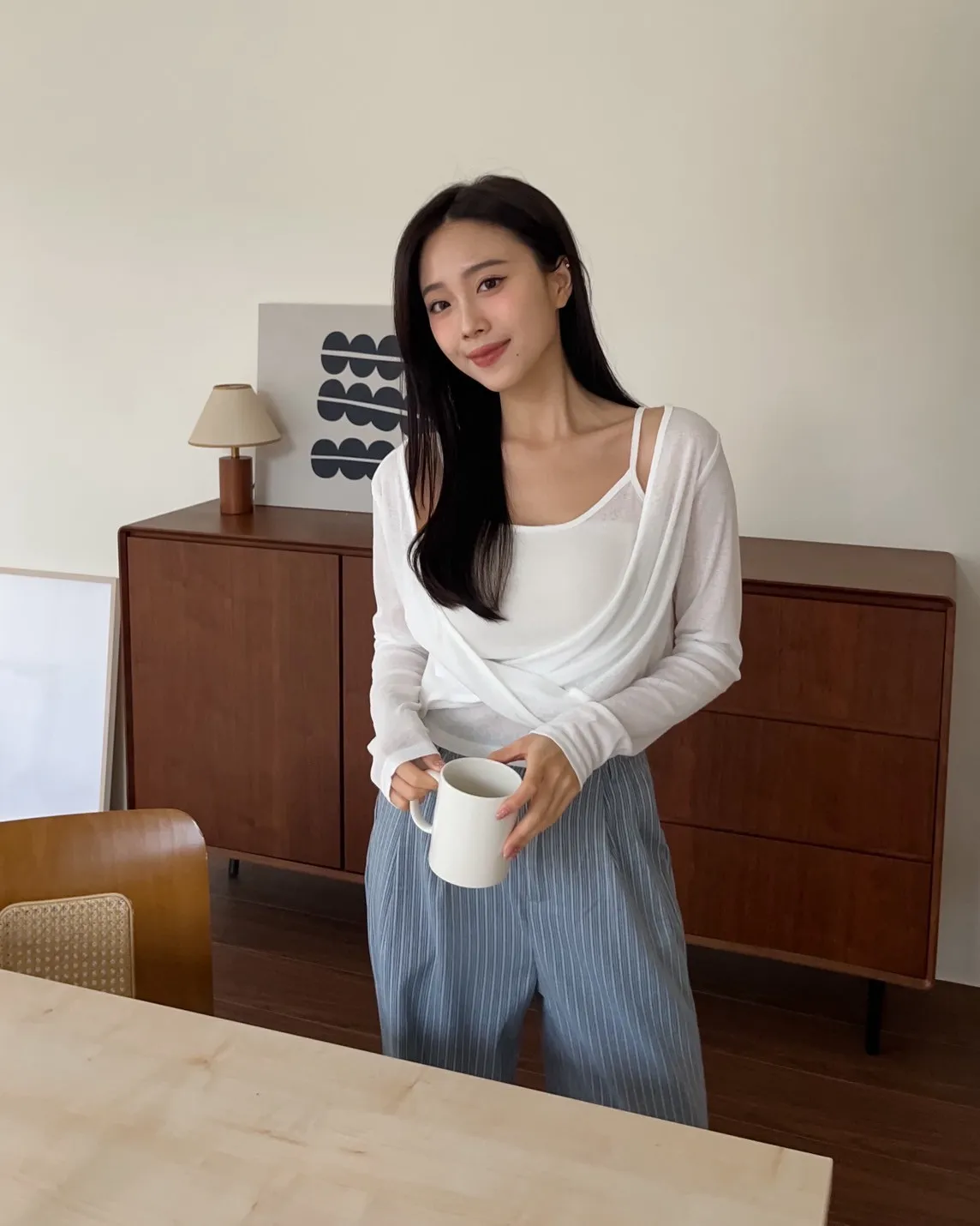 T0039(SET)簡約透紗背心+交叉防曬長袖(白/粉杏/黑)(售完不補)
