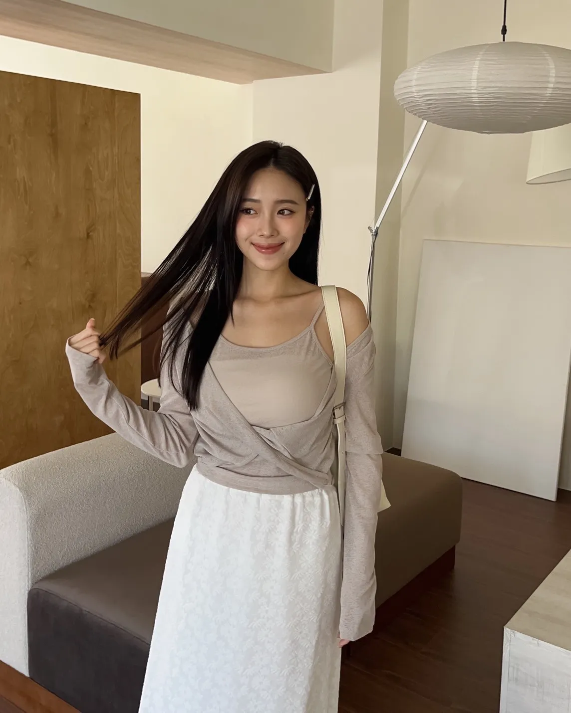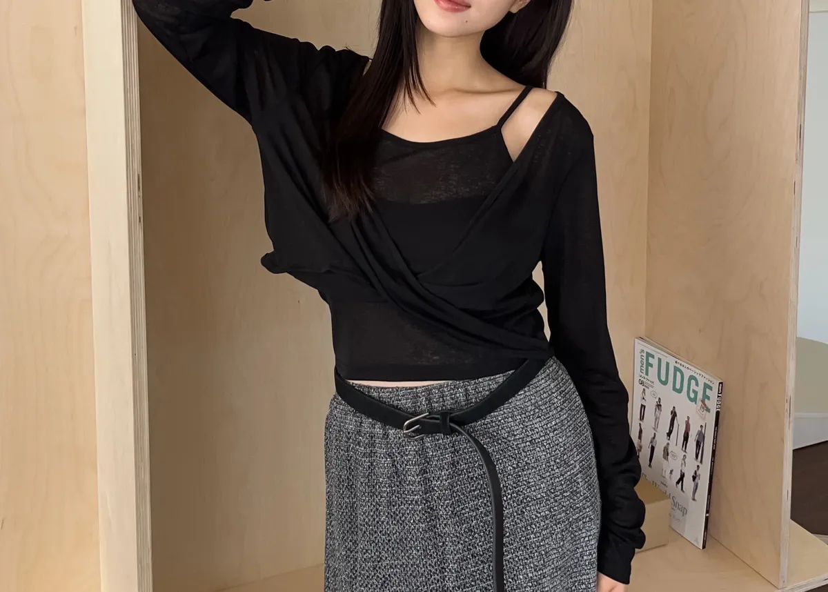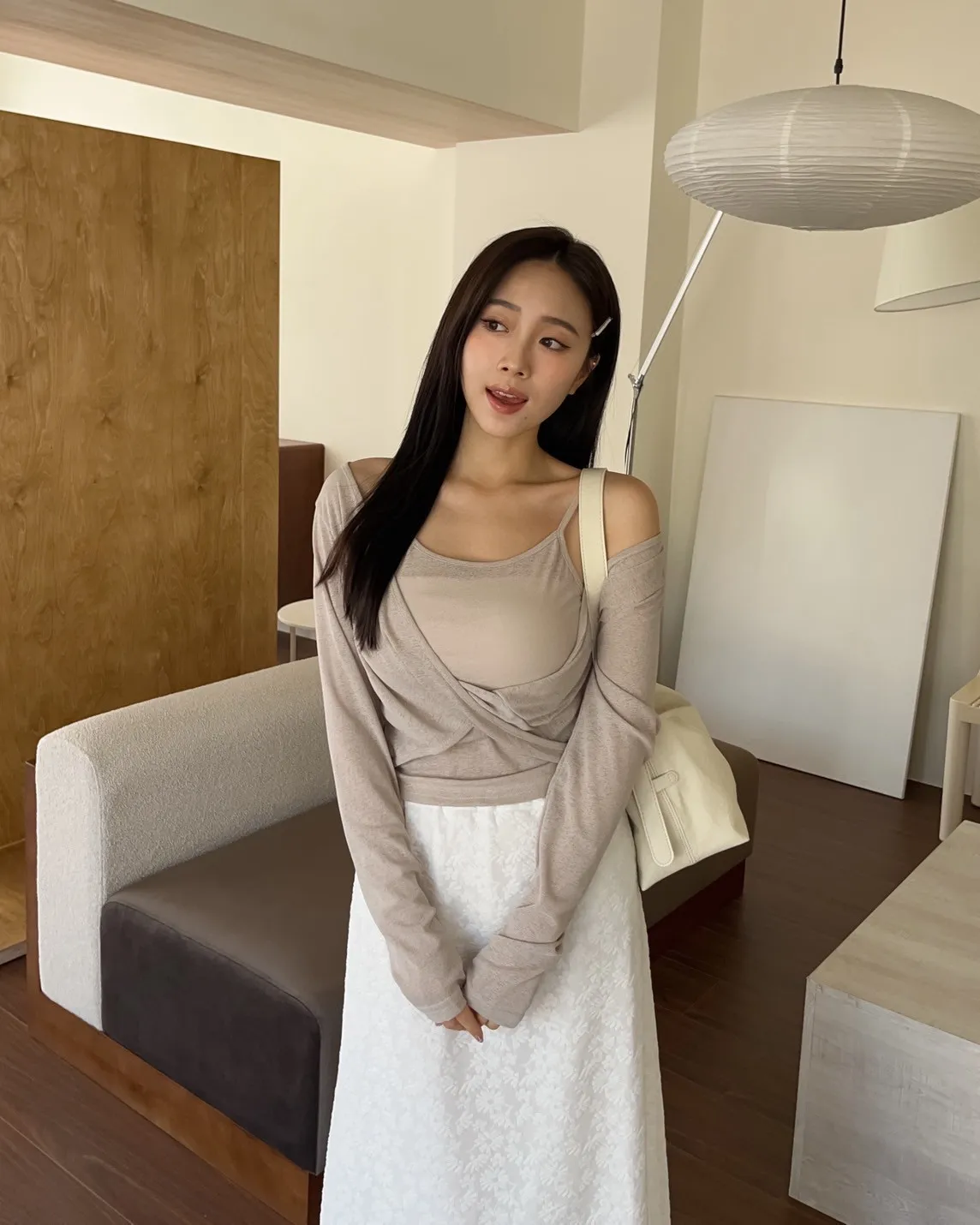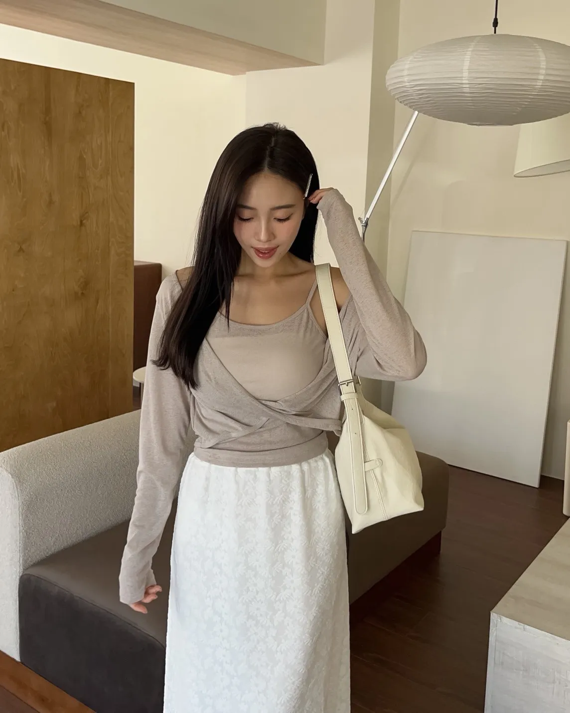 T0039(SET)簡約透紗背心+交叉防曬長袖(白/粉杏/黑)(售完不補)