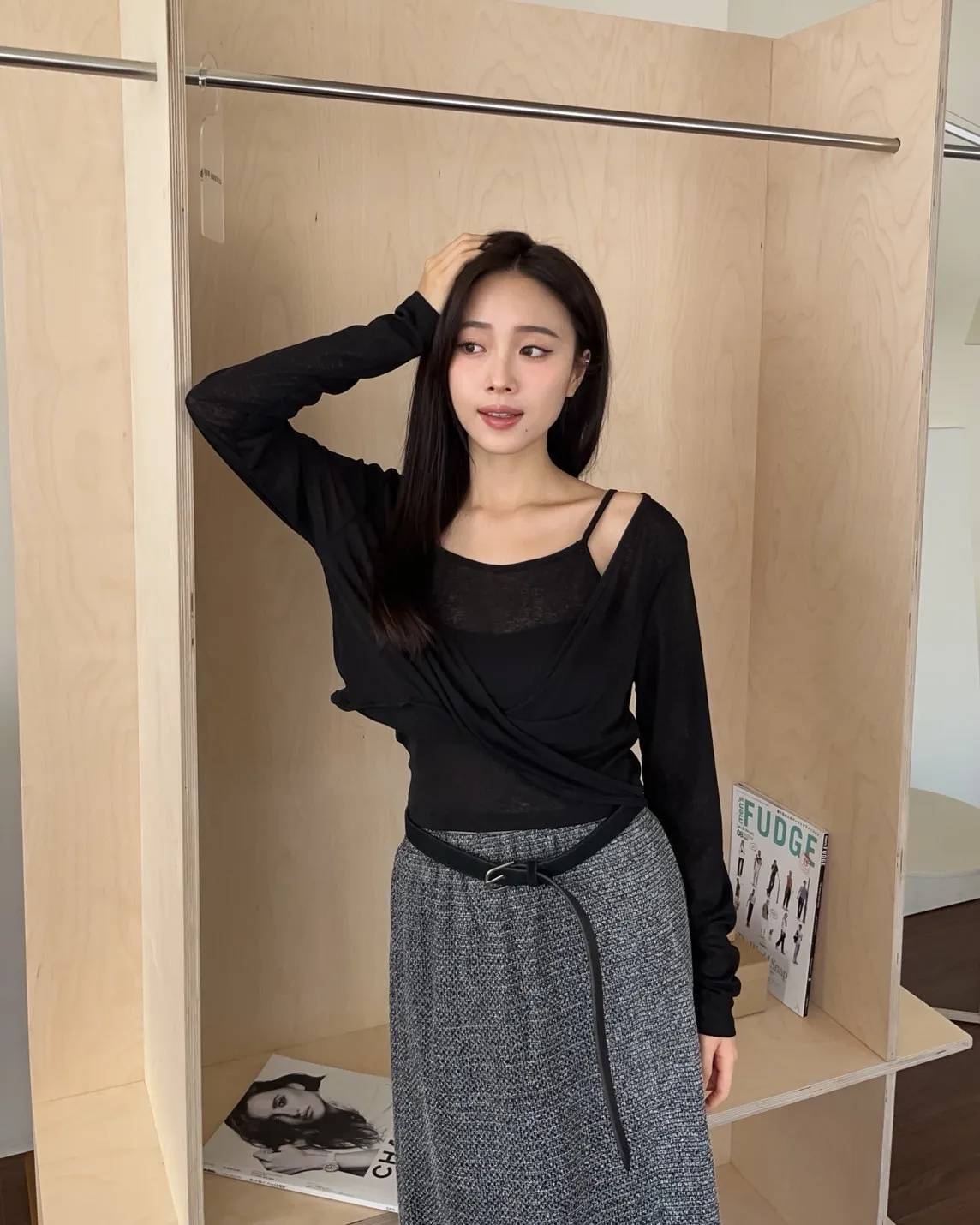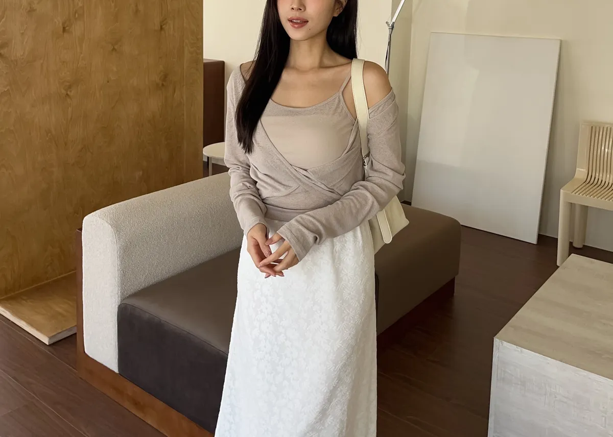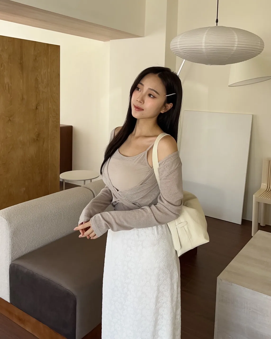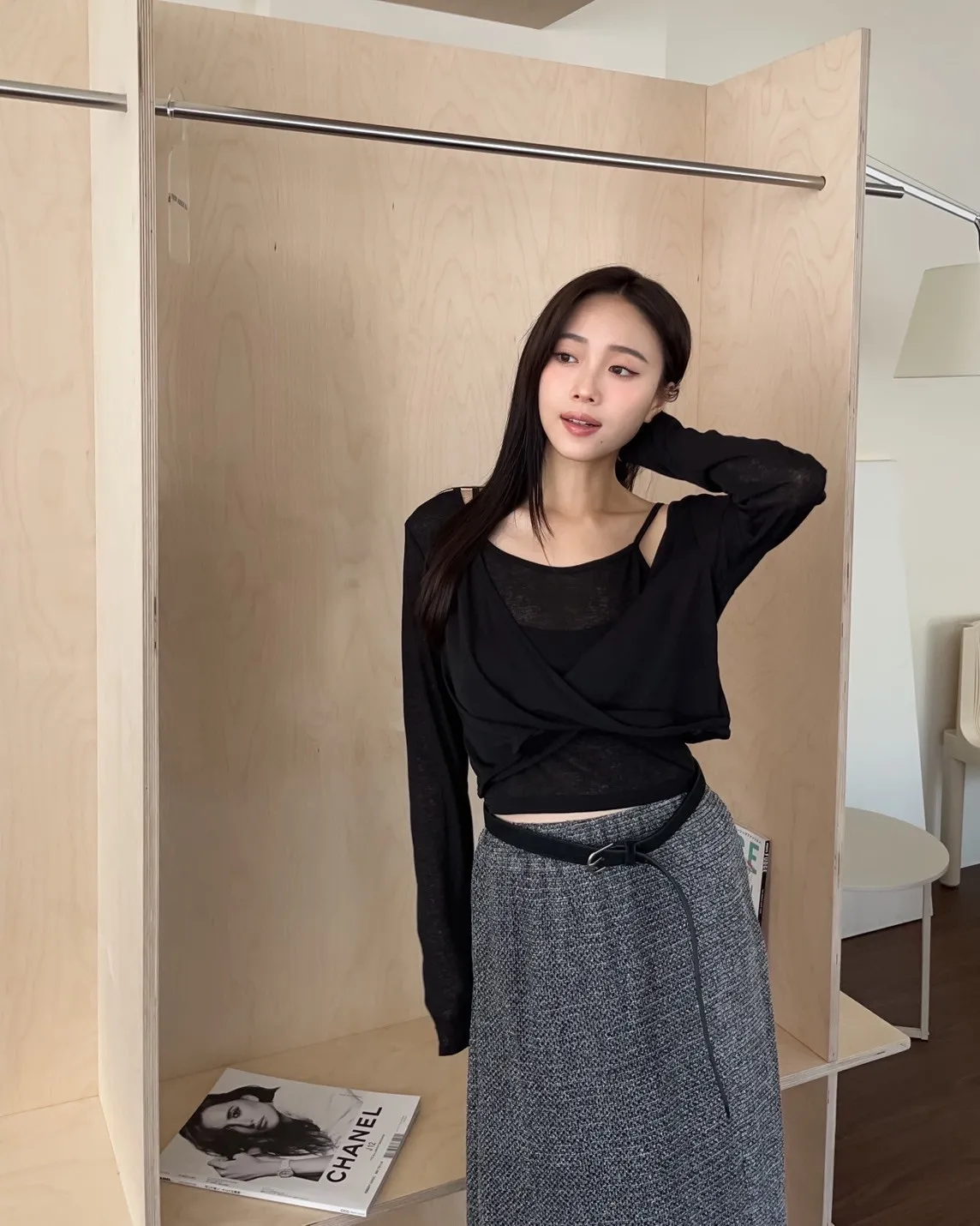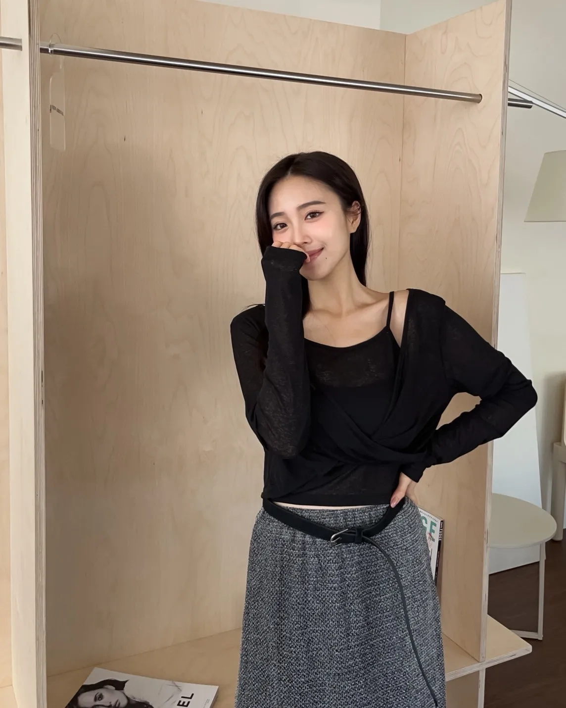 T0039(SET)簡約透紗背心+交叉防曬長袖(白/粉杏/黑)(售完不補)