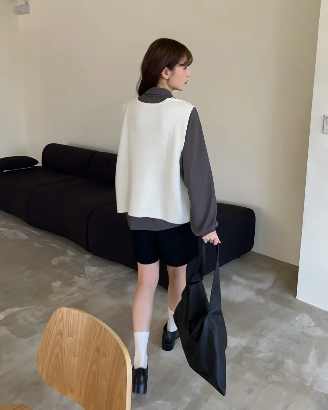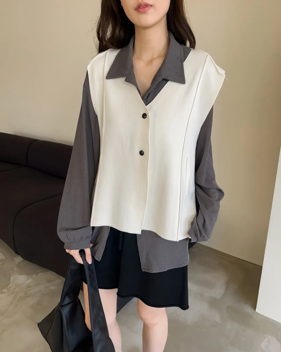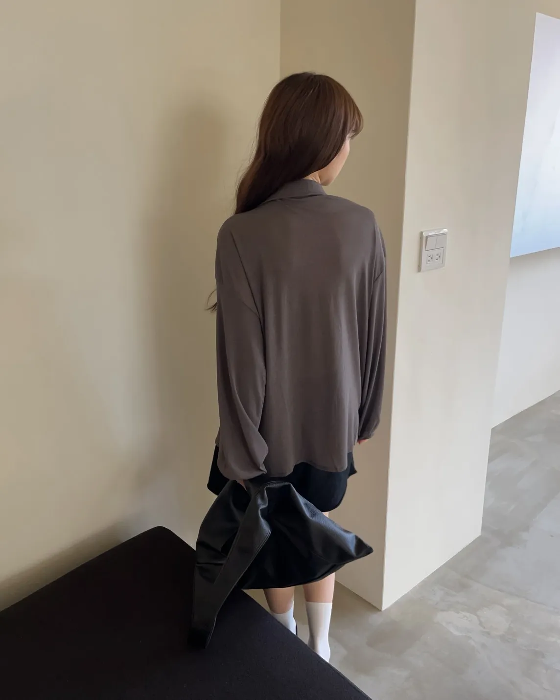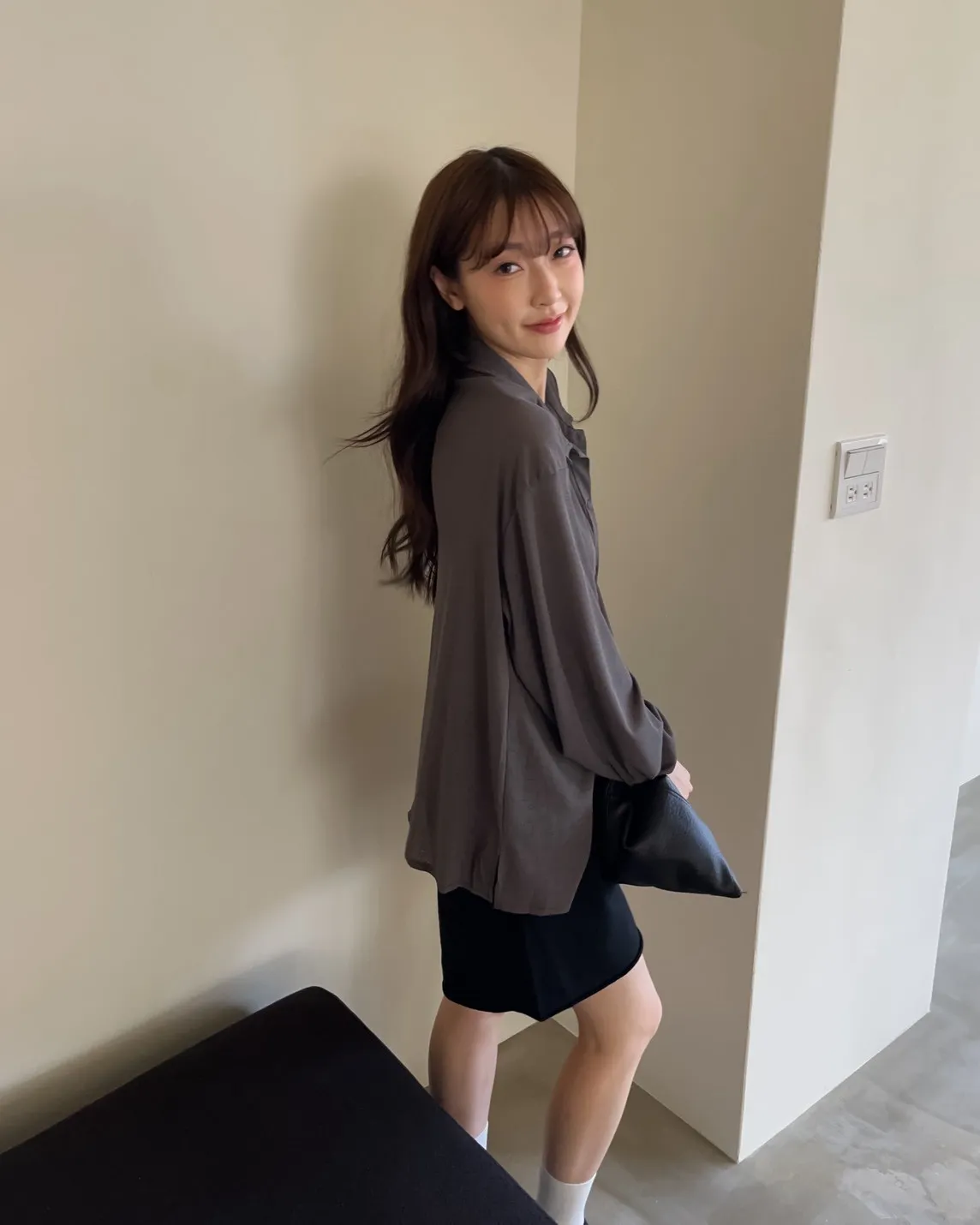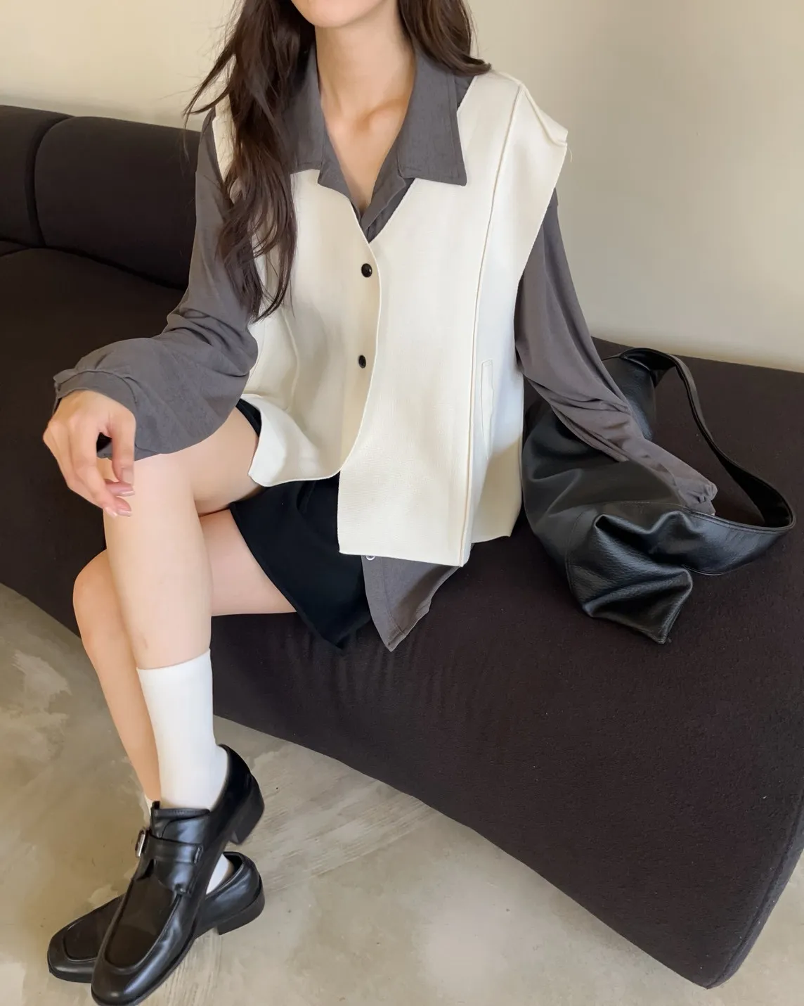 V0021厭世感輕紗排釦翻領襯衫(白/灰/黑)(售完不補)