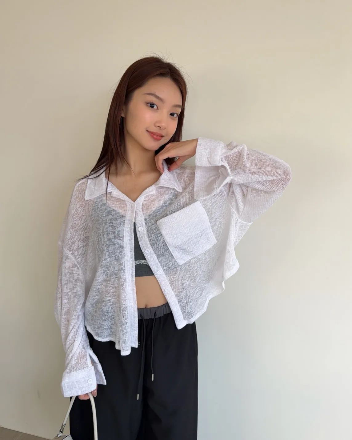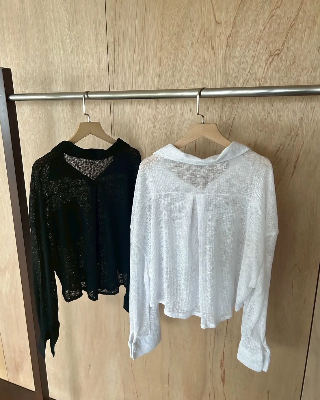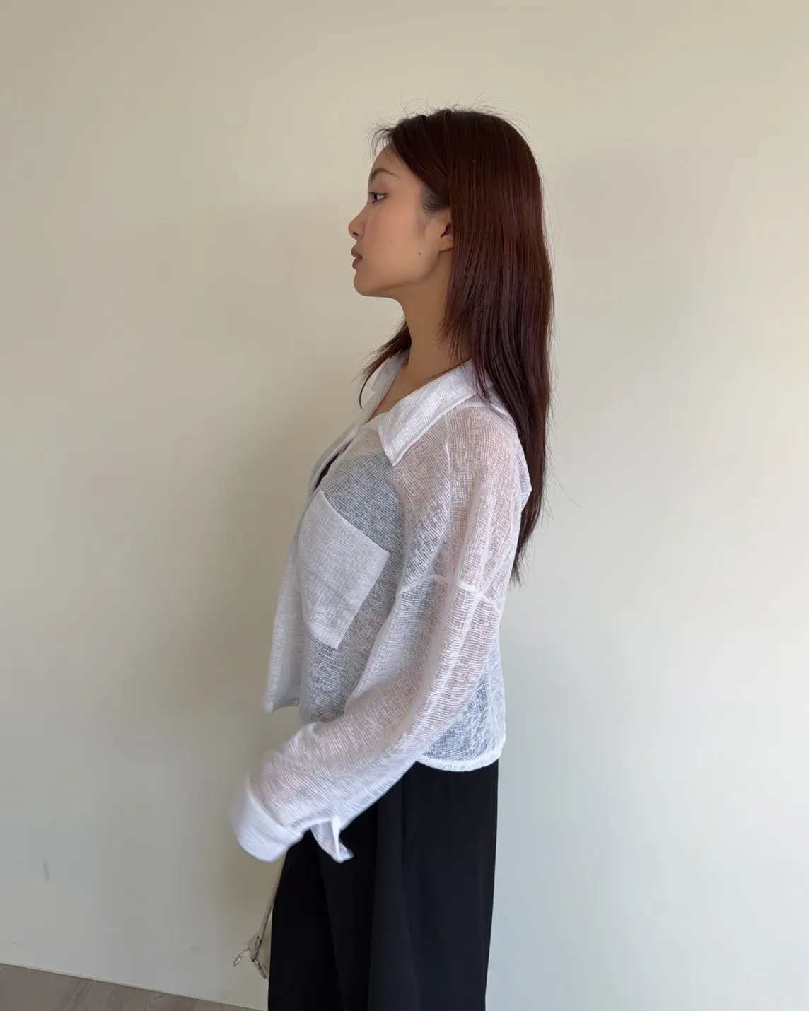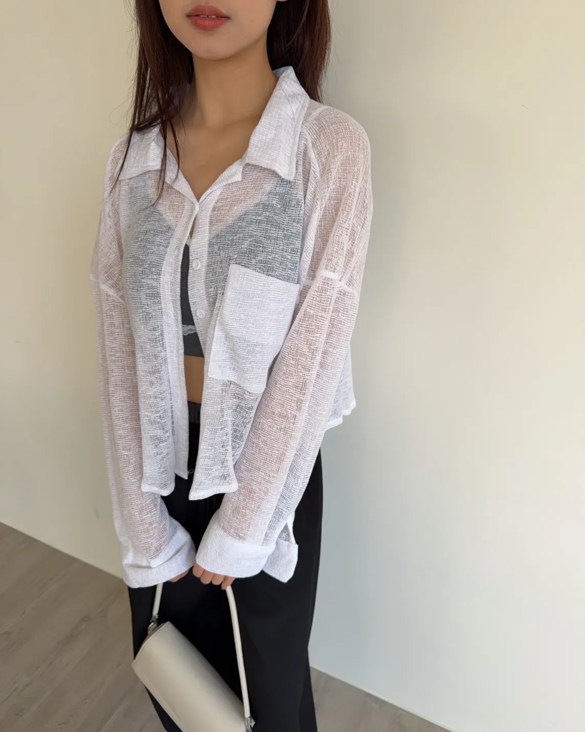 B0069薄針透視下圓弧襯衫(白/黑)