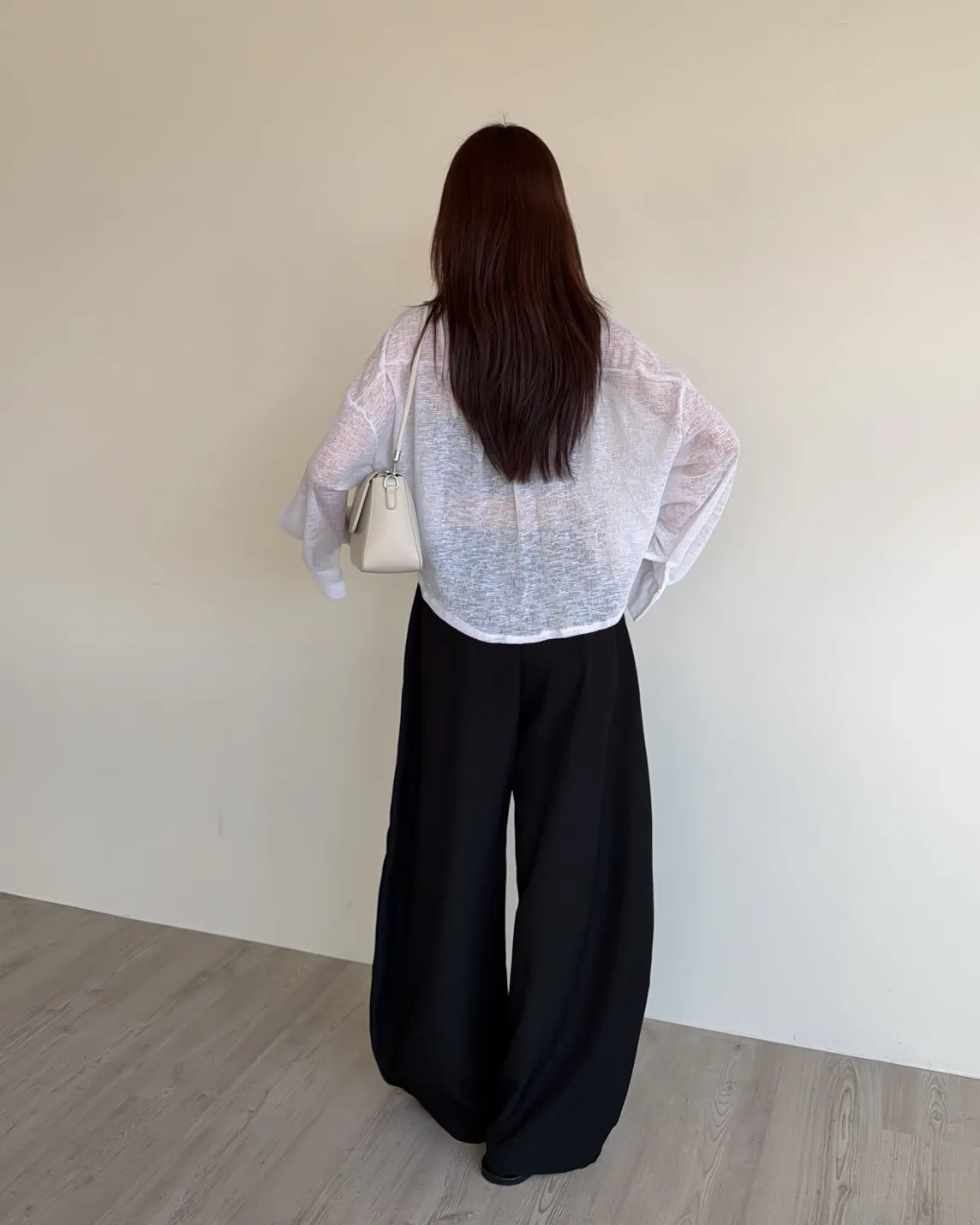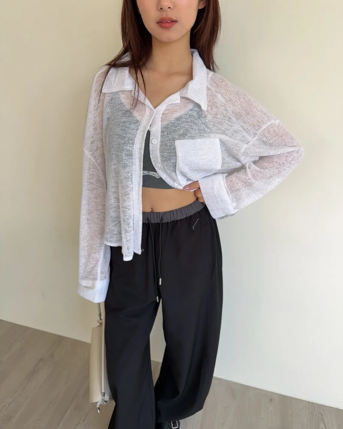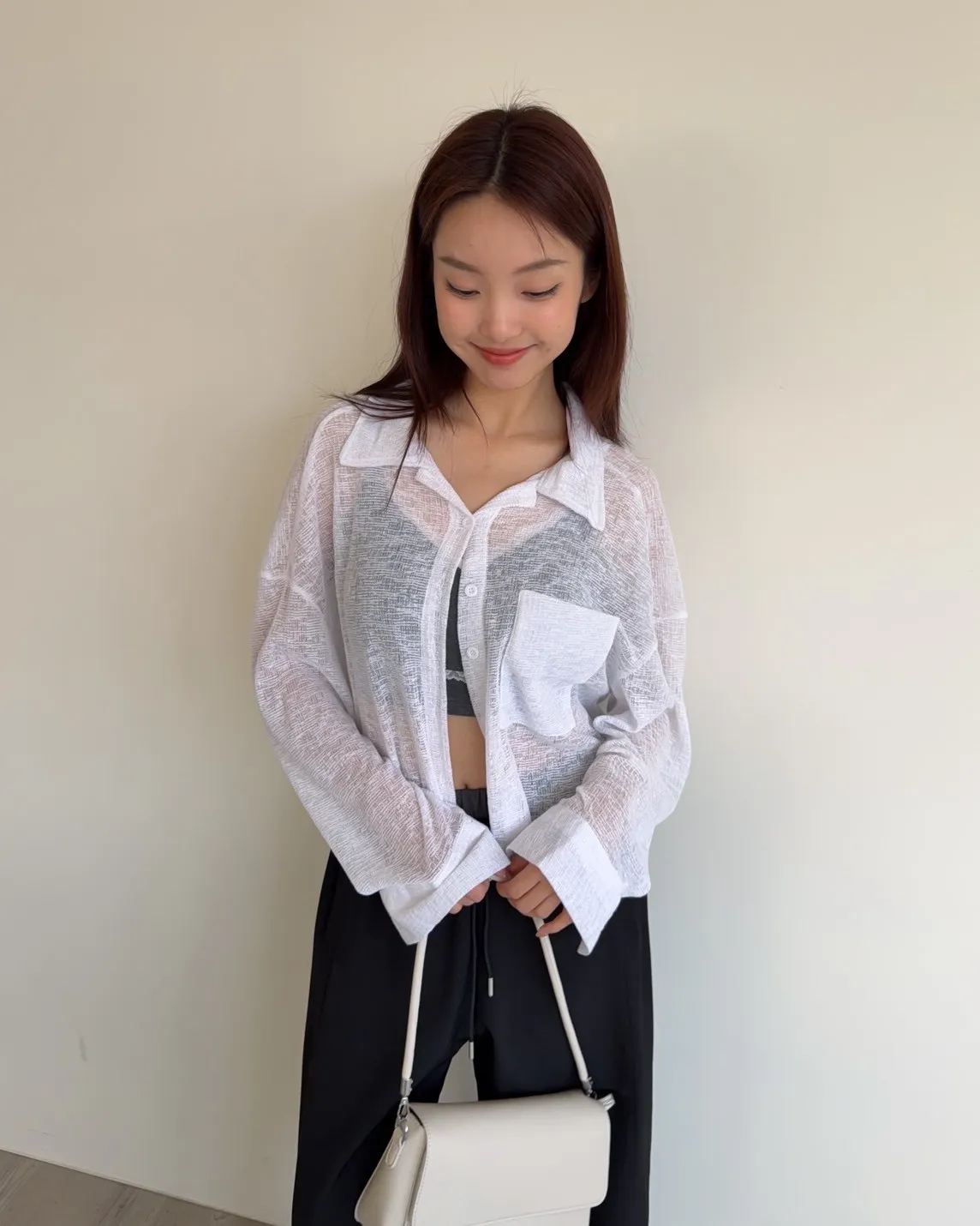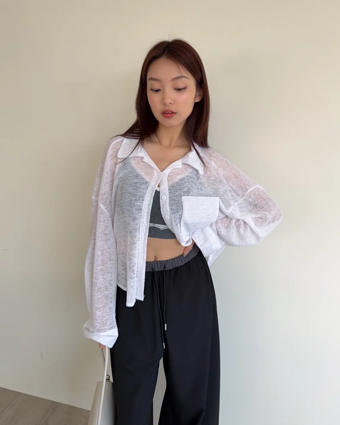 B0069薄針透視下圓弧襯衫(白/黑)