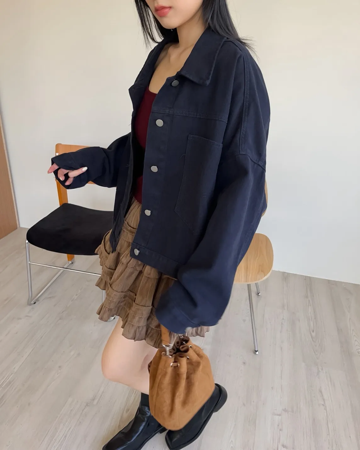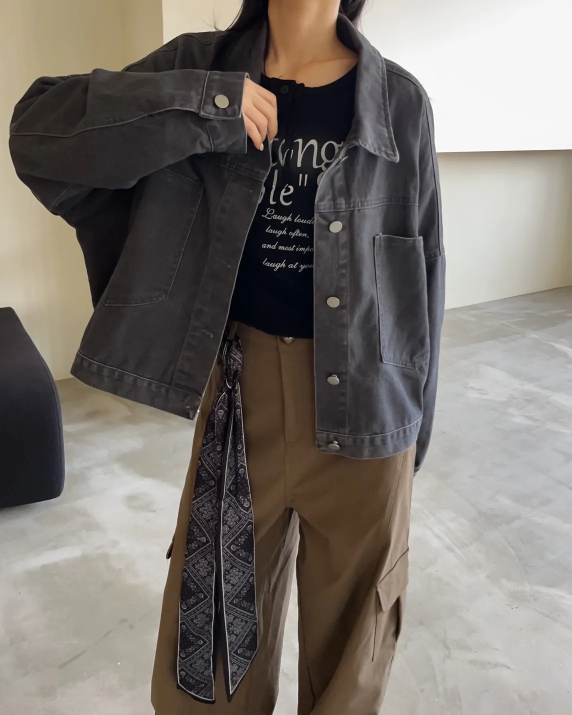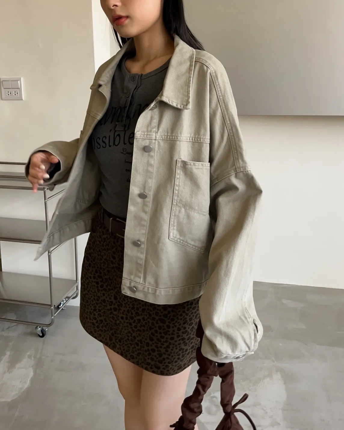 V0052歐吧中版水洗牛仔外套(灰杏/咖啡/深灰/深藍)