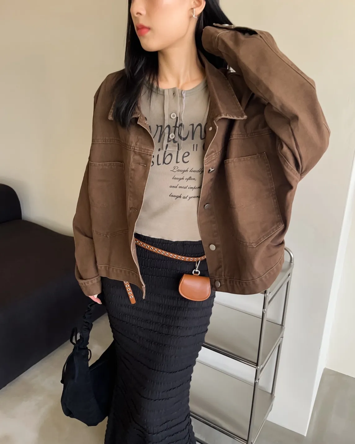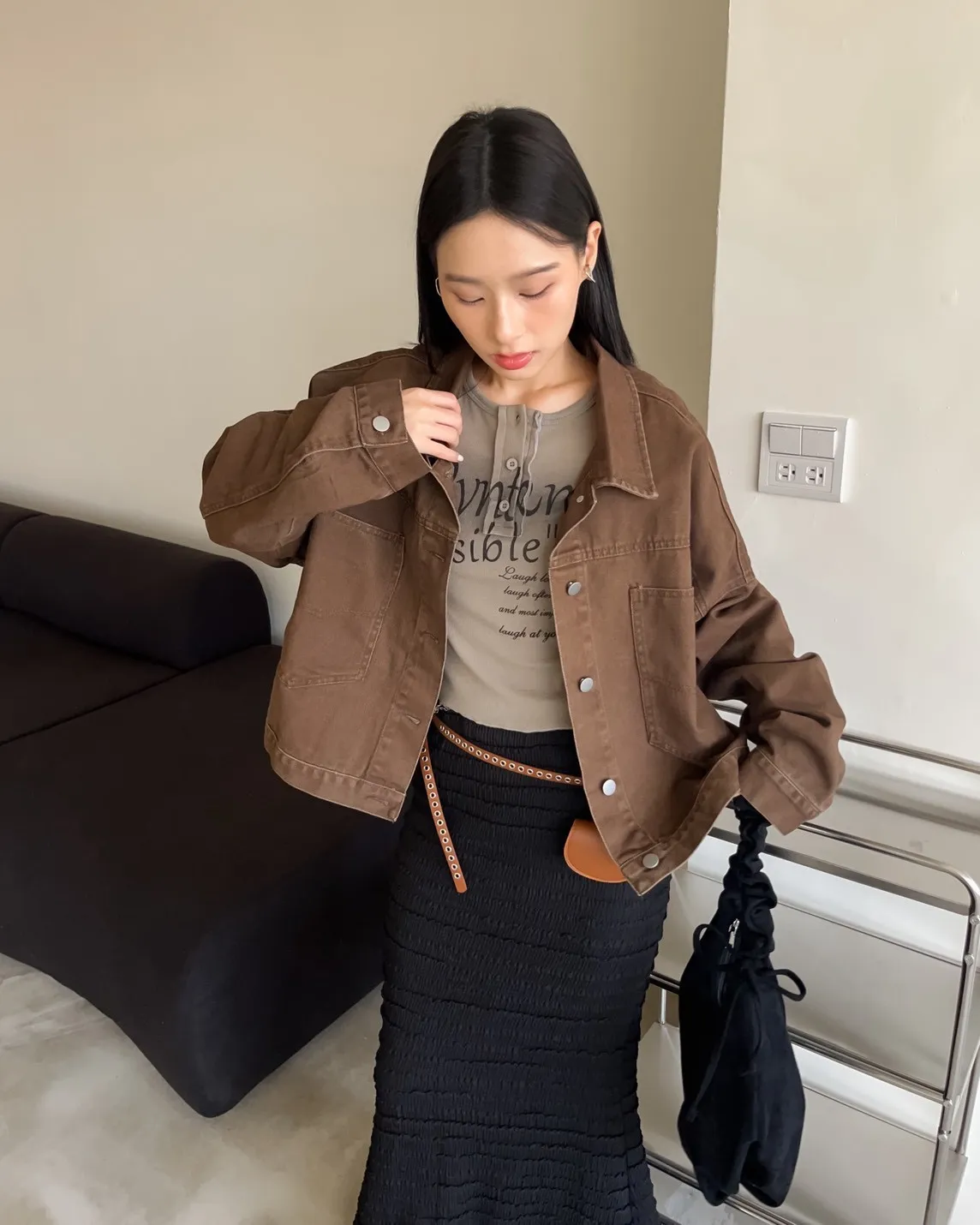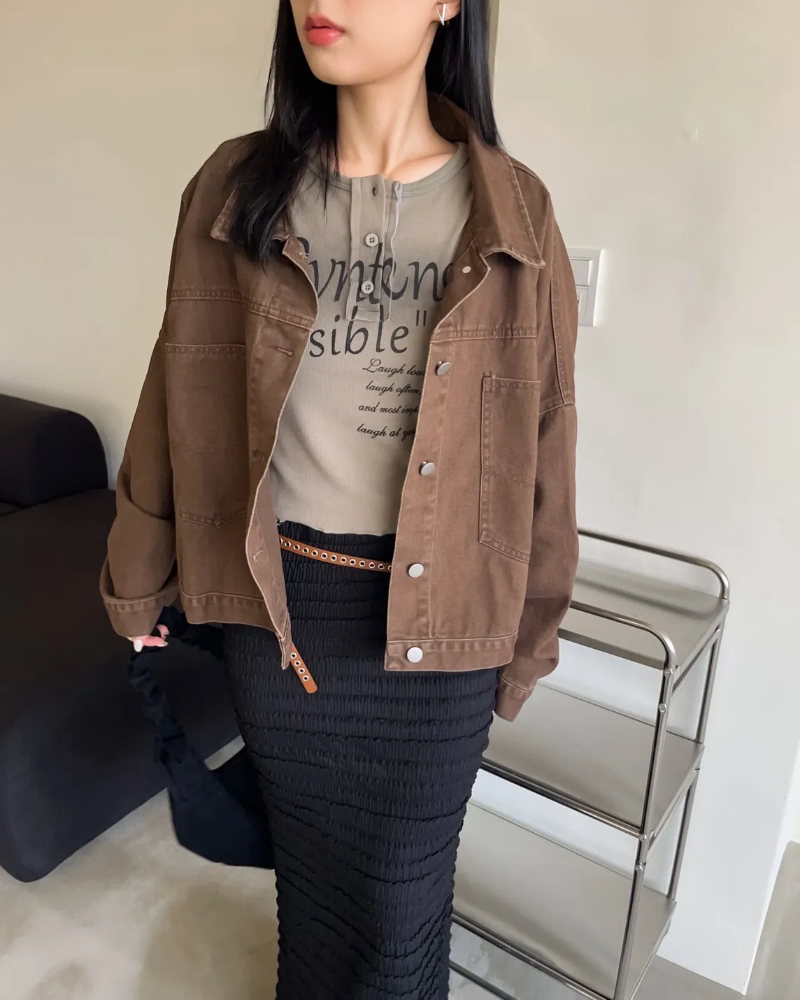 V0052歐吧中版水洗牛仔外套(灰杏/咖啡/深灰/深藍)