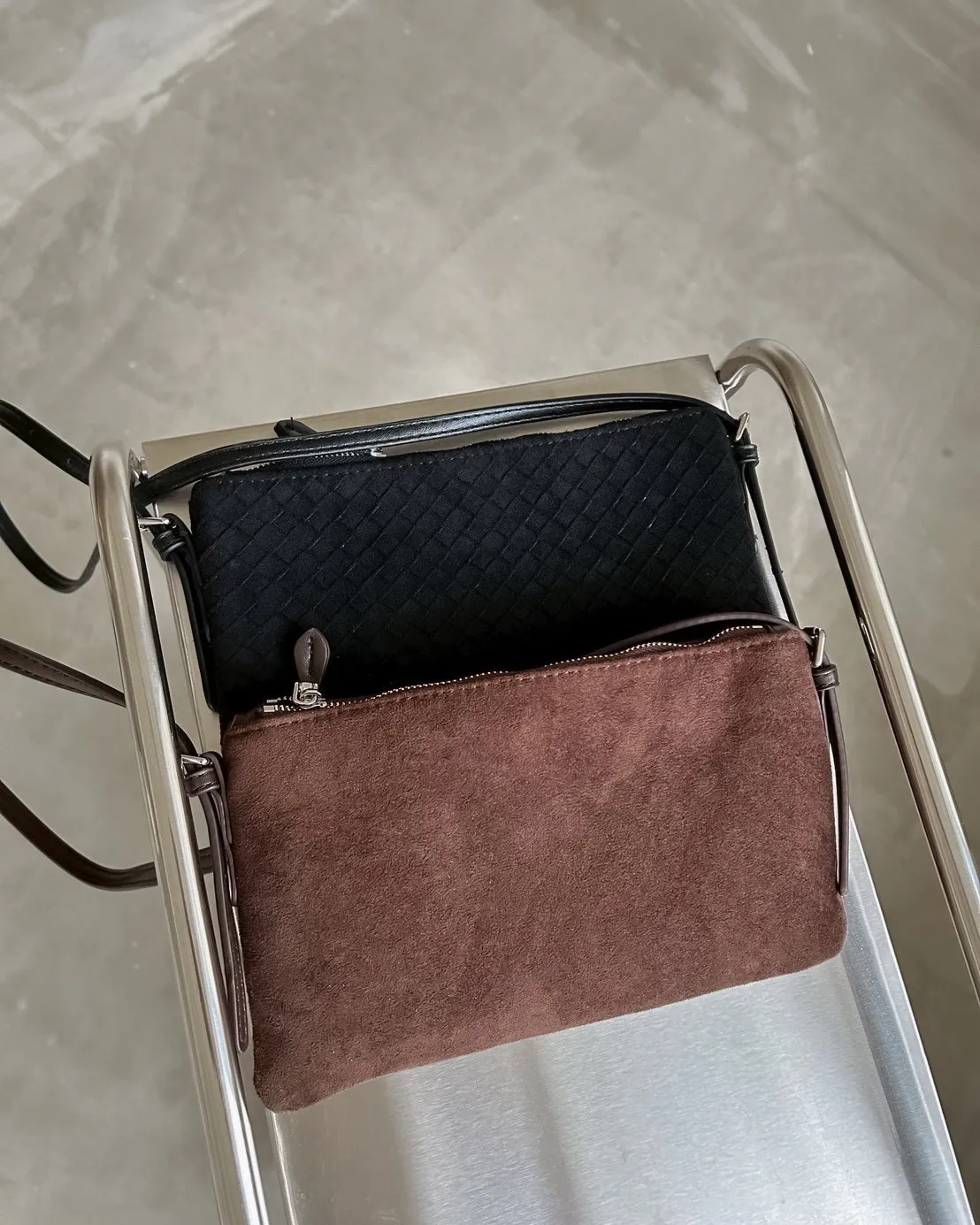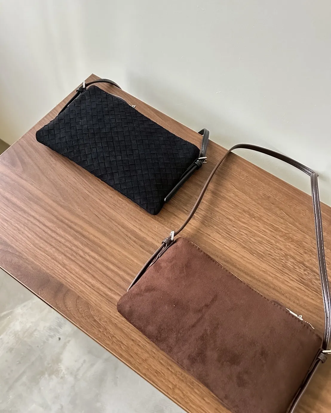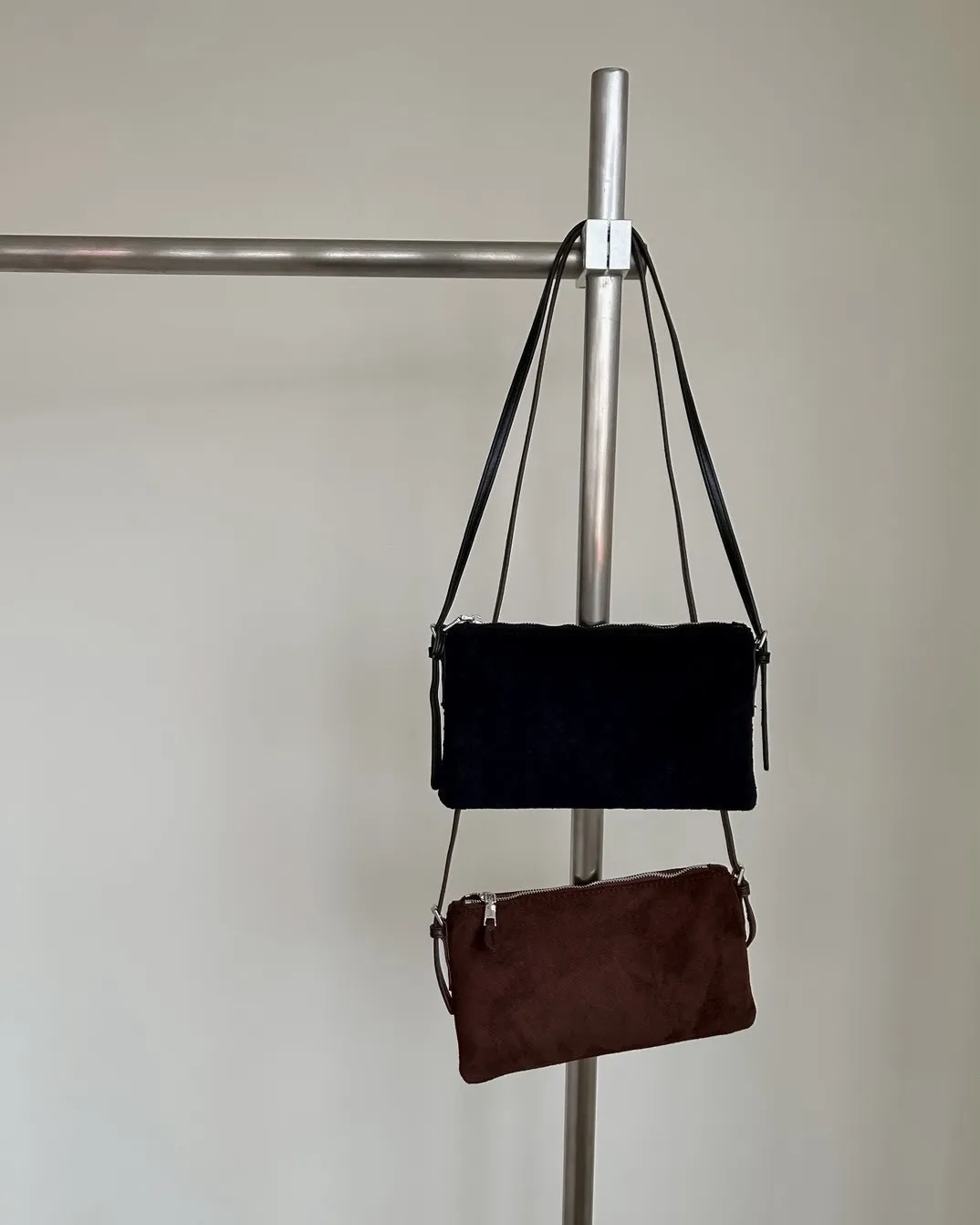 V0063(附兩種背帶)巧克力長方絨布包(咖啡/黑)