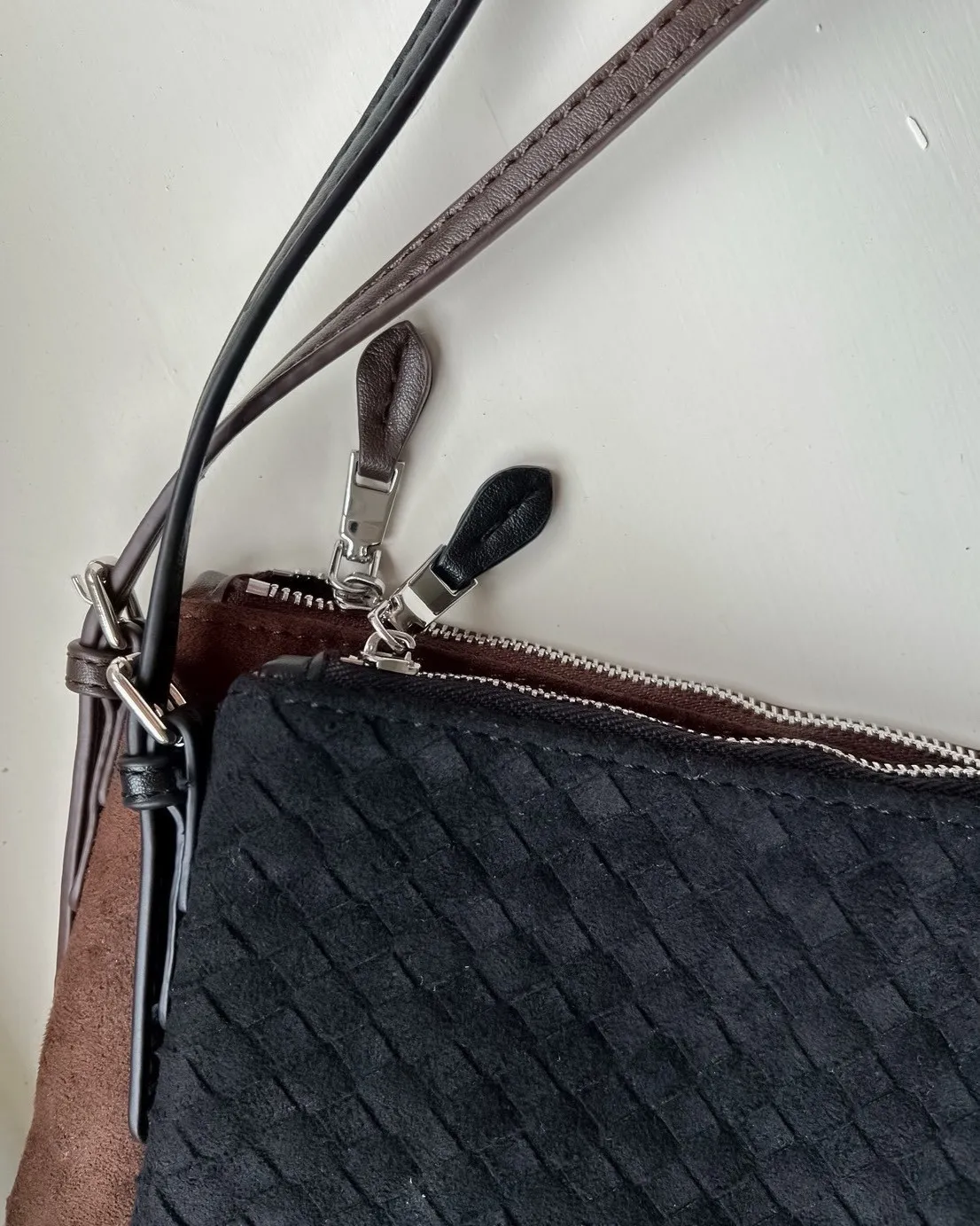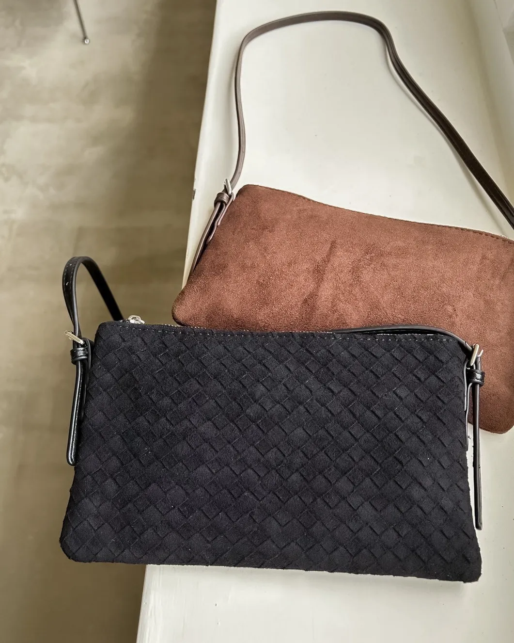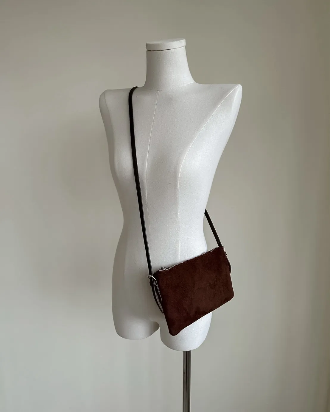 V0063(附兩種背帶)巧克力長方絨布包(咖啡/黑)