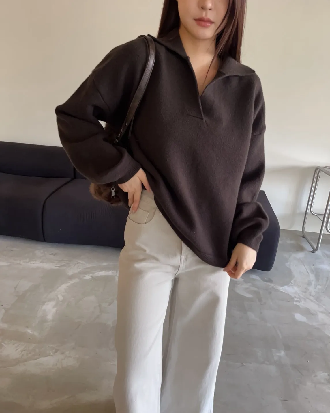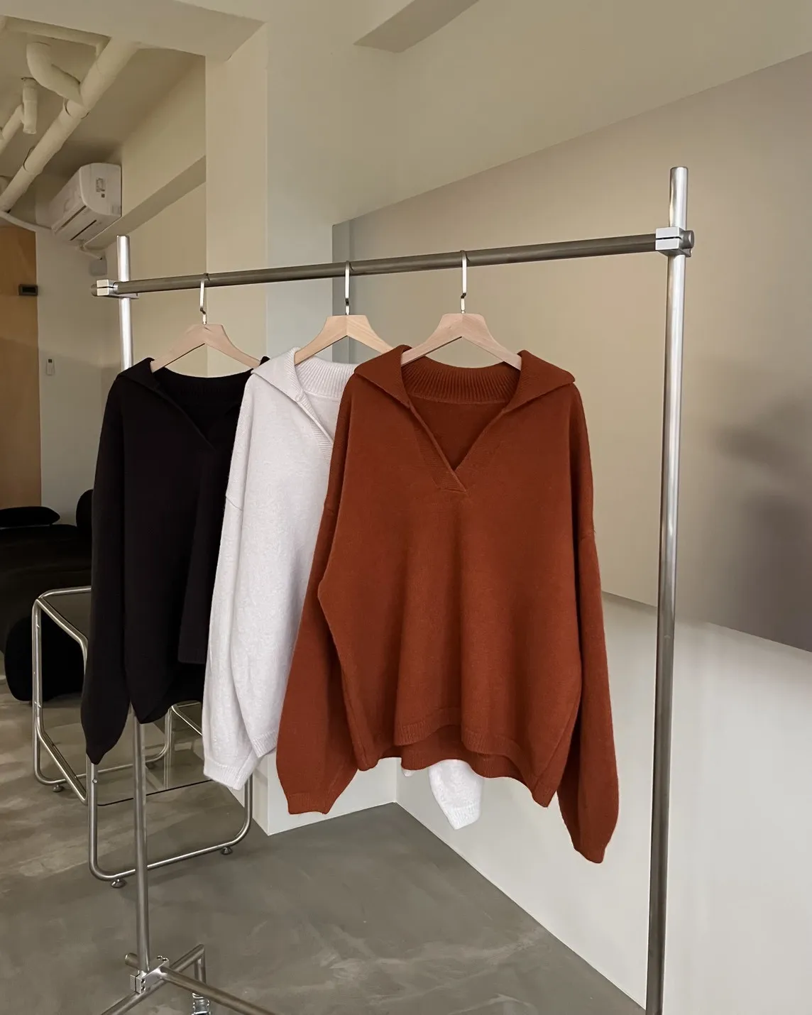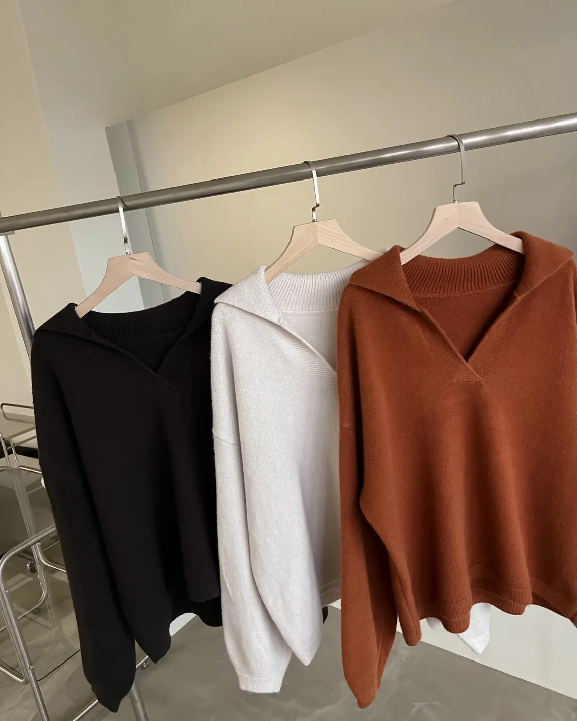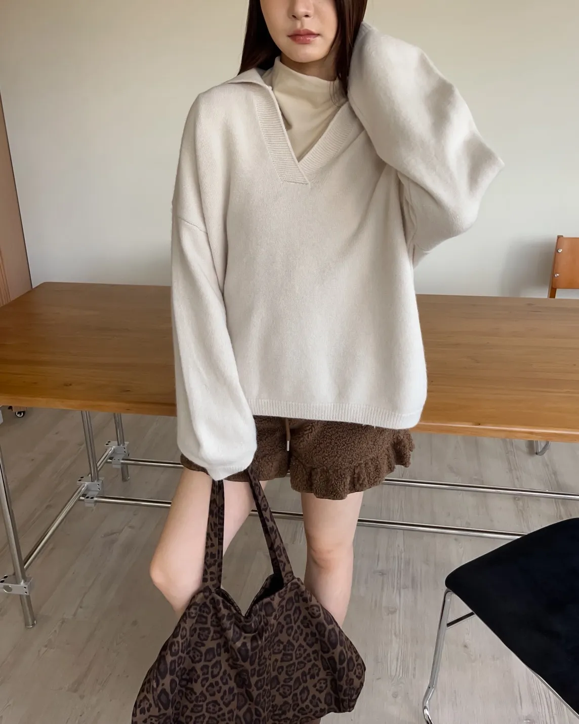 螺紋POLO領 縮口澎澎袖 寬鬆落肩 顏色可愛! 有厚度毛衣