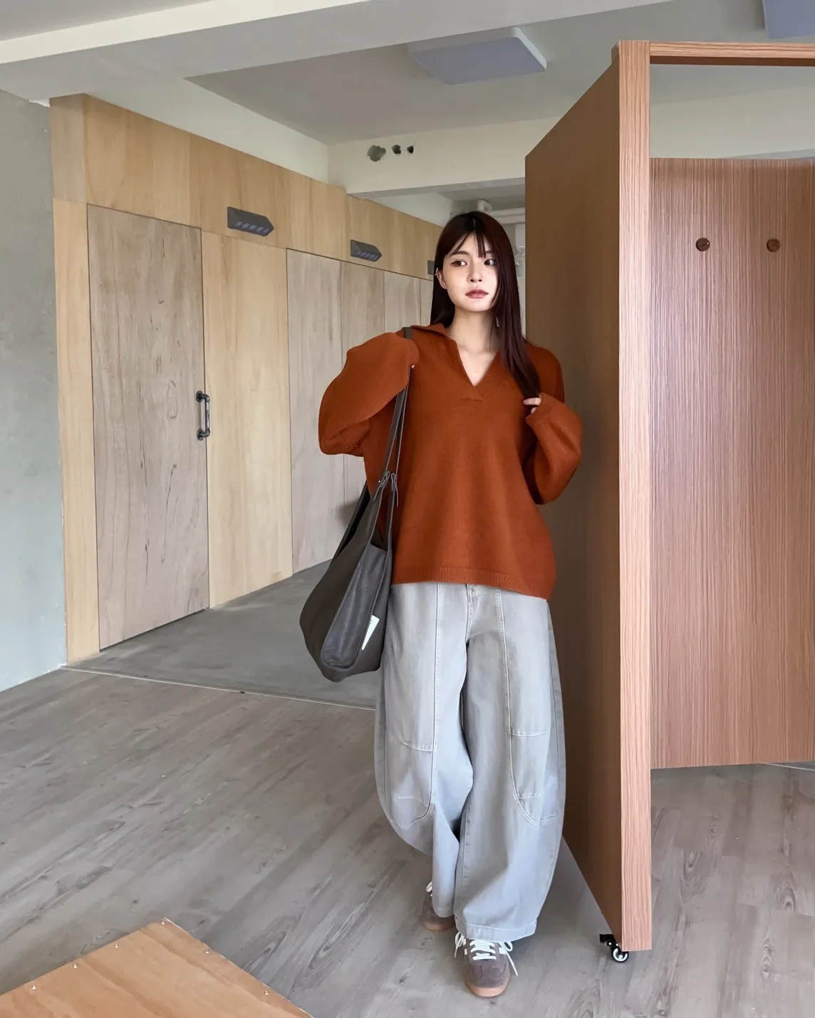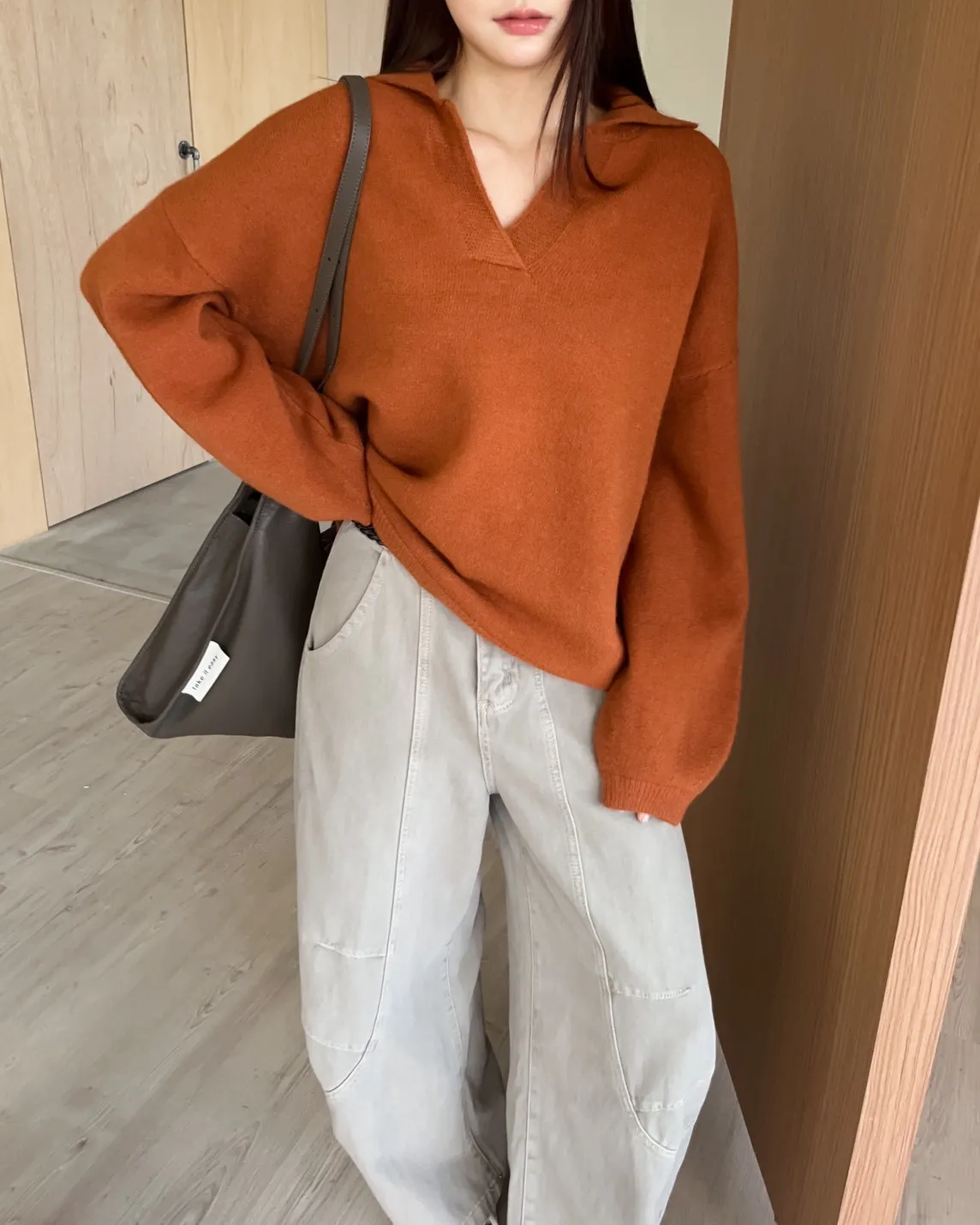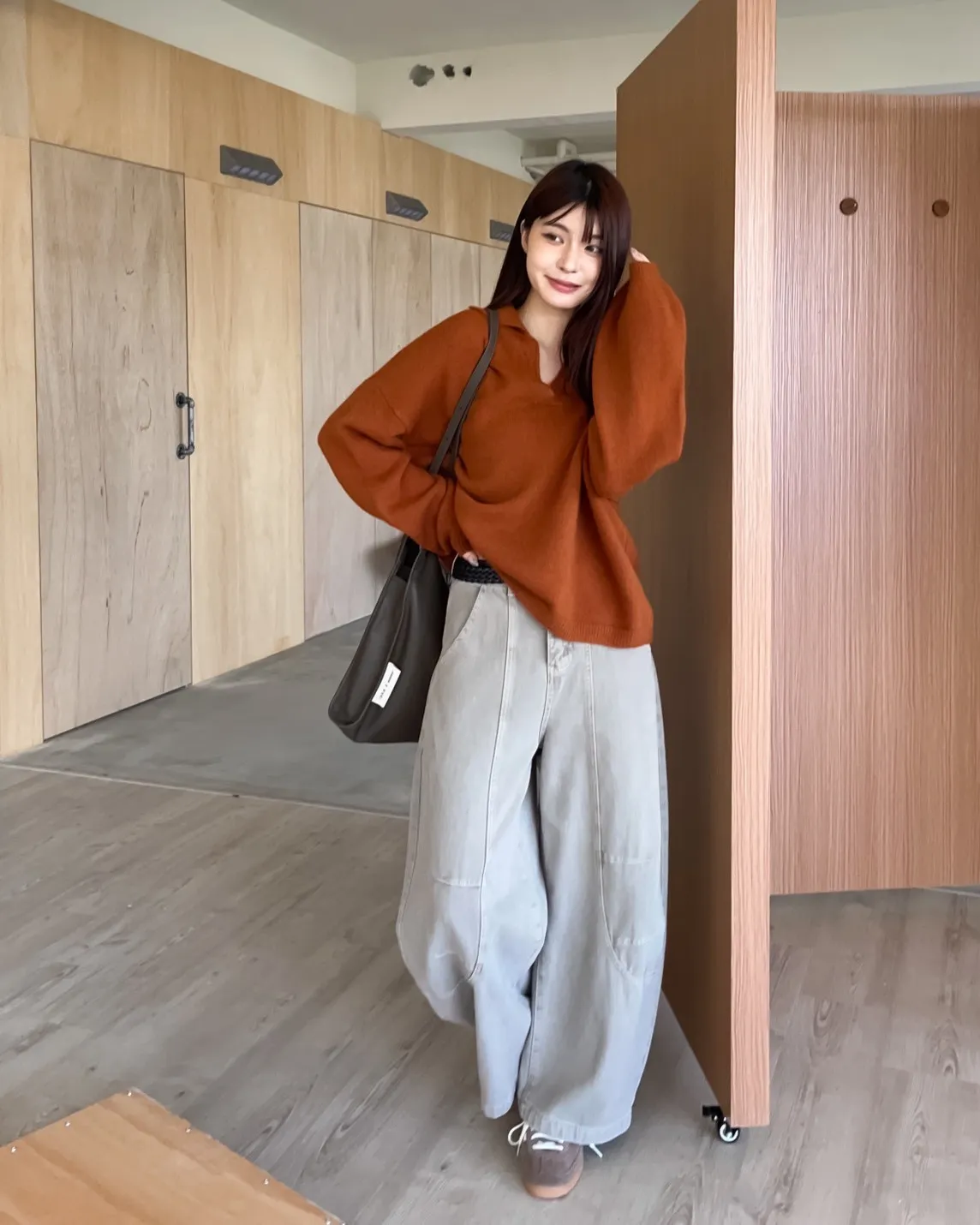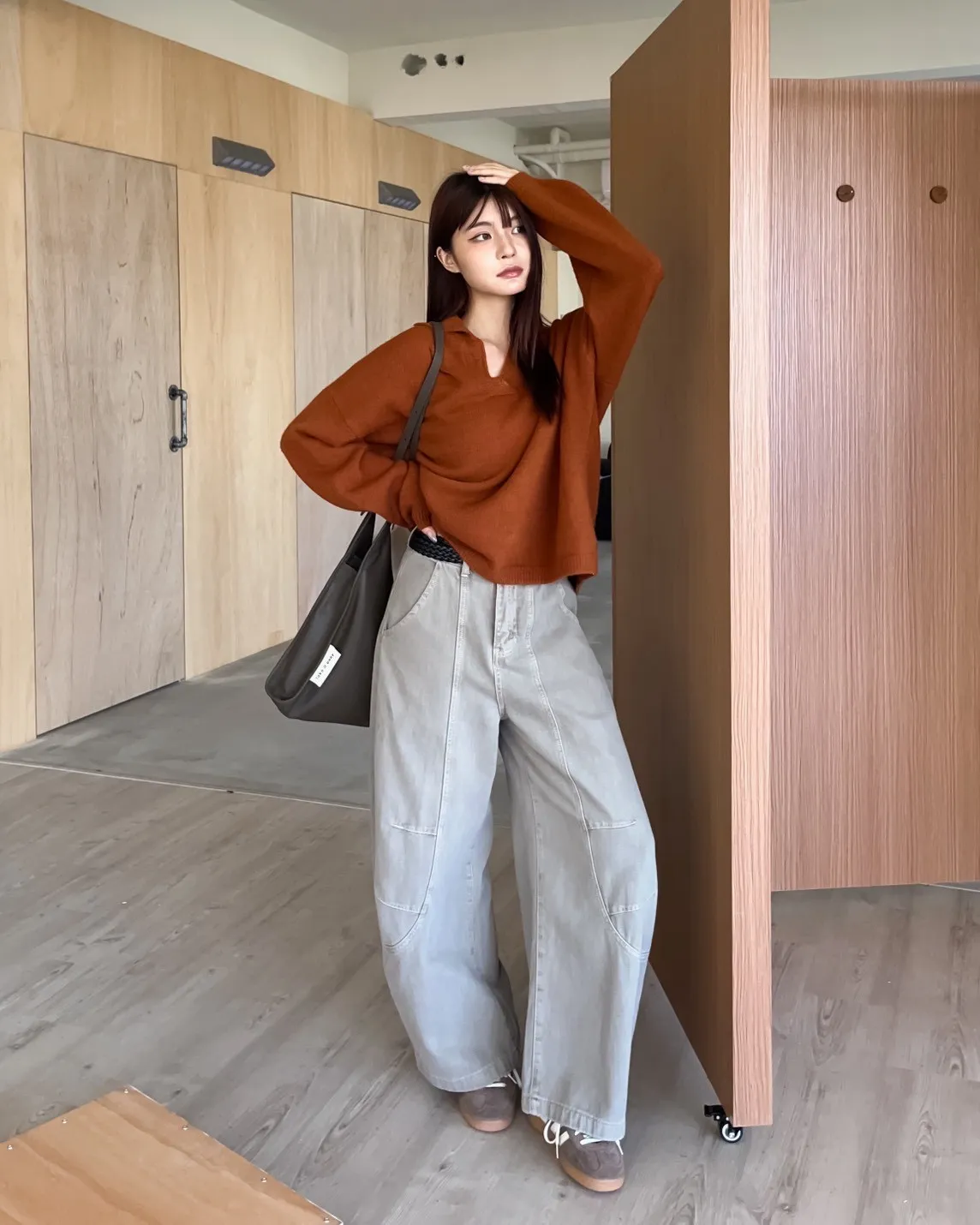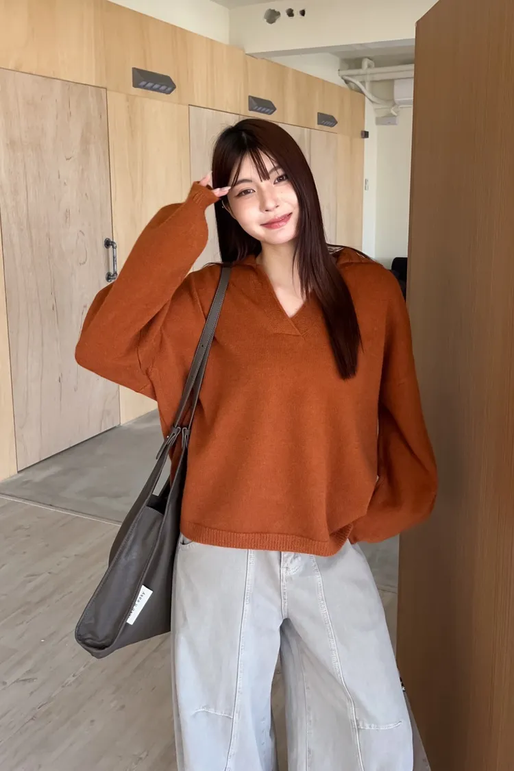 螺紋POLO領 縮口澎澎袖 寬鬆落肩 顏色可愛! 有厚度毛衣