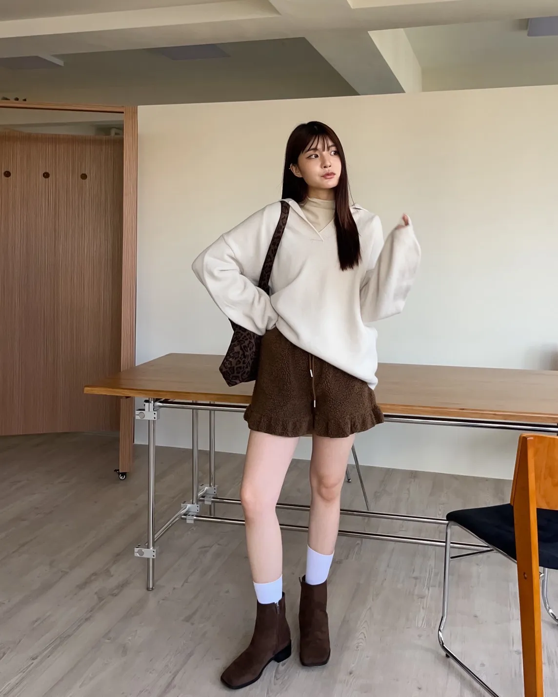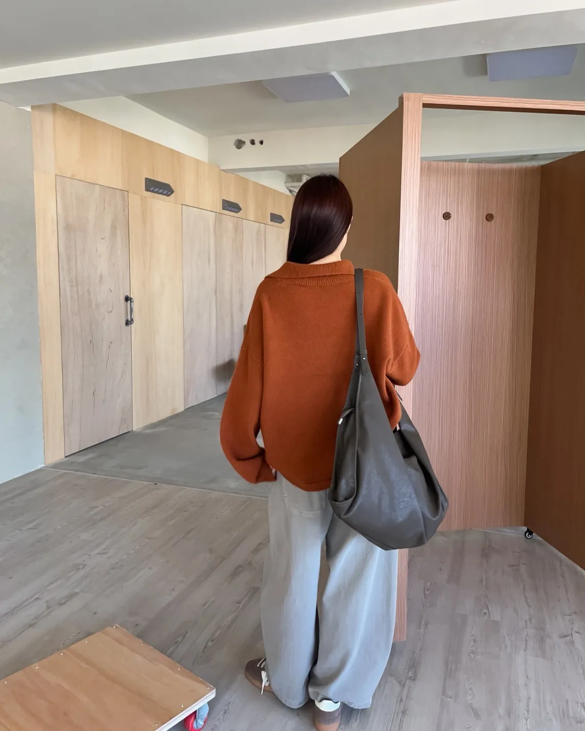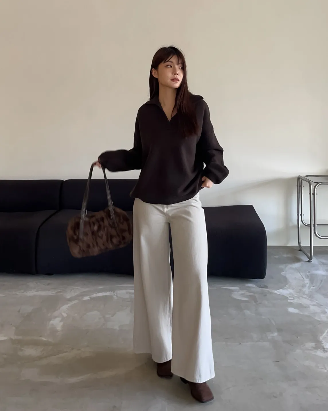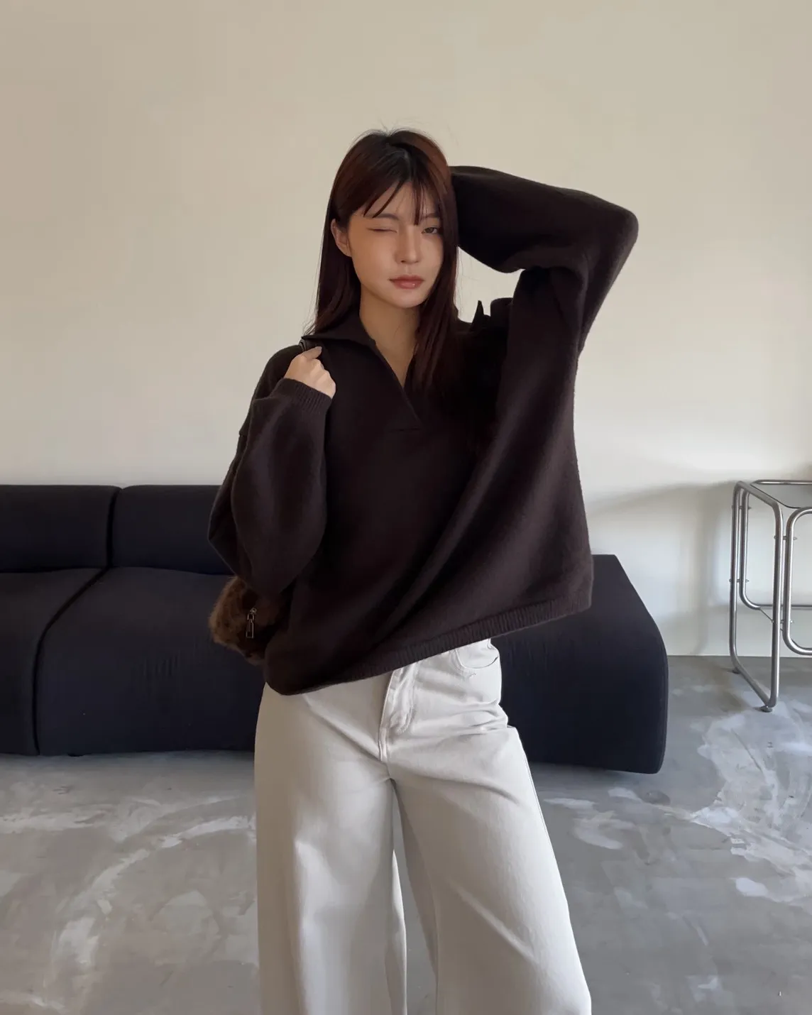 螺紋POLO領 縮口澎澎袖 寬鬆落肩 顏色可愛! 有厚度毛衣