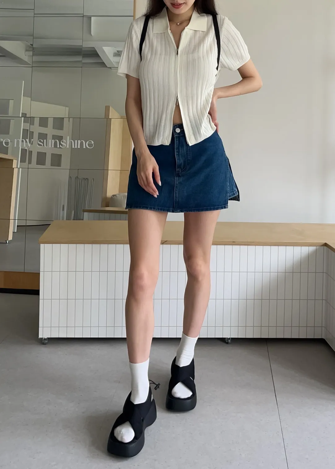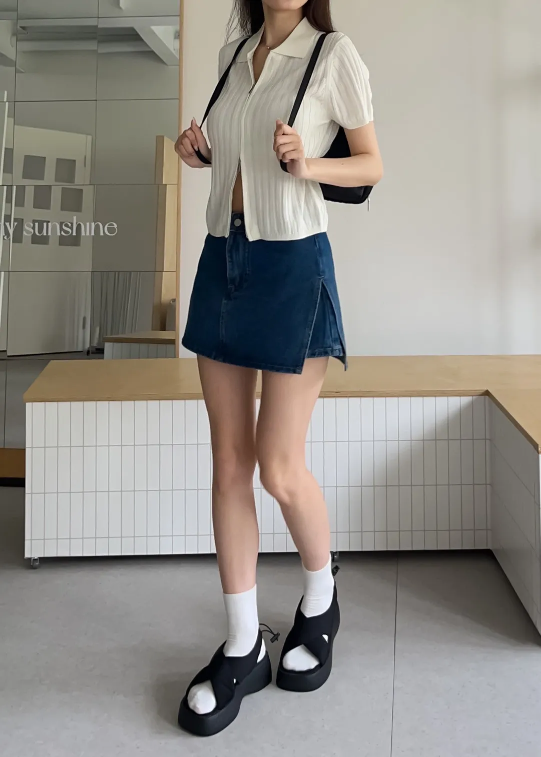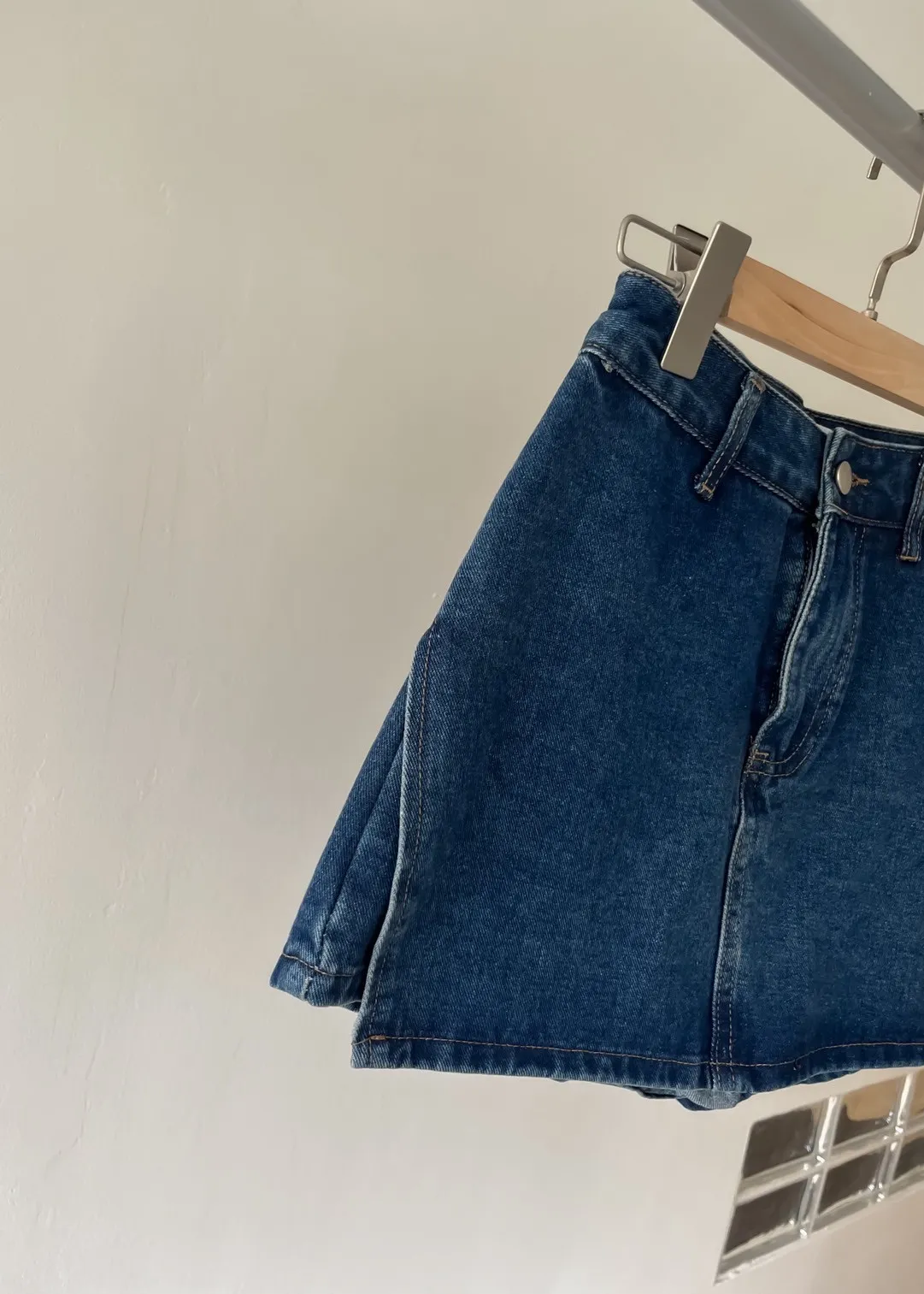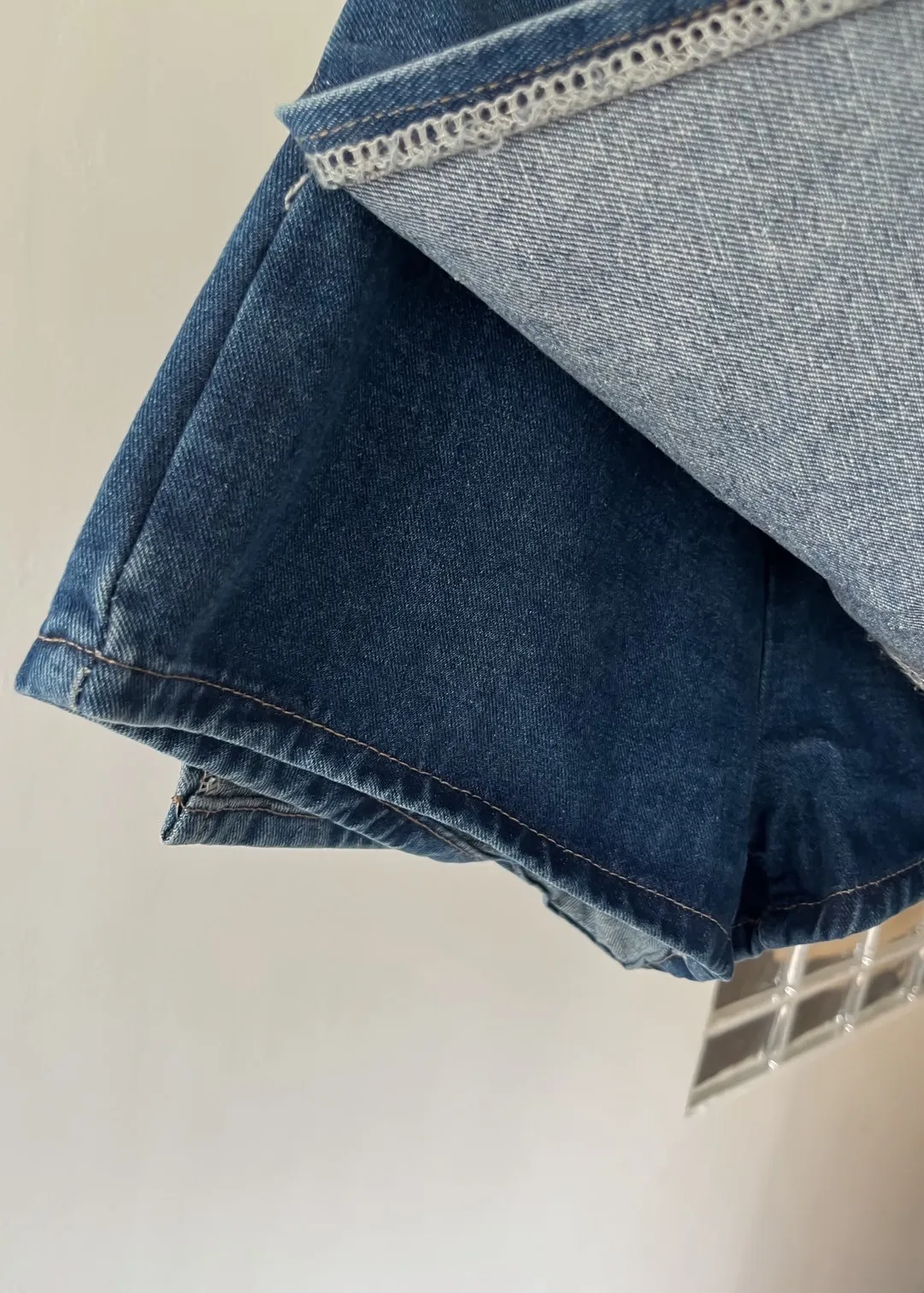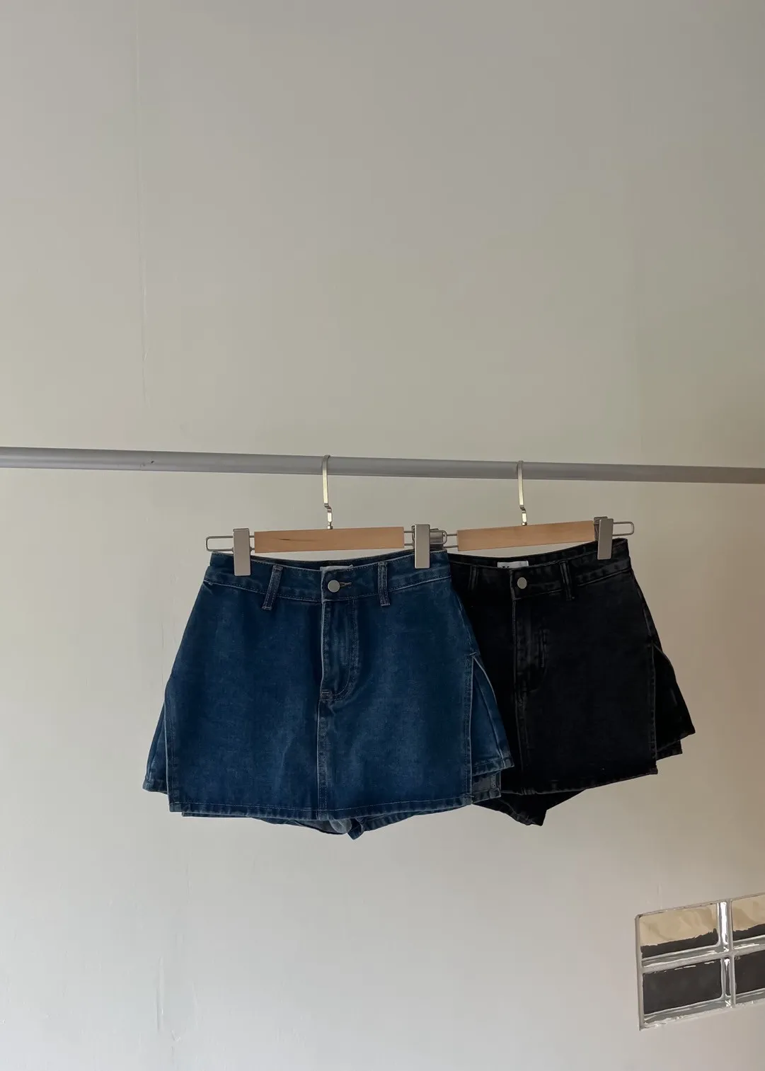 Q0023兩側開岔牛仔短褲裙(藍/黑)(售完不補)