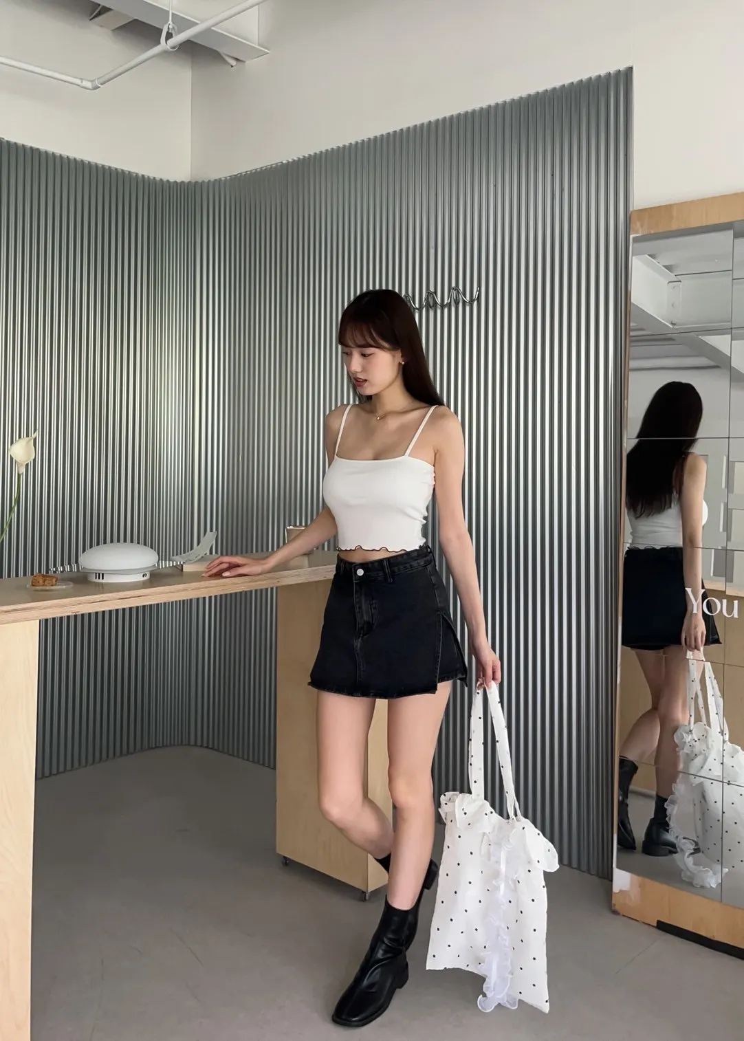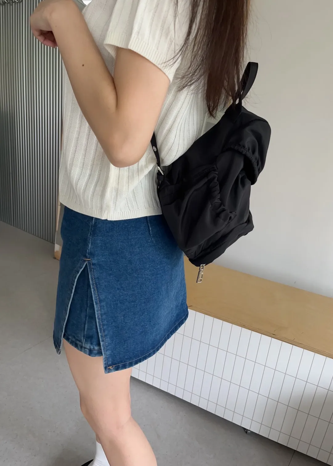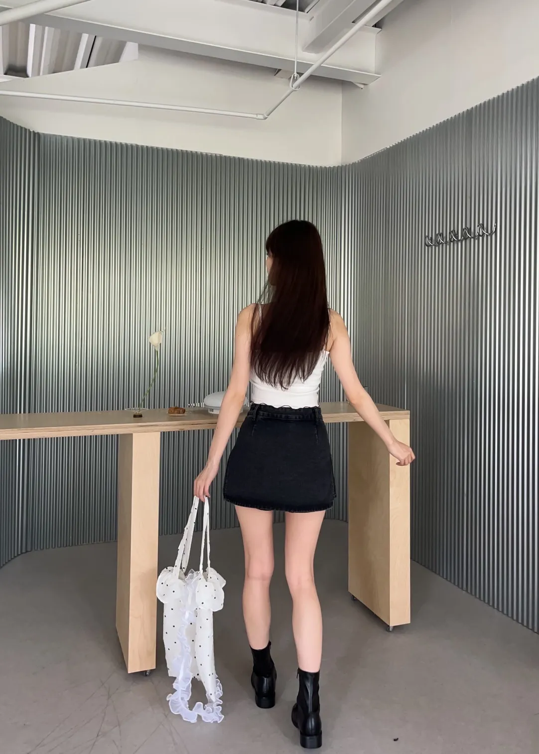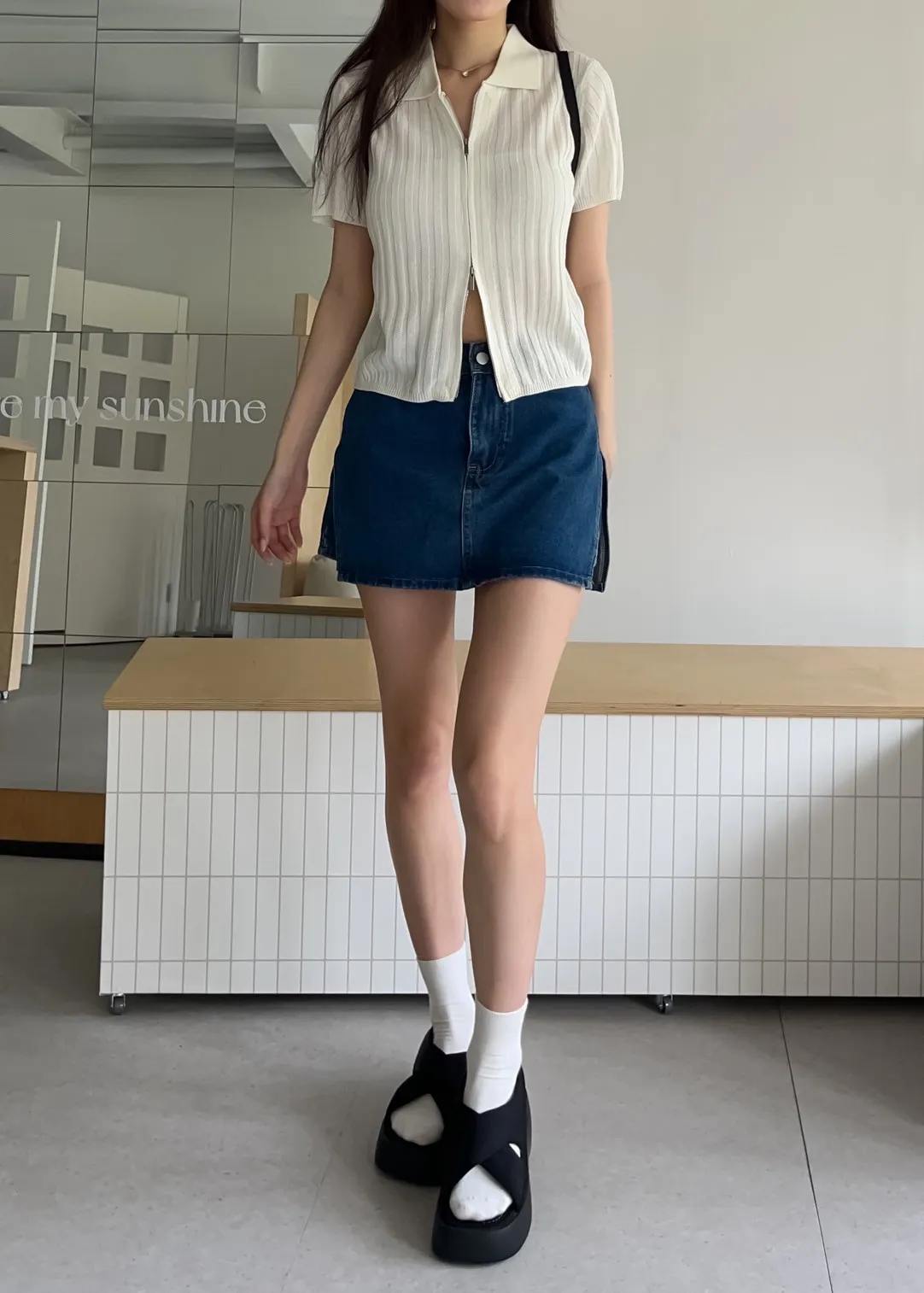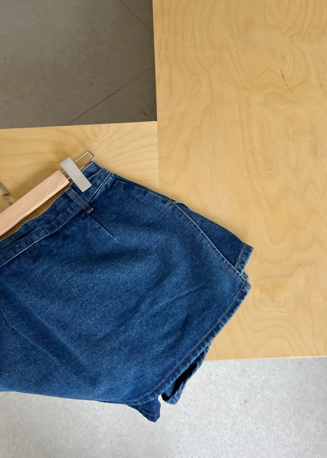 Q0023兩側開岔牛仔短褲裙(藍/黑)(售完不補)