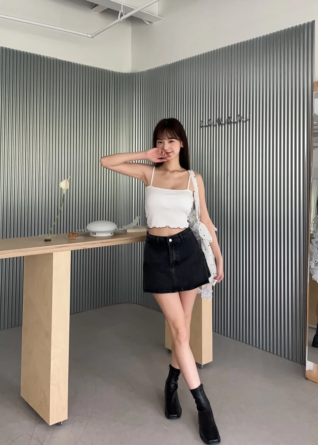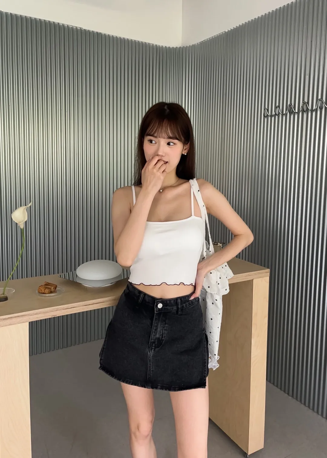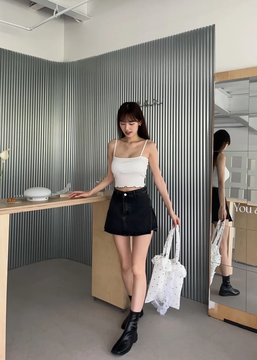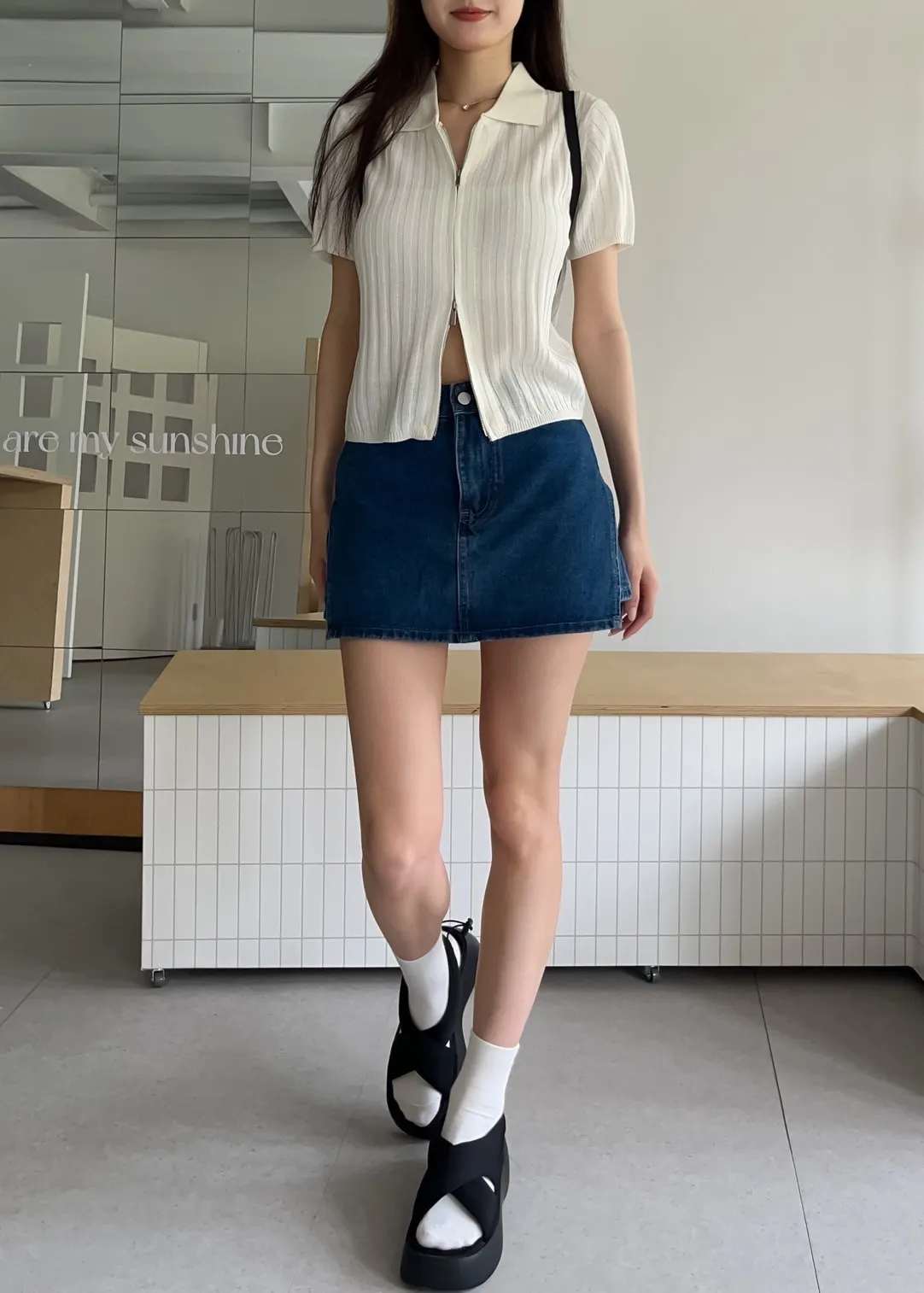 Q0023兩側開岔牛仔短褲裙(藍/黑)(售完不補)