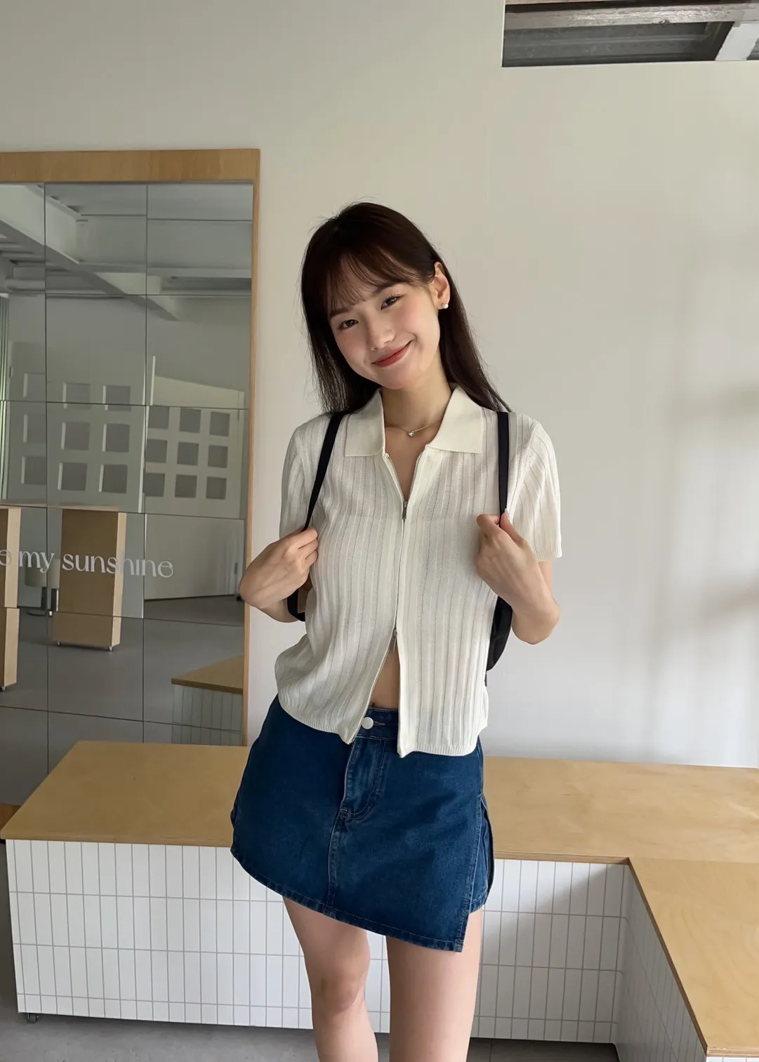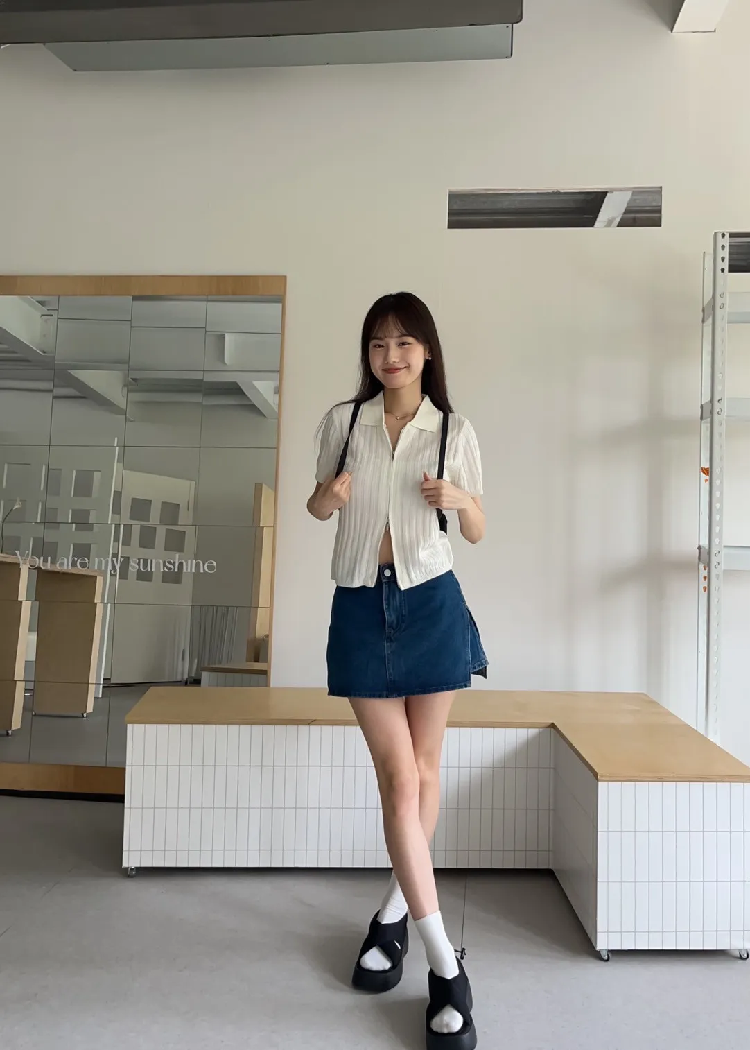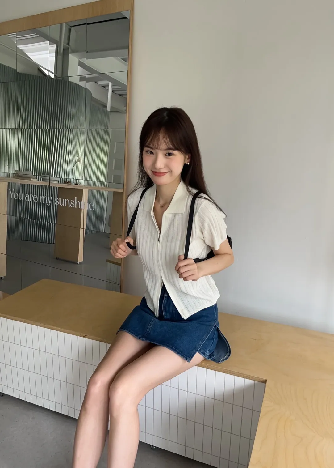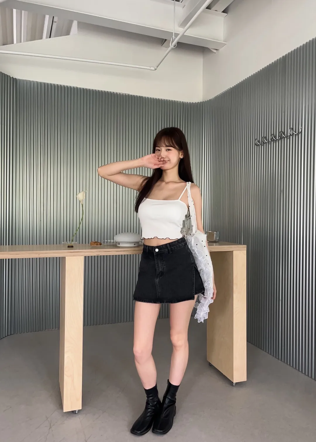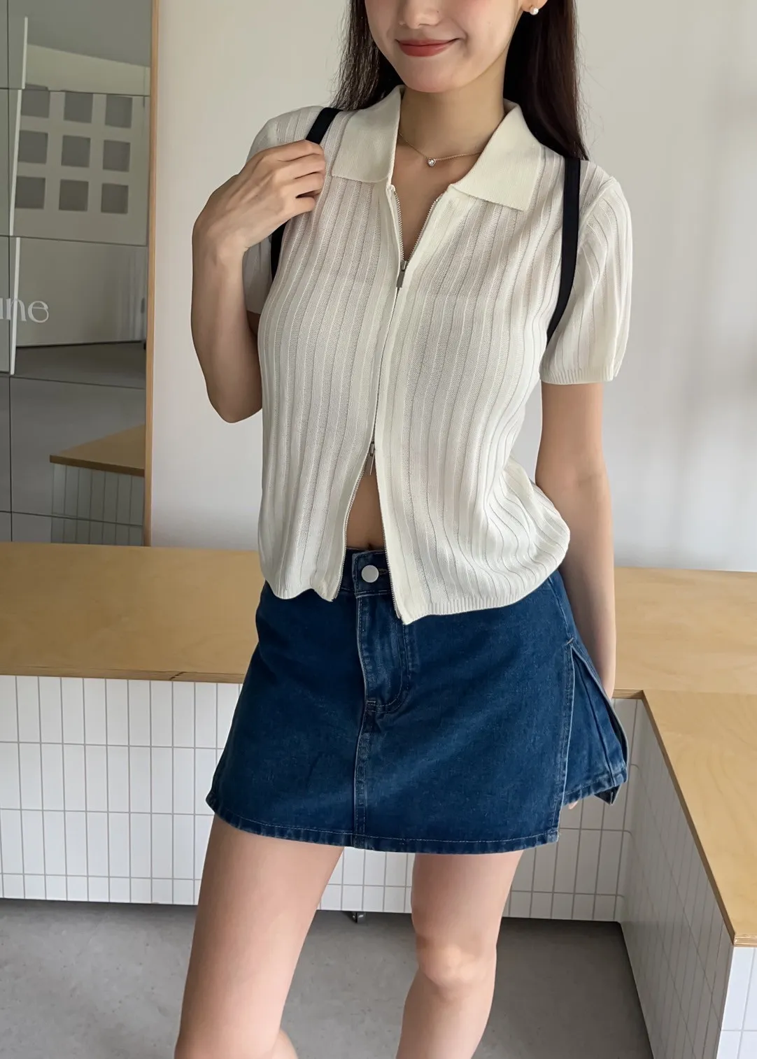 Q0023兩側開岔牛仔短褲裙(藍/黑)(售完不補)