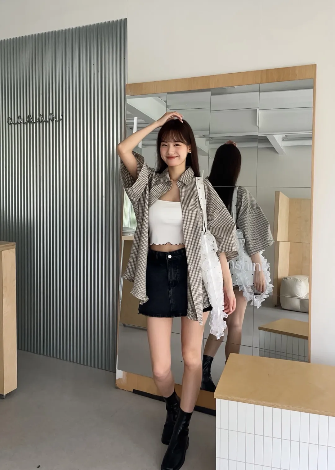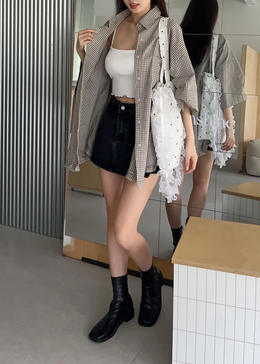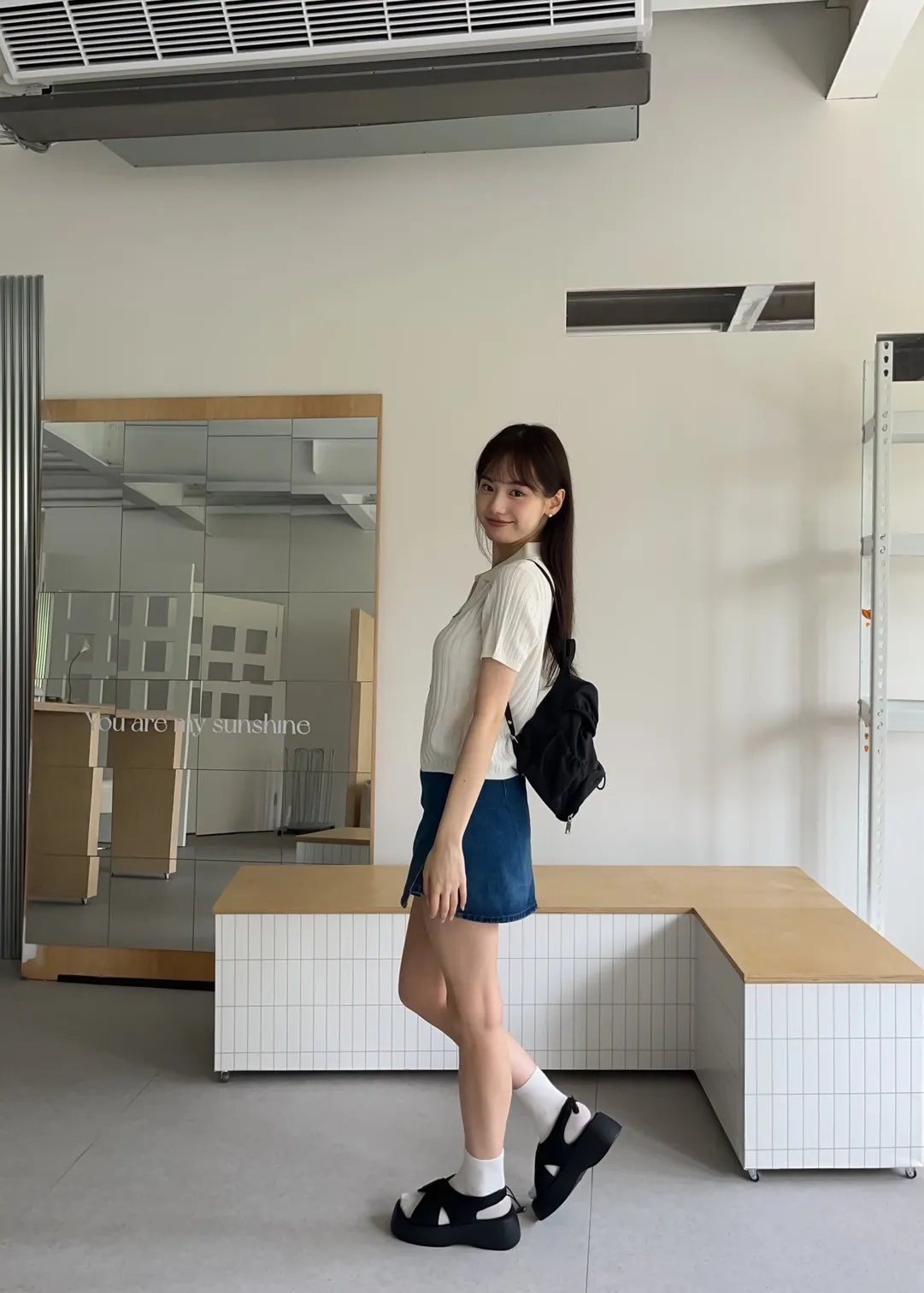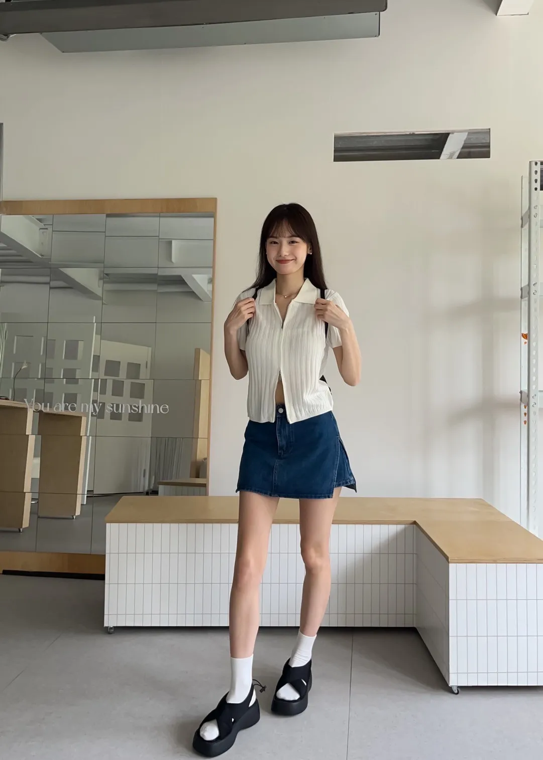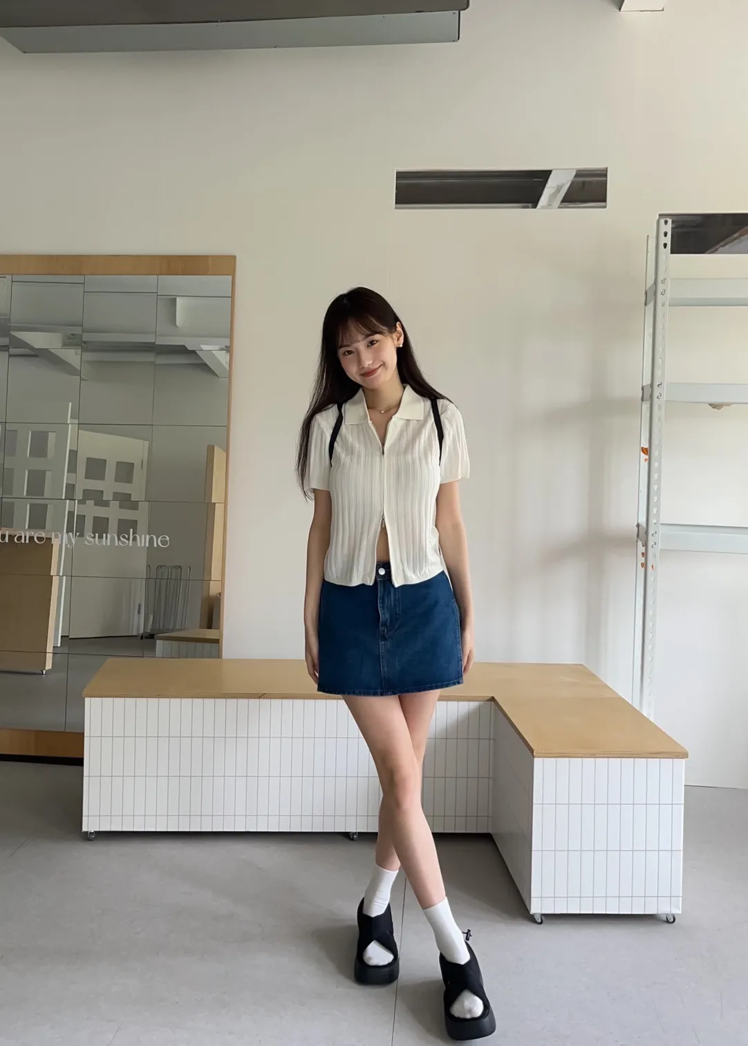 Q0023兩側開岔牛仔短褲裙(藍/黑)(售完不補)