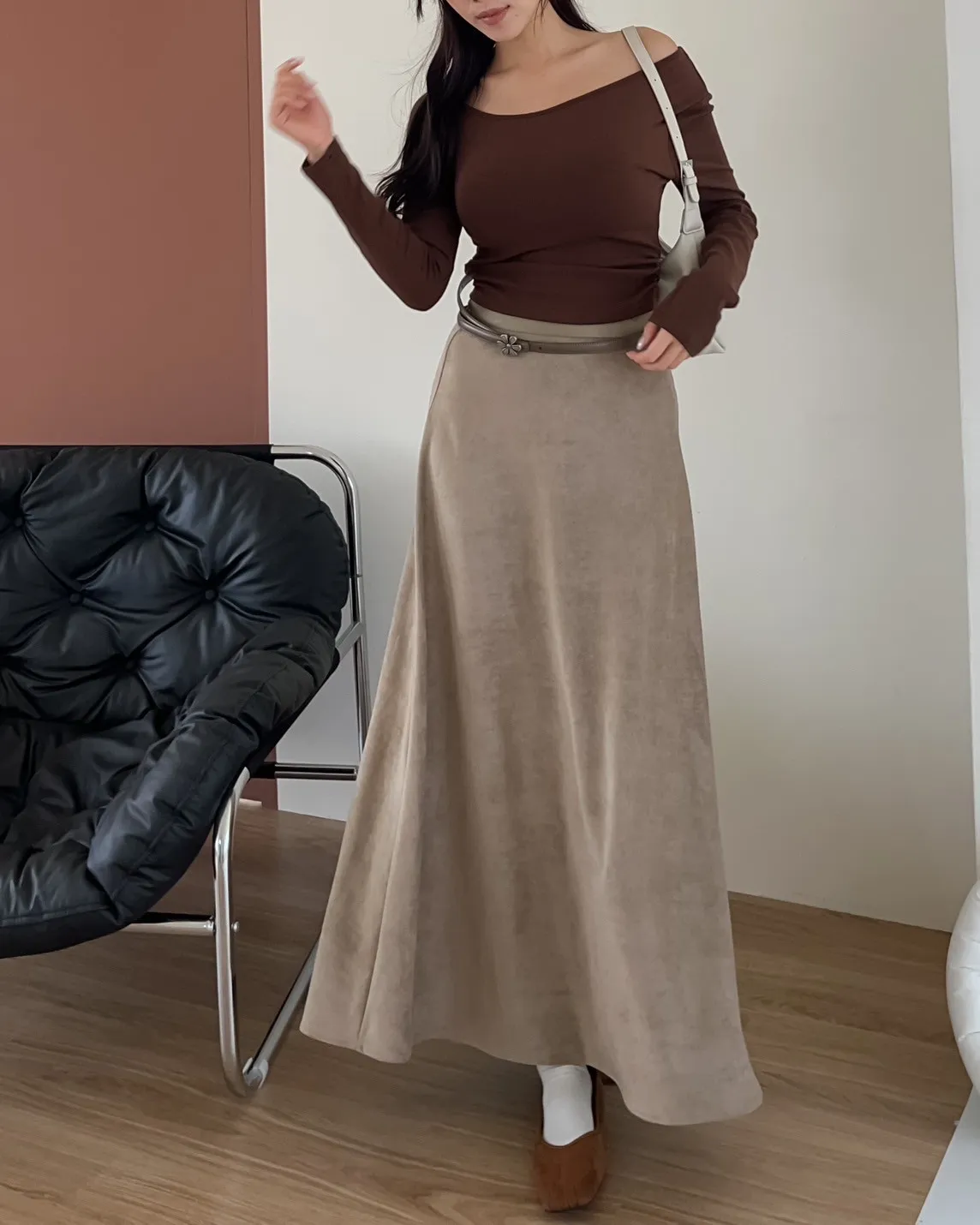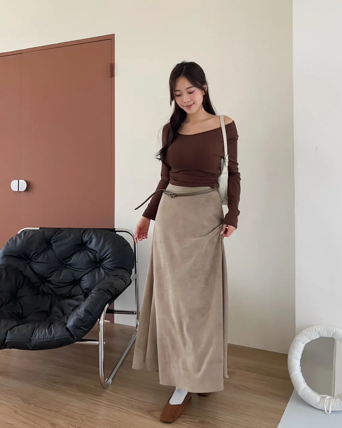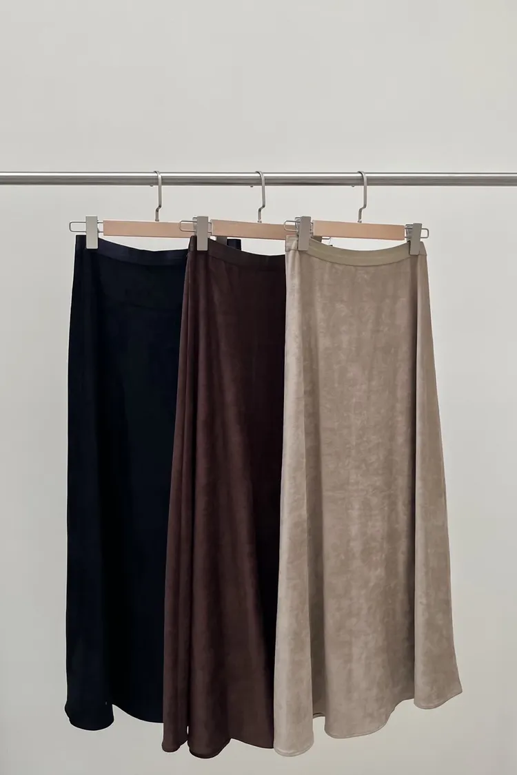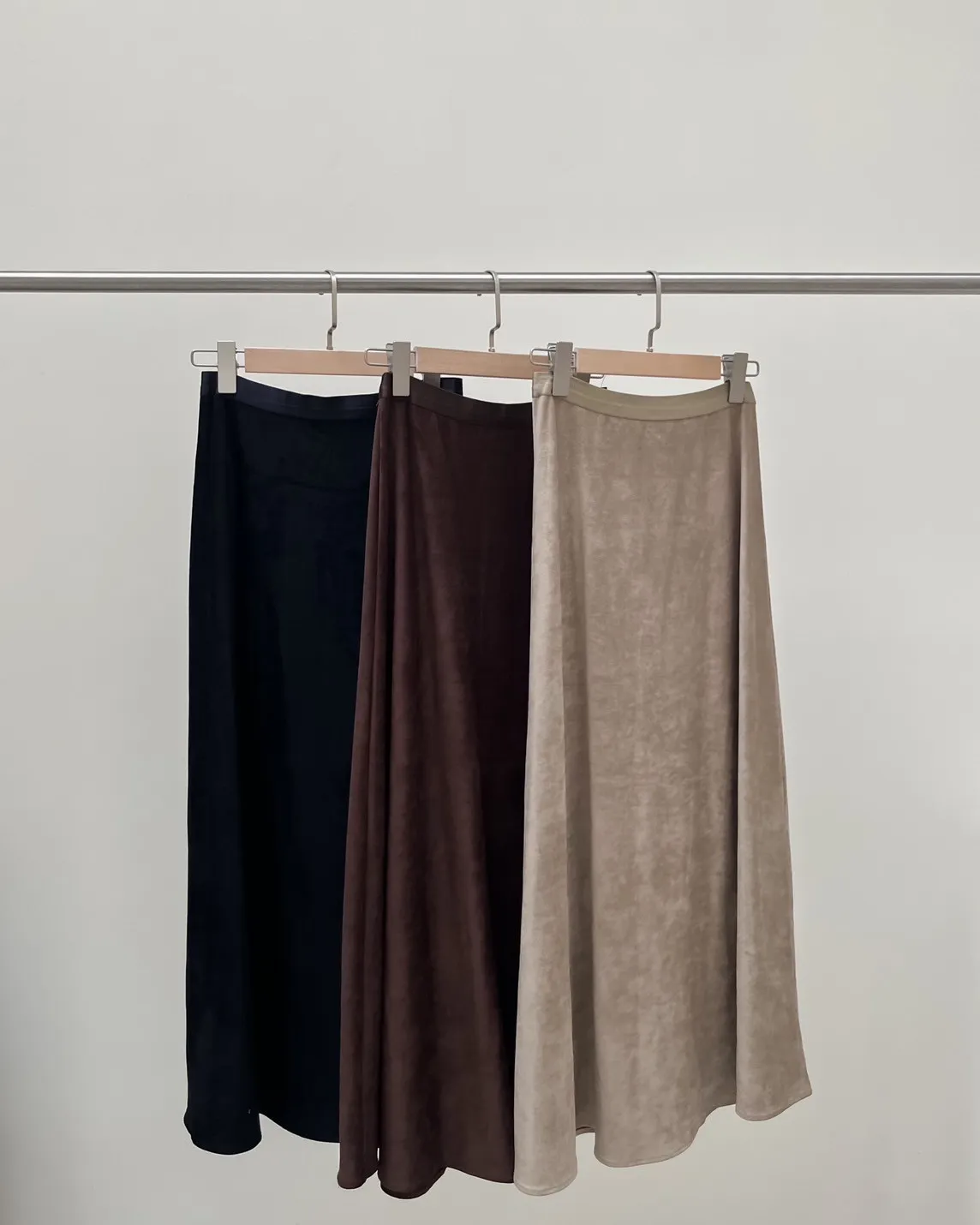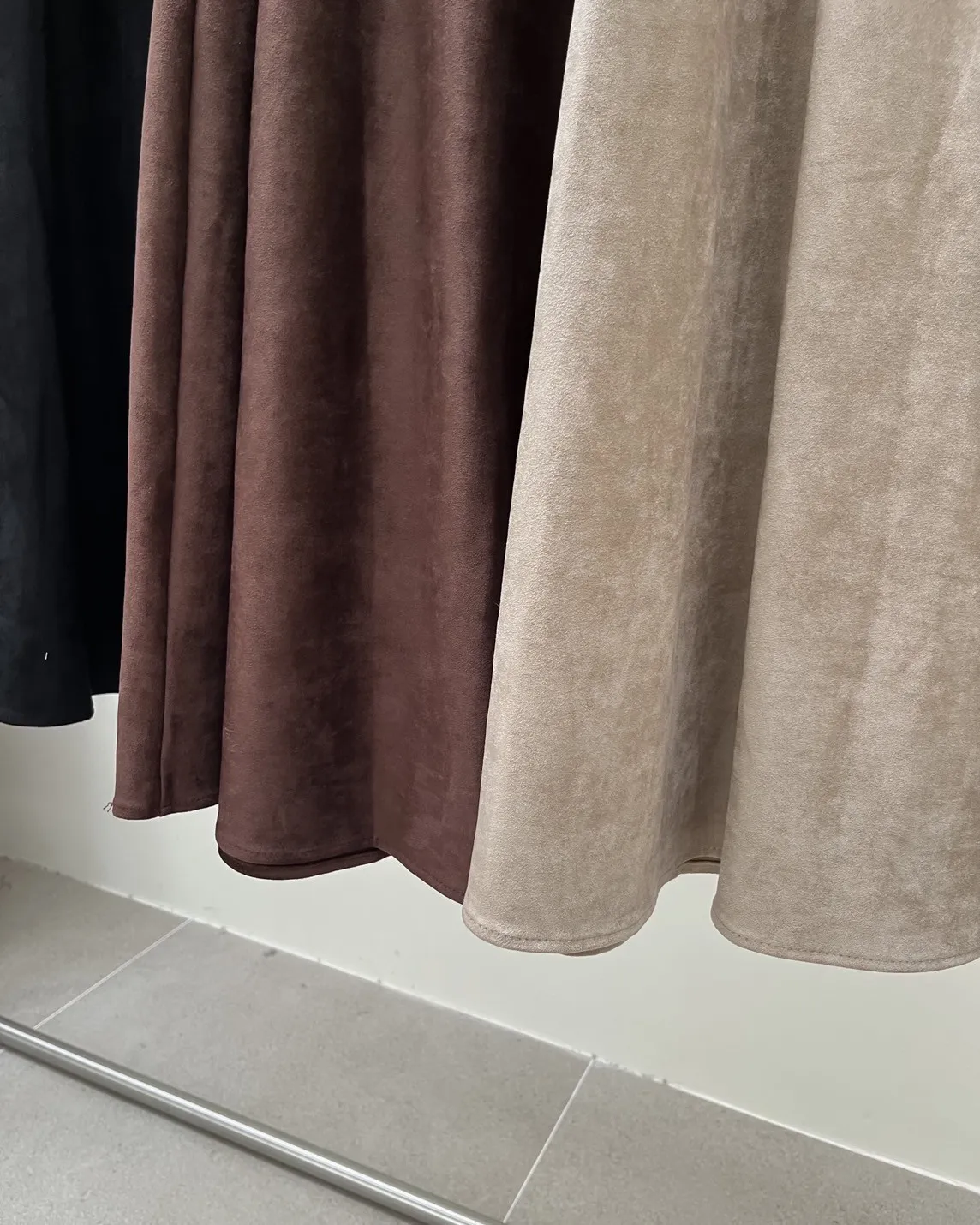 U0085秋日氣息麂皮A字長裙(奶茶/咖啡/黑)
